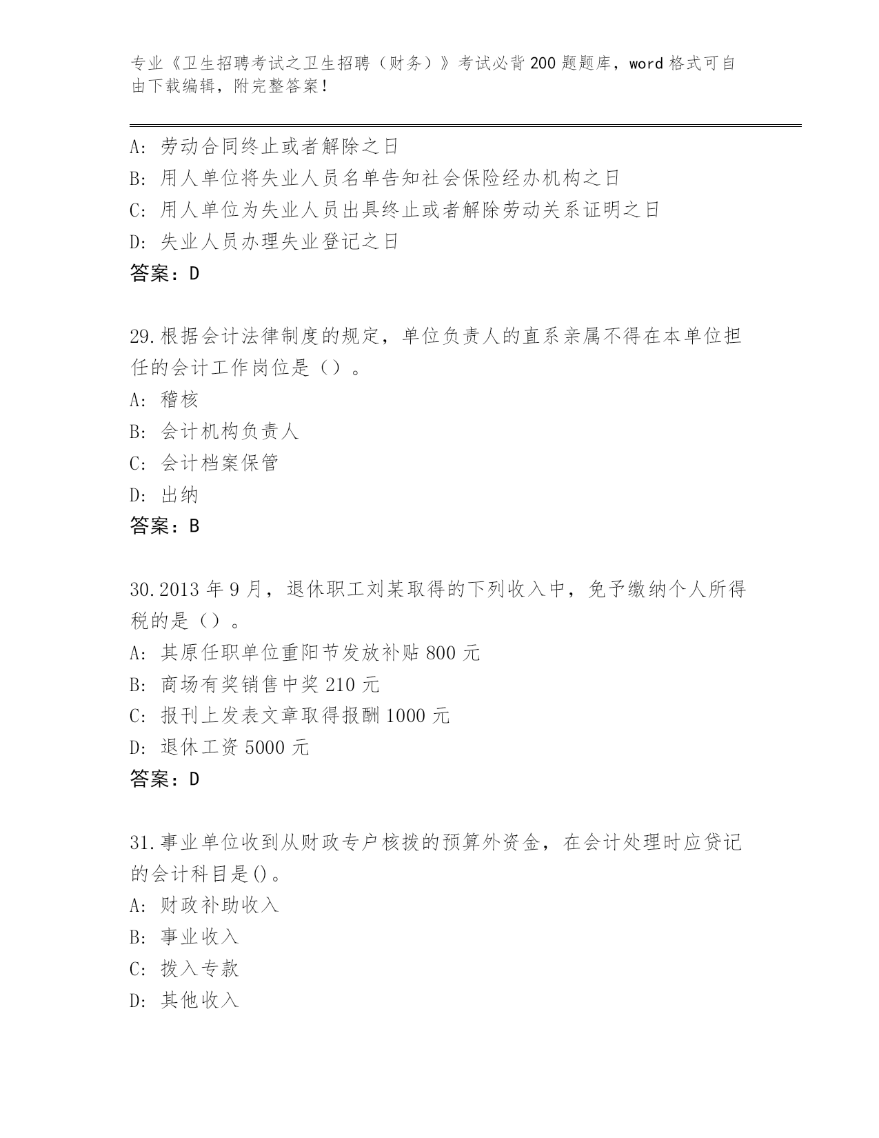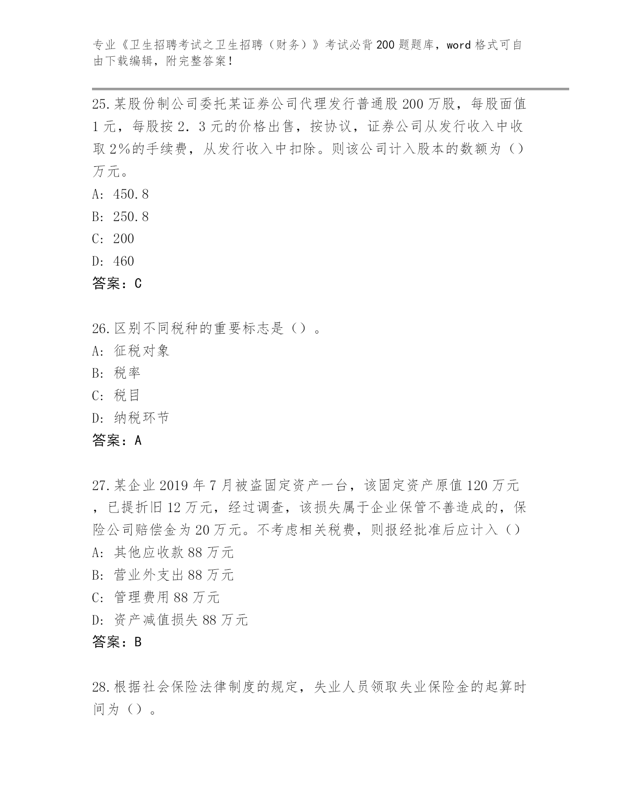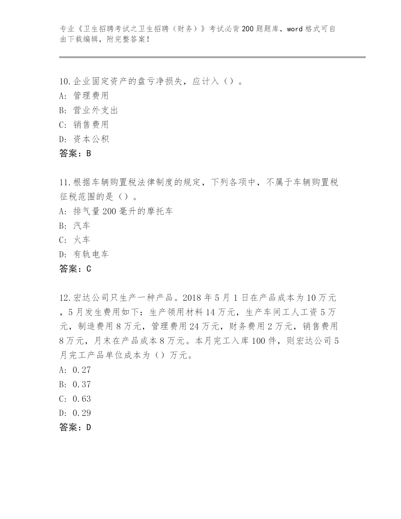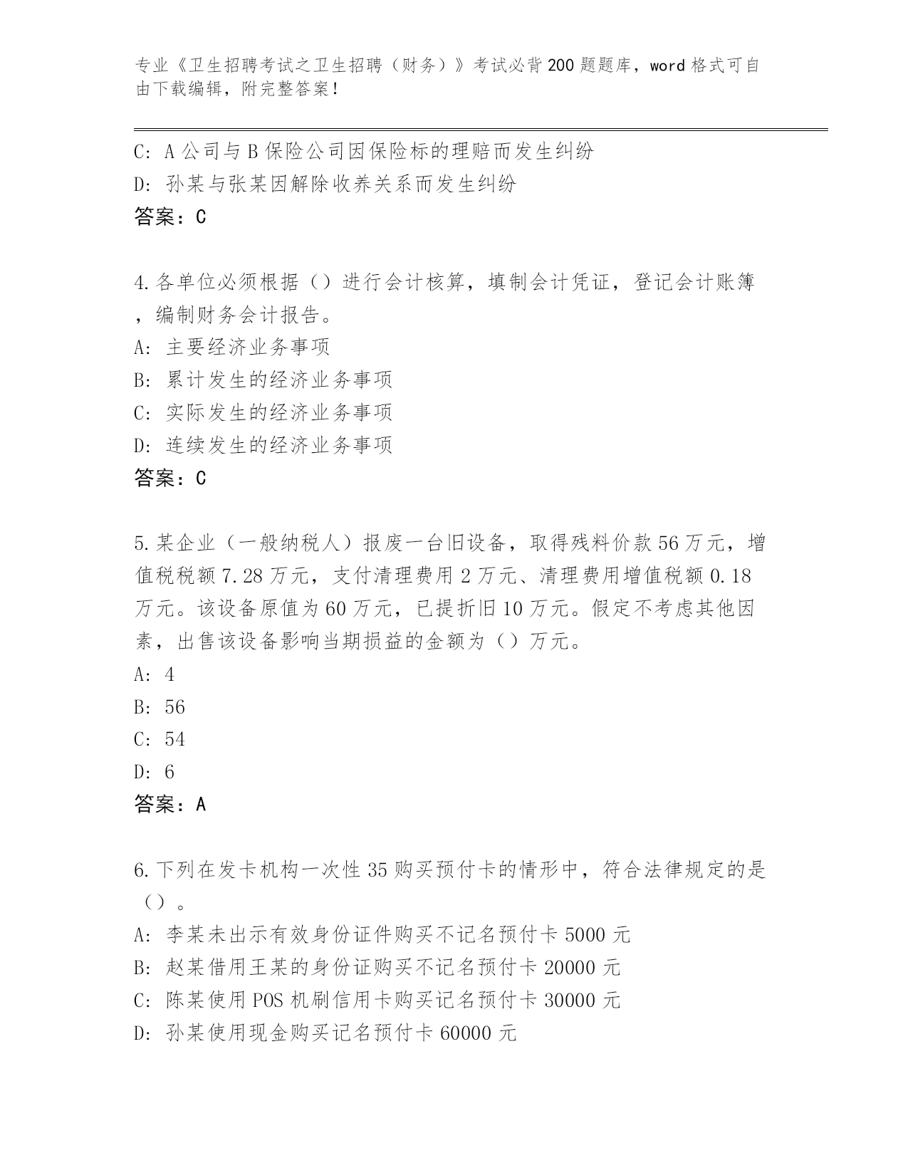 河南省源汇区2024《卫生招聘考试之卫生招聘(财务)》考试必背200题通关秘籍题库含答案(精练)