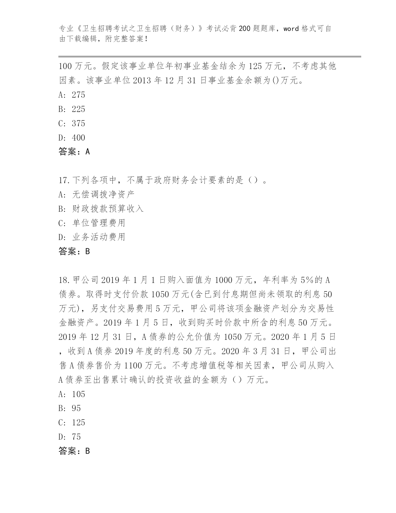 浙江省上城区整理《卫生招聘考试之卫生招聘(财务)》考试必背200题通关秘籍题库附答案(巩固)