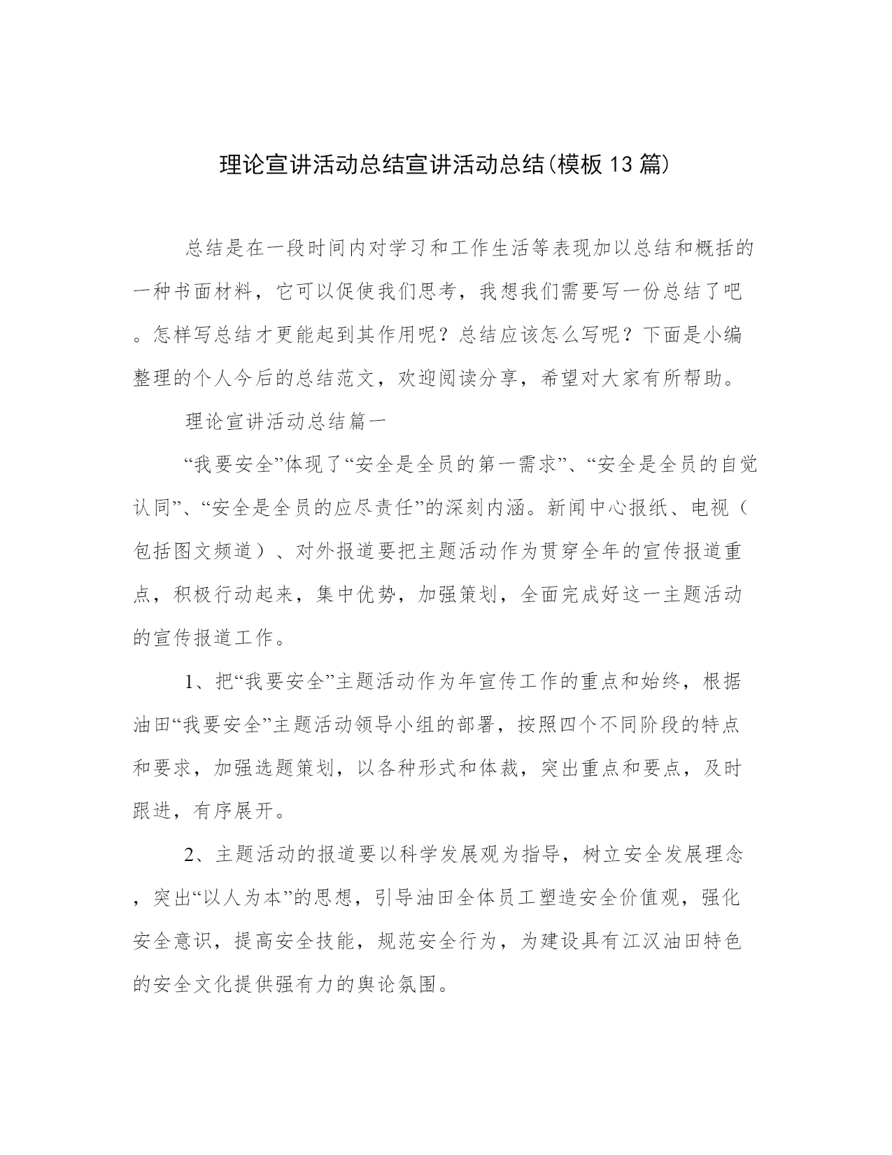 理论宣讲活动总结宣讲活动总结(模板13篇).docx