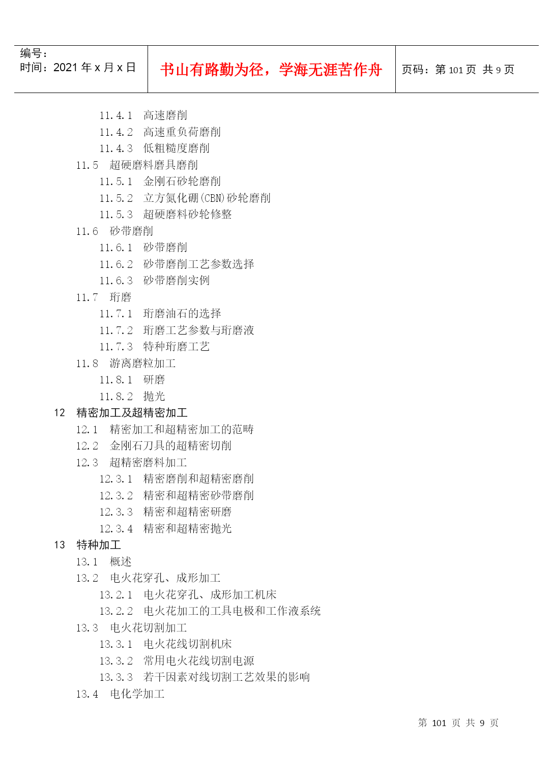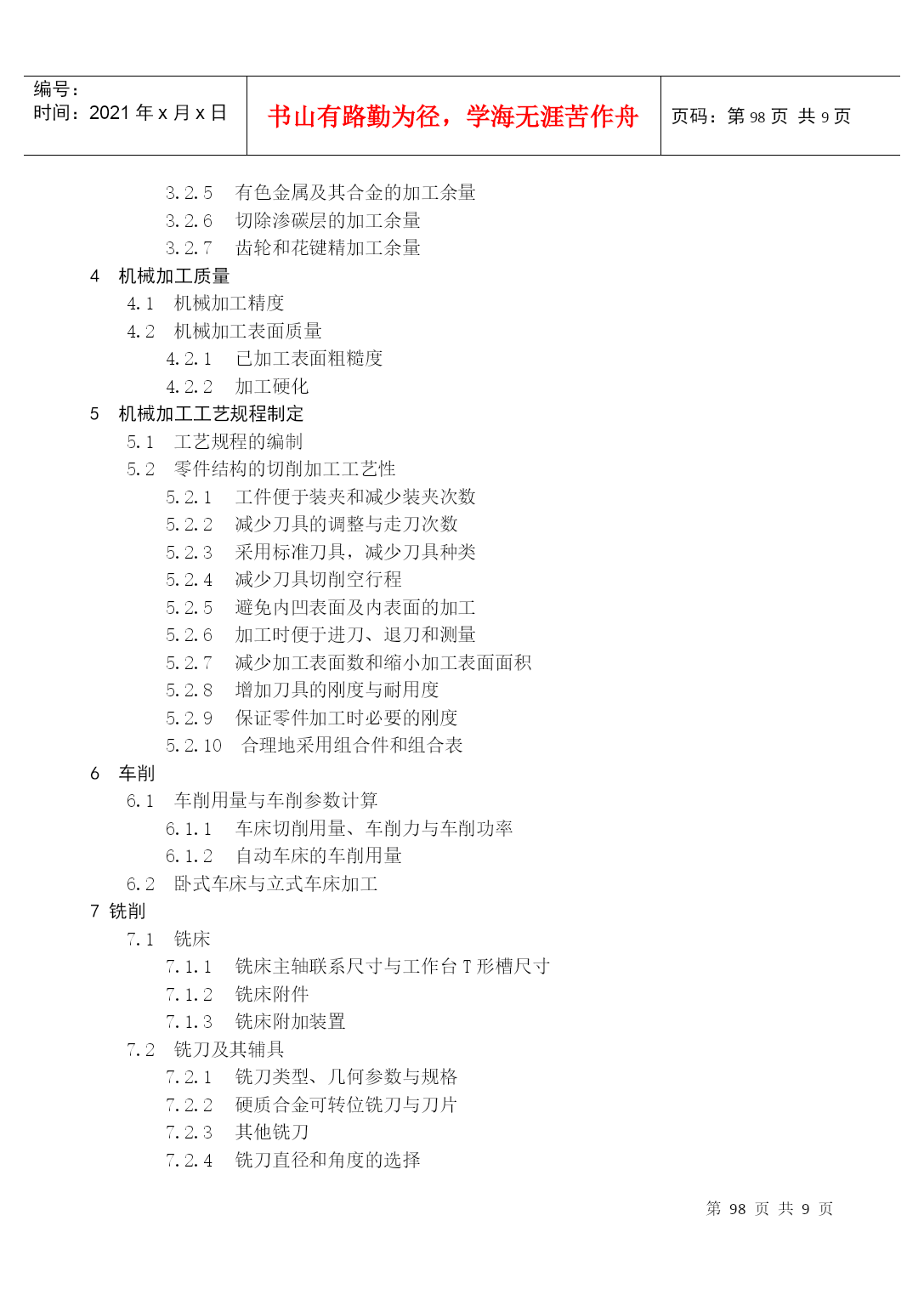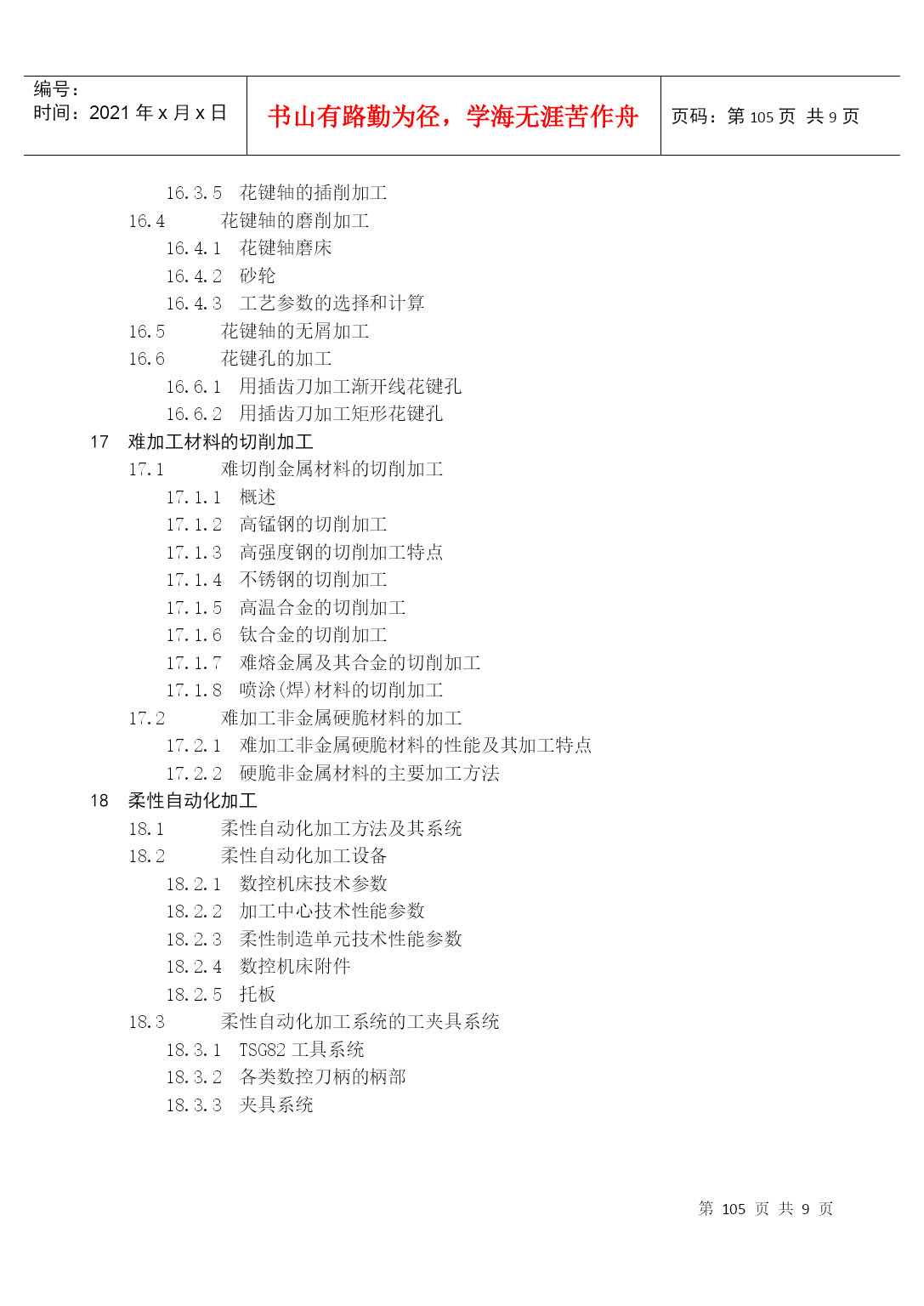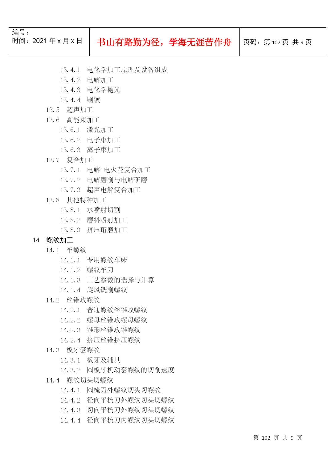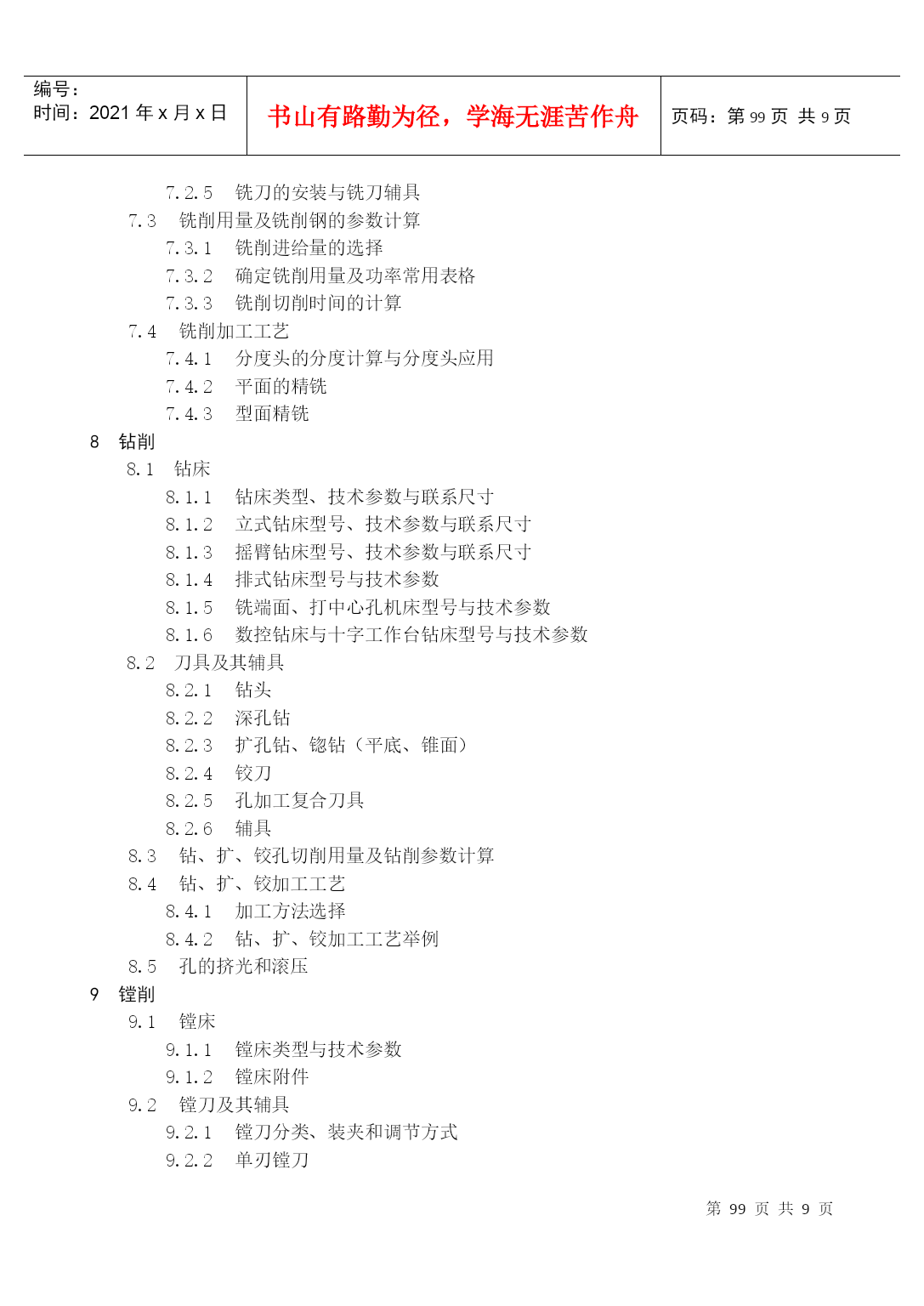 编号:时间:2021年x月x日书山有路勤为径,学海无涯苦作舟页码:第PAGE105页共NUMPAGES9页第PAGE\*MERGEFORMAT105页共NUMPAGES\*MERGEFORMAT9页附录《机械加工工艺手册(软件版)》软件目录1金属切削原理1.1刀具材料各种刀具材料的物理机械性能碳素工具钢与合金工具钢高速钢硬质合金其他刀具材料1.2切削液1.2.1切削液作用、分类、配方和选用1.2.2切削液加注方法2材料及热处理热处理概述热处理对钢铁材料切削加工性能的影响金属表面处理化学镀化学处理阳极氧化处理喷镀油漆涂装3毛坯及余量3.1毛坯种类和毛坯余量轧制件铸铁锻件冲压件焊接件3.2工序间加工余量外圆柱表面加工余量及偏差内孔加工余量及偏差轴端面加工余量及偏差平面加工余量及偏差有色金属及其合金的加工余量切除渗碳层的加工余量齿轮和花键精加工余量4机械加工质量4.1机械加工精度4.2机械加工表面质量已加工表面粗糙度加工硬化5机械加工工艺规程制定5.1工艺规程的编制5.2零件结构的切削加工工艺性工件便于装夹和减少装夹次数减少刀具的调整与走刀次数采用标准刀具,减少刀具种类减少刀具切削空行程避免内凹表面及内表面的加工加工时便于进刀、退刀和测量减少加工表面数和缩小加工表面面积增加刀具的刚度与耐用度保证零件加工时必要的刚度5.2.10合理地采用组合件和组合表6车削6.1车削用量与车削参数计算车床切削用量、车削力与车削功率自动车床的车削用量6.2卧式车床与立式车床加工7铣削7.1铣床铣床主轴联系尺寸与工作台T形槽尺寸铣床附件铣床附加装置7.2铣刀及其辅具铣刀类型、几何参数与规格硬质合金可转位铣刀与刀片其他铣刀铣刀直径和角度的选择铣刀的安装与铣刀辅具铣削用量及铣削钢的参数计算铣削进给量的选择确定铣削用量及功率常用表格铣削切削时间的计算铣削加工工艺分度头的分度计算与分度头应用平面的精铣型面精铣8钻削8.1钻床钻床类型、技术参数与联系尺寸立式钻床型号、技术参数与联系尺寸摇臂钻床型号、技术参数与联系尺寸排式钻床型号与技术参数铣端面、打中心孔机床型号与技术参数数控钻床与十字工作台钻床型号与技术参数8.2刀具及其辅具钻头深孔钻扩孔钻、锪钻(平底、锥面)铰刀孔加工复合刀具辅具钻、扩、铰孔切削用量及钻削参数计算钻、扩、铰加工工艺加工方法选择钻、扩、铰加工工艺举例孔的挤光和滚压9镗削镗床镗床类型与技术参数镗床附件镗刀及其辅具镗刀分类、装夹和调节方式单刃镗刀双刃镗刀刀杆与镗杆系列刀具镗床的切削用量卧式镗床的镗削用量与加工精度金刚镗床的精密镗削用量坐标镗床的切削用量镗削加工工艺金刚镗床加工坐标镗床加工10拉削10.1拉刀常用拉刀设计拉刀技术条件圆拉刀设计常用拉刀结构特点挤压推刀10.2拉削工艺拉削切削液及其浇注方法拉刀的刃磨工艺和方法11磨削11.1磨料与磨具各种磨料的主要物理性能磨具大致分类普通磨料及其选择超硬磨料磨具涂覆磨具11.2磨床与磨床夹具11.3普通磨削外圆磨削内圆磨削平面磨削无心磨削砂轮平衡与修整磨削液11.4高效与精密磨削高速磨削高速重负荷磨削低粗糙度磨削11.5超硬磨料磨具磨削金刚石砂轮磨削立方氮化硼(CBN)砂轮磨削超硬磨料砂轮修整11.6砂带磨削砂带磨削砂带磨削工艺参数选择砂带磨削实例11.7珩磨珩磨油石的选择珩磨工艺参数与珩磨液特种珩磨工艺11.8游离磨粒加工研磨抛光12精密加工及超精密加工12.1精密加工和超精密加工的范畴12.2金刚石刀具的超精密切削12.3超精密磨料加工精密磨削和超精密磨削精密和超精密砂带磨削精密和超精密研磨精密和超精密抛光13特种加工13.1概述13.2电火花穿孔、成形加工电火花穿孔、成形加工机床电火花加工的工具电极和工作液系统13.3电火花切割加工电火花线切割机床常用电火花线切割电源若干因素对线切割工艺效果的影响13.4电化学加工电化学加工原理及设备组成电解加工电化学抛光刷镀13.5超声加工13.6高能束加工激光加工电子束加工离子束加工13.7复合加工电解-电火花复合加工电解磨削与电解研磨超声电解复合加工13.8其他特种加工水喷射切割磨料喷射加工挤压珩磨加工14螺纹加工14.1车螺纹专用螺纹车床螺纹车刀工艺参数的选择与计算旋风铣削螺纹14.2丝锥攻螺纹普通螺纹丝锥攻螺纹螺母丝锥攻螺
