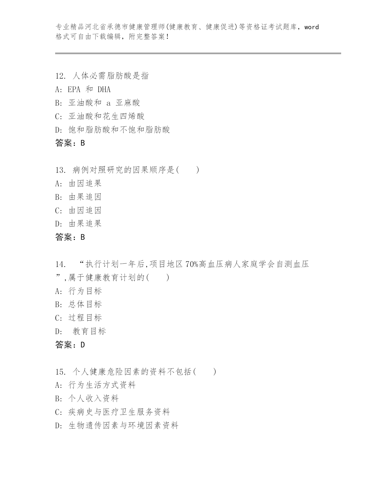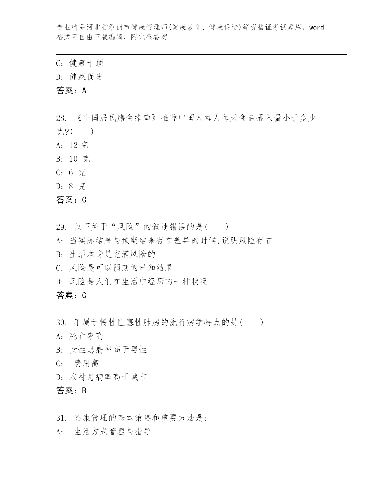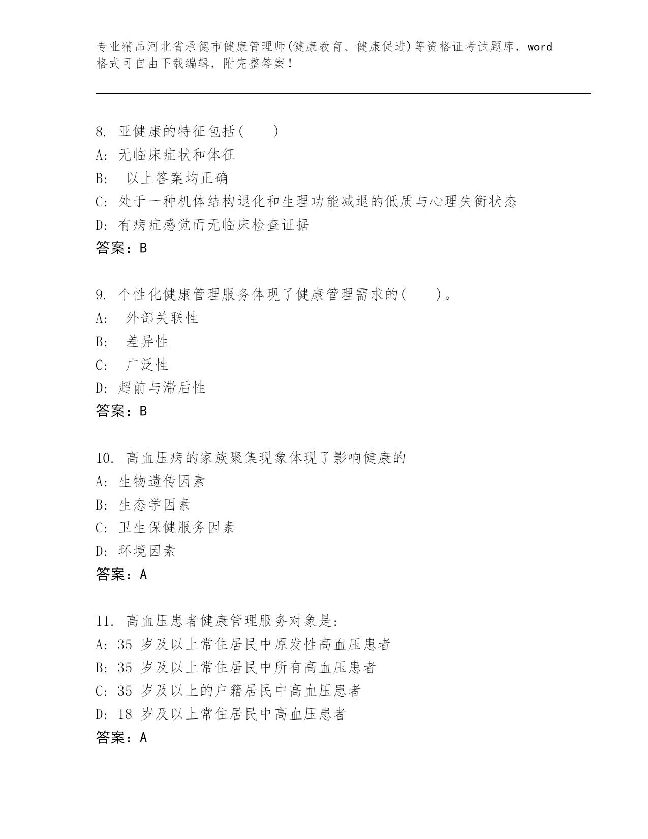 优选河北省承德市健康管理师(健康教育、健康促进)等资格证考试大全及精品答案