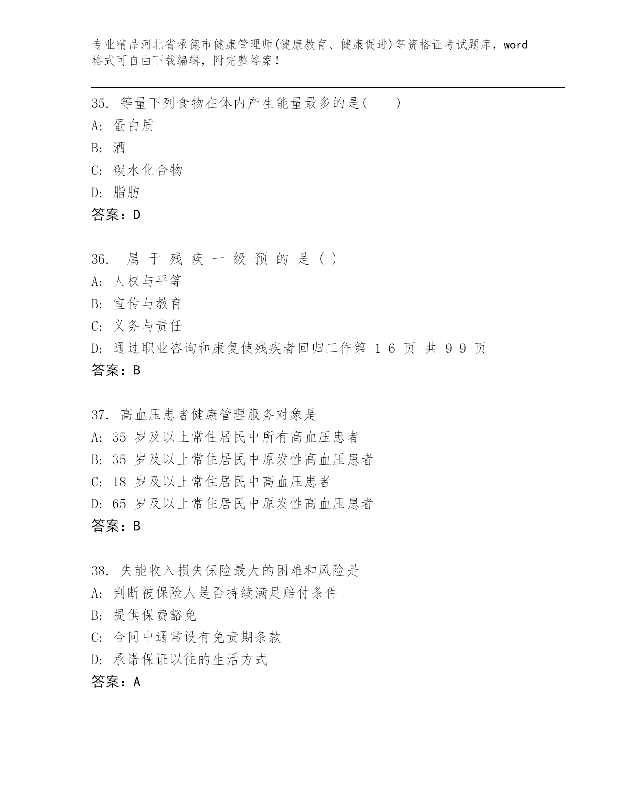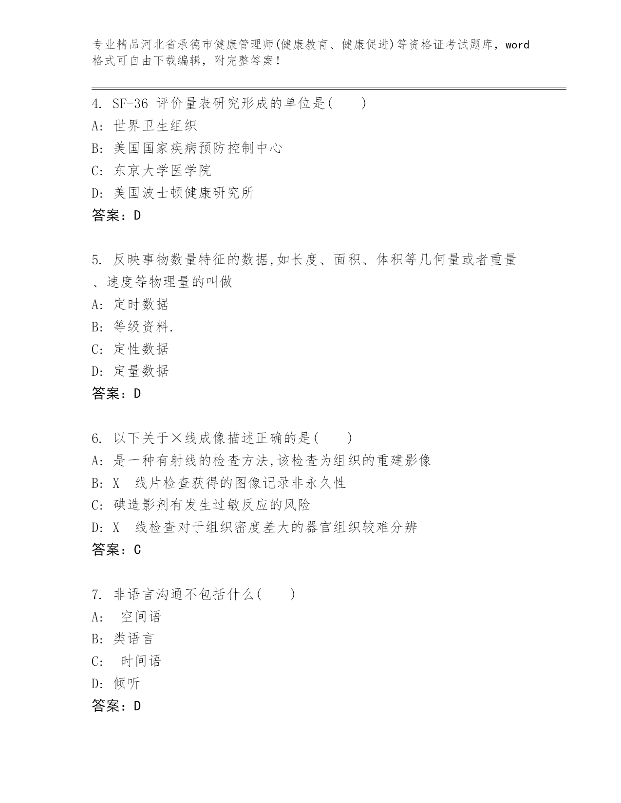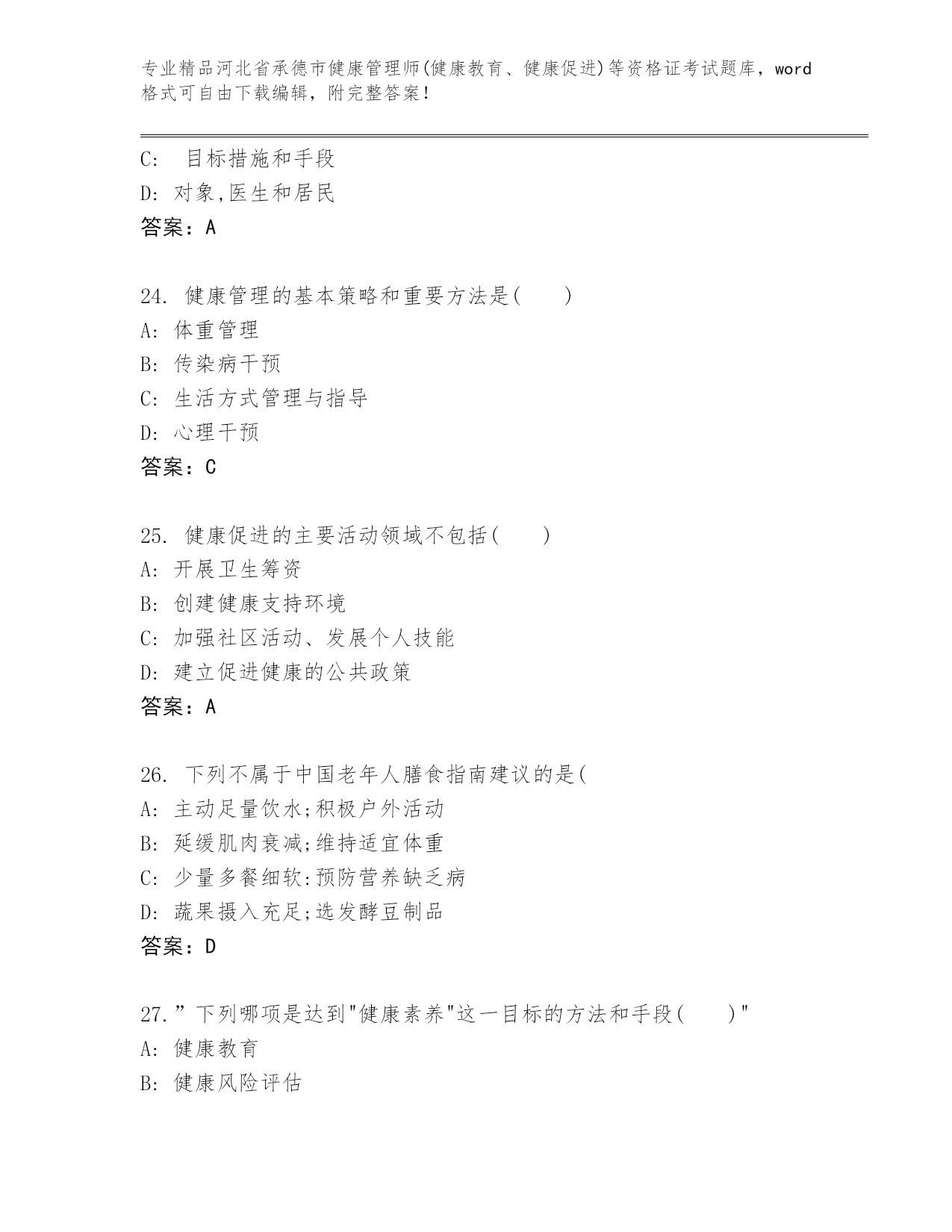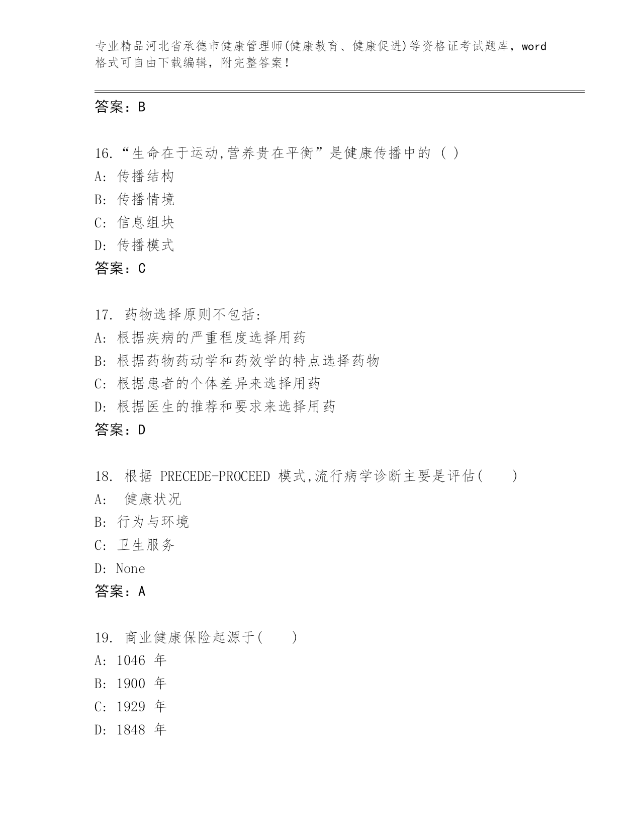 优选河北省承德市健康管理师(健康教育、健康促进)等资格证考试大全及精品答案