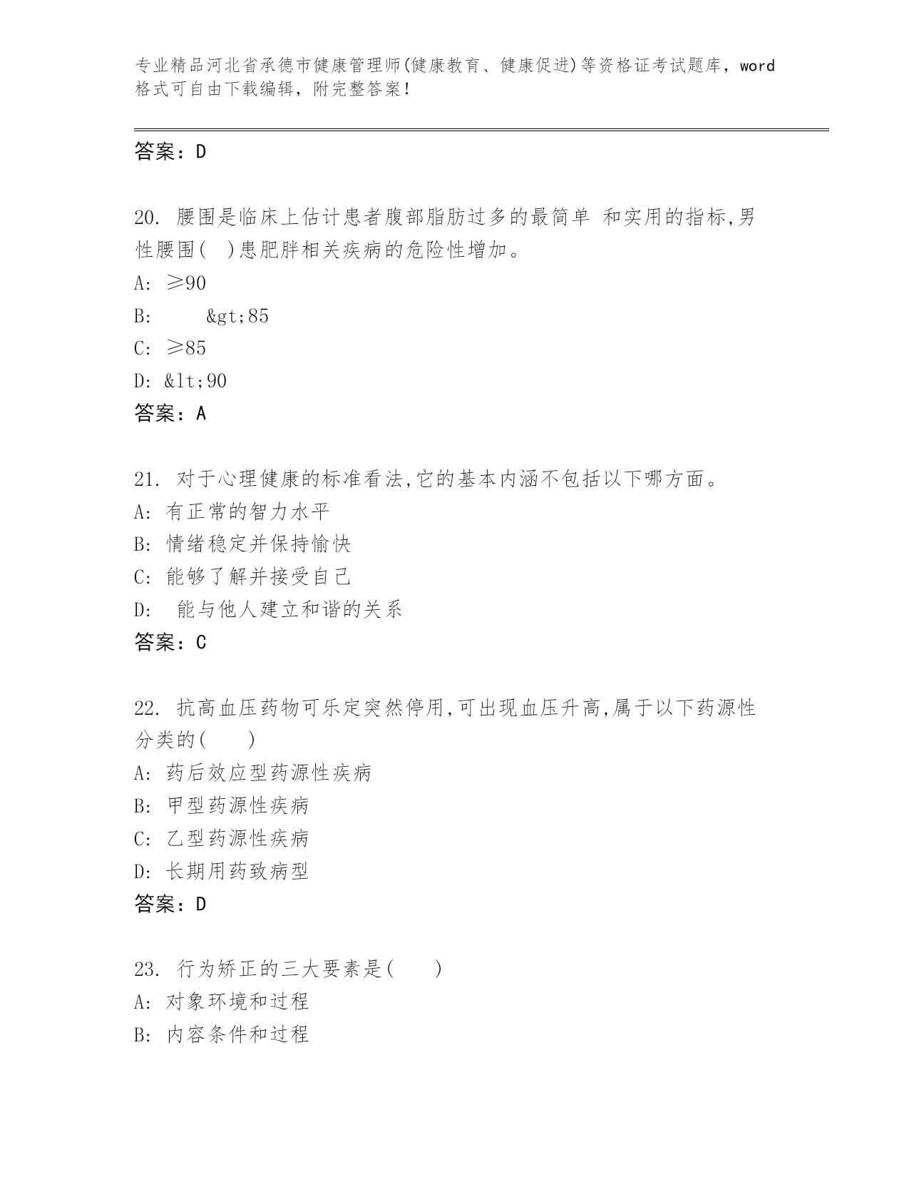 优选河北省承德市健康管理师(健康教育、健康促进)等资格证考试大全及精品答案.docx