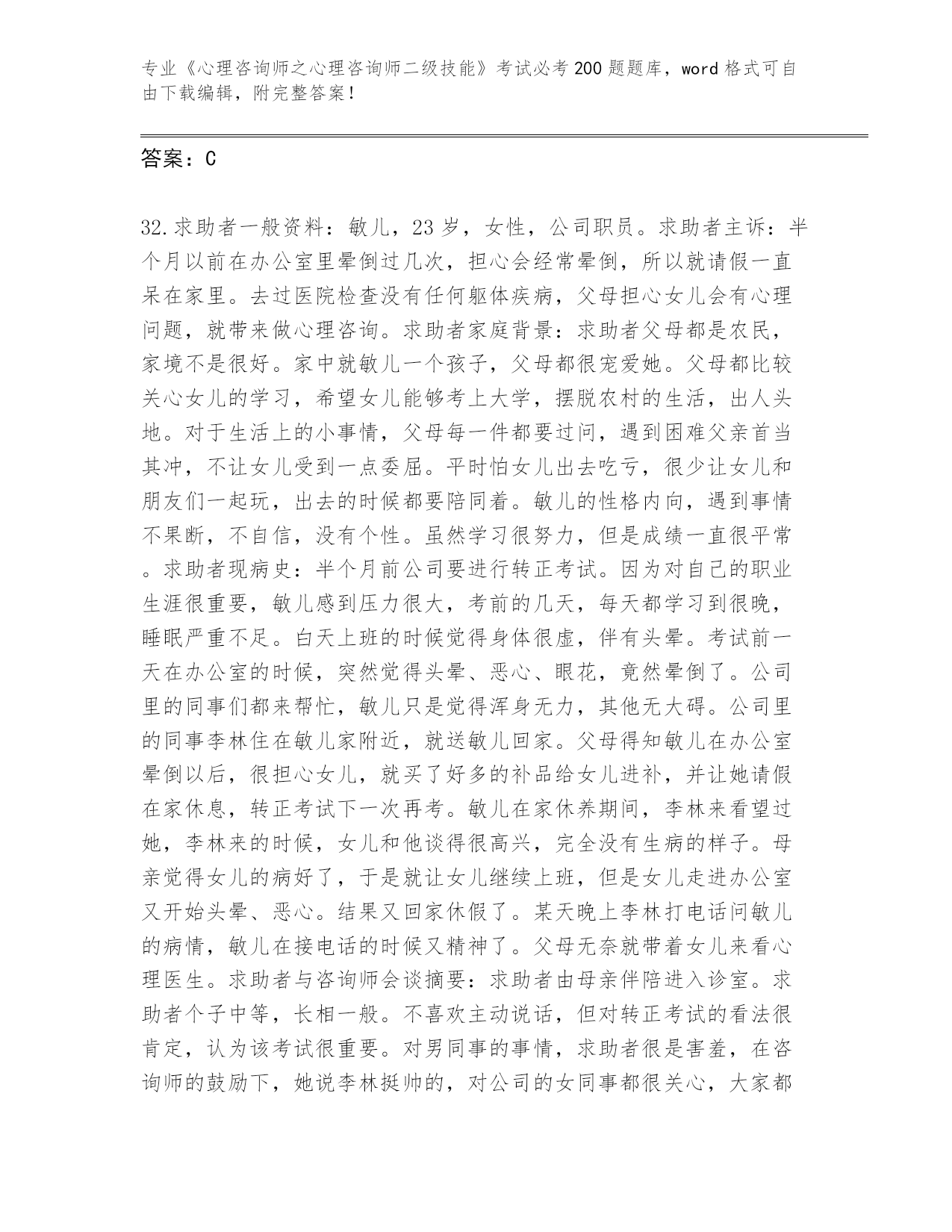 贵州省《心理咨询师之心理咨询师二级技能》考试必考200题完整答案