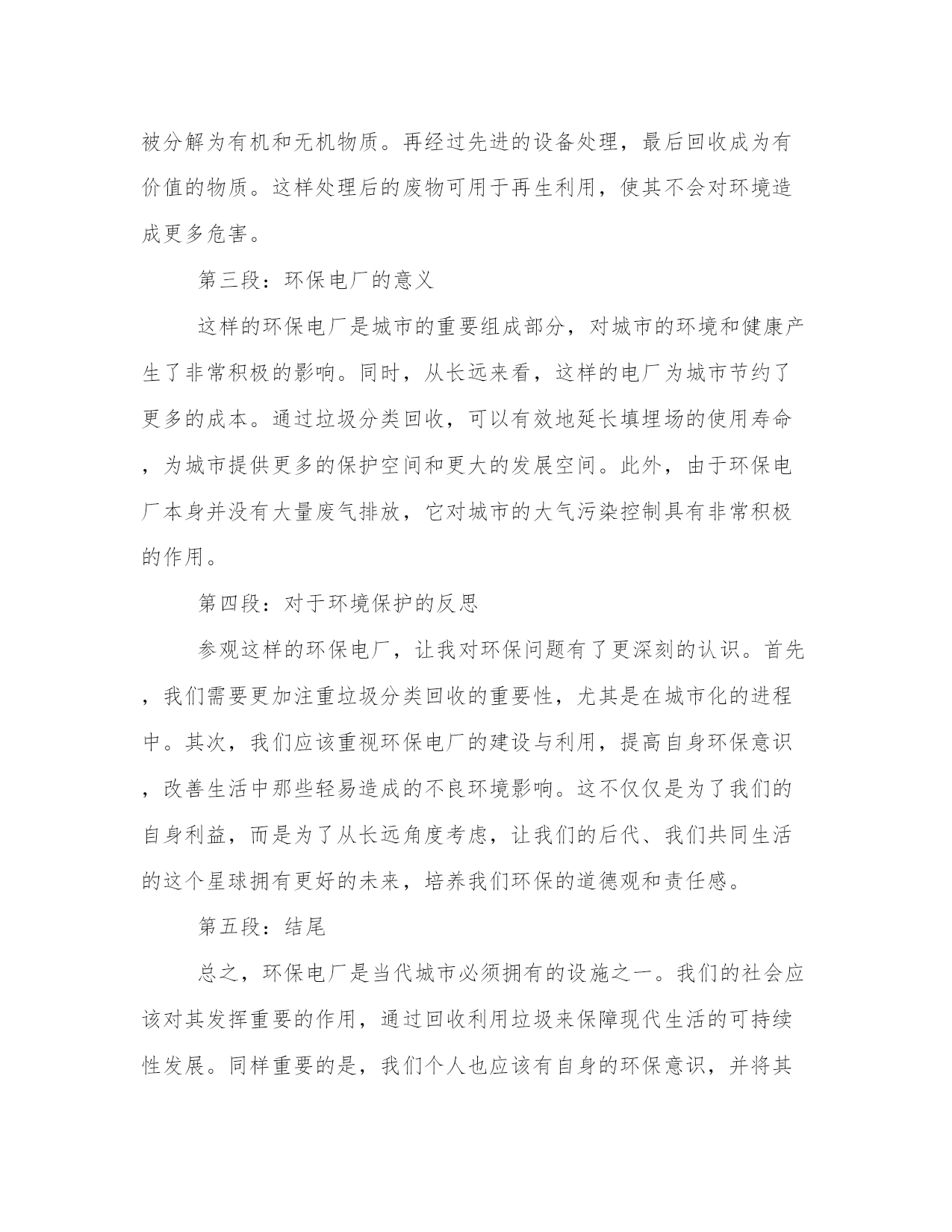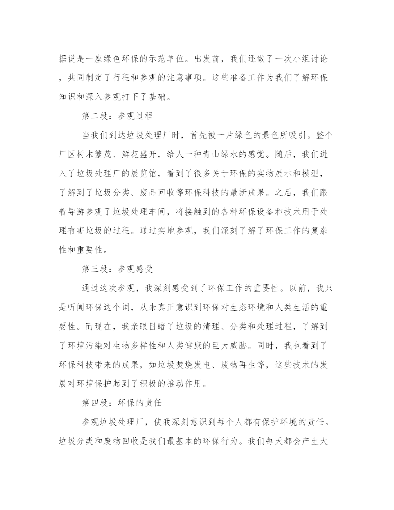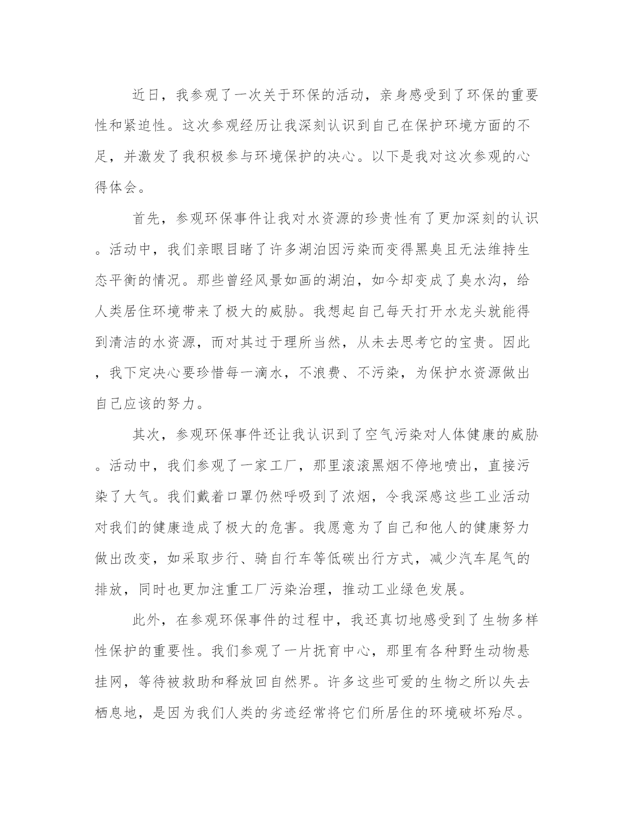 优质环保参观心得(汇总15篇)随着社会进步和发展,我们不断面临各种问题和挑战。语言的简洁和准确是写好总结的关键,我们应该避免冗长和啰嗦的表达,用简练的语言来传达我们的思想。以下是一些优秀的案例,供大家学习和借鉴。环保参观心得篇一今天,我和我的同学们参观了一家环保电厂。在参观过程中,我们深入了解了当前环境污染的状况,同时也了解了环保电厂在保护环境、减少污染等方面所做出的积极努力。下面,我将分享我的心得体会。第二段:环境污染严重当我们走近这家环保电厂时,首先感受到的是空气的清新和环境的整洁。但是,通过参观,我们了解到了现实还是非常严峻的。城市中的污染源非常多,环境污染问题非常严重。空气、水、土地等环境都被严重污染,导致了人们的生活质量得不到保障,甚至会对人的身体健康造成威胁。环保电厂作为减轻这种污染负担的重要行业,对我们的生活非常重要。第三段:环保电厂的解决方案通过参观,我们发现这家环保电厂设备完善、技术先进,尤其是在处理废气、废水等方面,采用了先进的环保技术和设备,从源头上减少了污染物的排放。同时,环保电厂还构建了一套完善的资源回收利用体系,再利用废料降低了能耗,降低了成本。这些做法打破了传统电厂的污染惯性,实现了“零排放”的目标。从这里,我们可以看到,环保电厂始终坚持以环保为核心,不断研发新技术、新设备,为减轻环境污染负担做出了积极的贡献。第四段:环保意识的重要性在参观环保电厂的过程中,我们也深刻认识到了环保意识的重要性。不仅是我们自己的行为应该符合环保要求,更需要大家的共同努力。每一个人都应该养成环保的好习惯,呼吁并号召周围的人共同参与环保行动。我们应该从小事做起,减少浪费,少用塑料袋等一次性物品,这些看似微不足道的做法,却能够积少成多,让环保循环产生良性的效果。第五段:总结通过参观环保电厂的过程,我深刻认识到环保意识对于我们每一个人的重要性,每一个人都应该有环保行动,积极参与绿色环保活动。除了我们个人的环保行为外,环保工业的探索分析也非常重要,只有加强技术研发,推进绿色化发展,才能最终实现我们的社会可持续发展目标。我相信,通过我们每一个人的努力,我们一定能够创造一个美好的环境,享有健康美好的生活,为人类繁荣进步、可持续发展贡献力量。环保参观心得篇二近日,我参观了一次关于环保的活动,亲身感受到了环保的重要性和紧迫性。这次参观经历让我深刻认识到自己在保护环境方面的不足,并激发了我积极参与环境保护的决心。以下是我对这次参观的心得体会。首先,参观环保事件让我对水资源的珍贵性有了更加深刻的认识。活动中,我们亲眼目睹了许多湖泊因污染而变得黑臭且无法维持生态平衡的情况。那些曾经风景如画的湖泊,如今却变成了臭水沟,给人类居住环境带来了极大的威胁。我想起自己每天打开水龙头就能得到清洁的水资源,而对其过于理所当然,从未去思考它的宝贵。因此,我下定决心要珍惜每一滴水,不浪费、不污染,为保护水资源做出自己应该的努力。其次,参观环保事件还让我认识到了空气污染对人体健康的威胁。活动中,我们参观了一家工厂,那里滚滚黑烟不停地喷出,直接污染了大气。我们戴着口罩仍然呼吸到了浓烟,令我深感这些工业活动对我们的健康造成了极大的危害。我愿意为了自己和他人的健康努力做出改变,如采取步行、骑自行车等低碳出行方式,减少汽车尾气的排放,同时也更加注重工厂污染治理,推动工业绿色发展。此外,在参观环保事件的过程中,我还真切地感受到了生物多样性保护的重要性。我们参观了一片抚育中心,那里有各种野生动物悬挂网,等待被救助和释放回自然界。许多这些可爱的生物之所以失去栖息地,是因为我们人类的劣迹经常将它们所居住的环境破坏殆尽。我意识到了人类应该成为地球的守护者,尊重和保护各种生物的权益。因此,我决定主动参与到野生动物保护的行列中,通过自己的努力,为生物多样性的保护尽一份力量。最后,参观环保事件还让我灵感涌现,思考到了创新科技在环保方面的应用。活动中,我们了解了一些新兴的环保技术,如风能和太阳能的利用以及垃圾分类的处理等。这些技术的推广应用,为环境保护提供了更多可能性。我被这些创新科技深深吸引,决心将来走上环保科技的道路,为地球的绿色发展贡献自己的一份力量。通过这次参观环保事件的活动,我对环保问题有了更加全面的认识和理解。我深知自己在环保方面的责任和义务,决心在以后的生活中,从点滴小事做起,积极传播环保理念,争做环保行动的倡导者和践行者。保护地球的责任在于每个人,我们要汇聚起自己微小的力量,共同迈向一个更加清洁、绿色、美丽的未来。环保参观心得篇三近年来,环保问题引起了全球的广泛关注。为了增强公众的环保意识和培养大家的环保习惯,各地纷纷开展了环保参观活动。日前,我参加了一次环保参观活动,深刻感受到了环保的重要性,并对环境保护的责任有了更深刻的理解