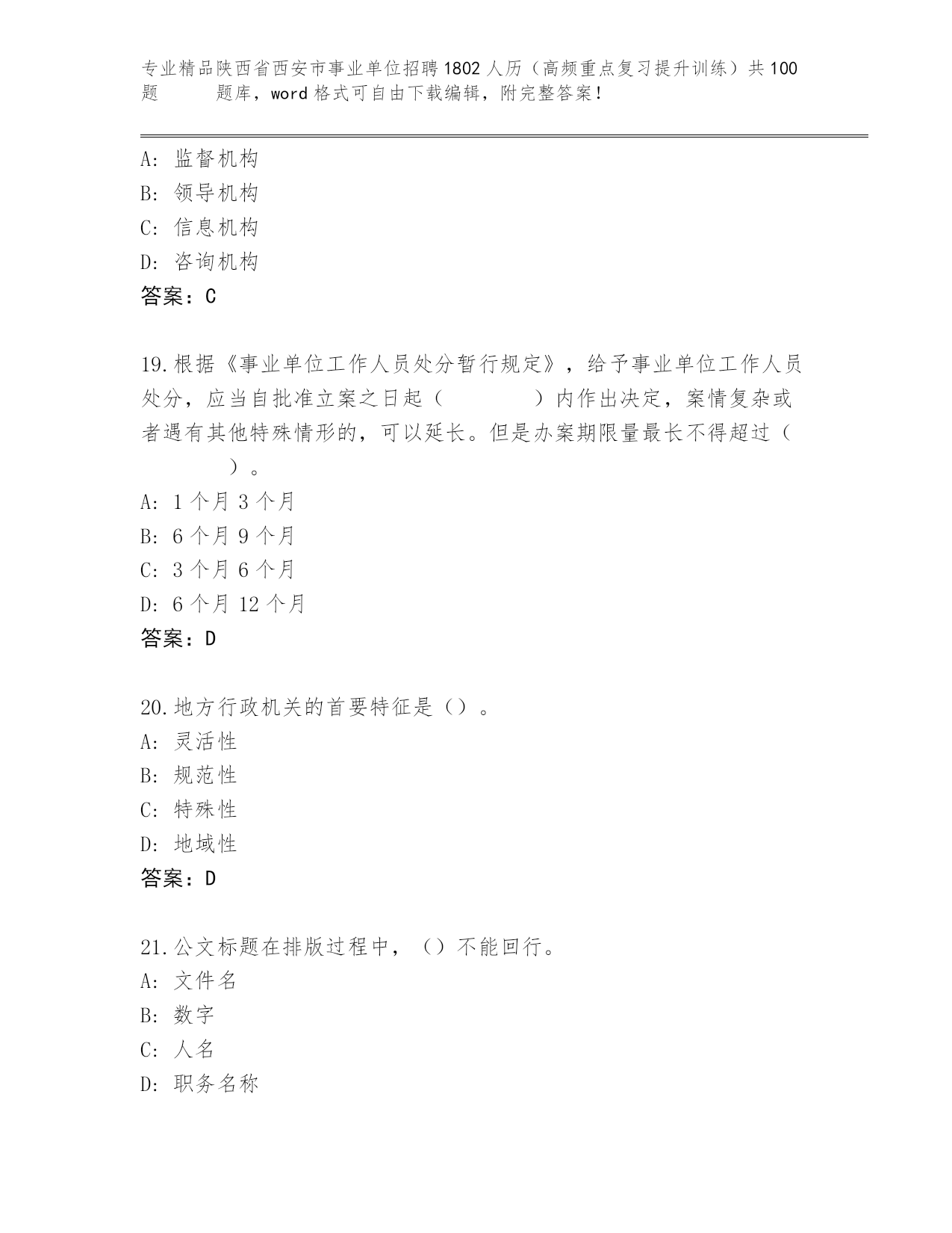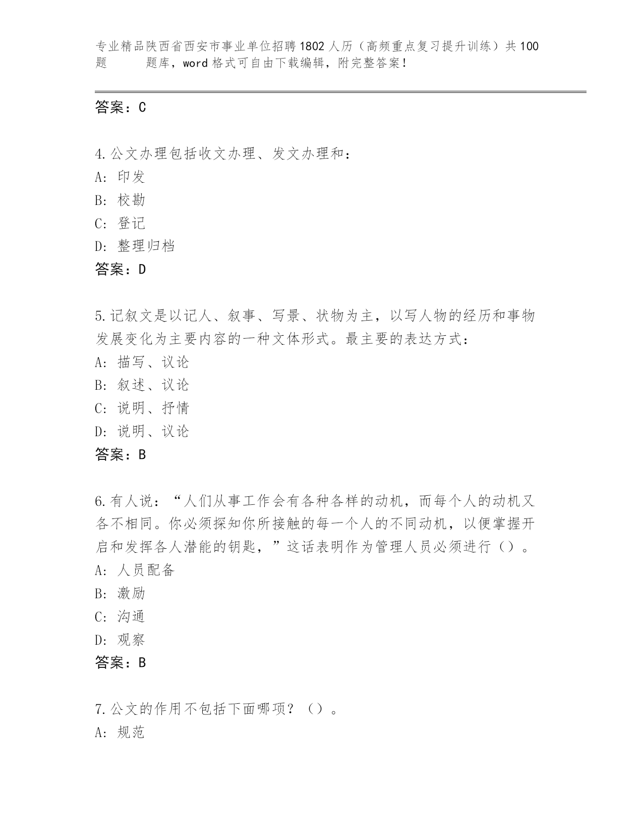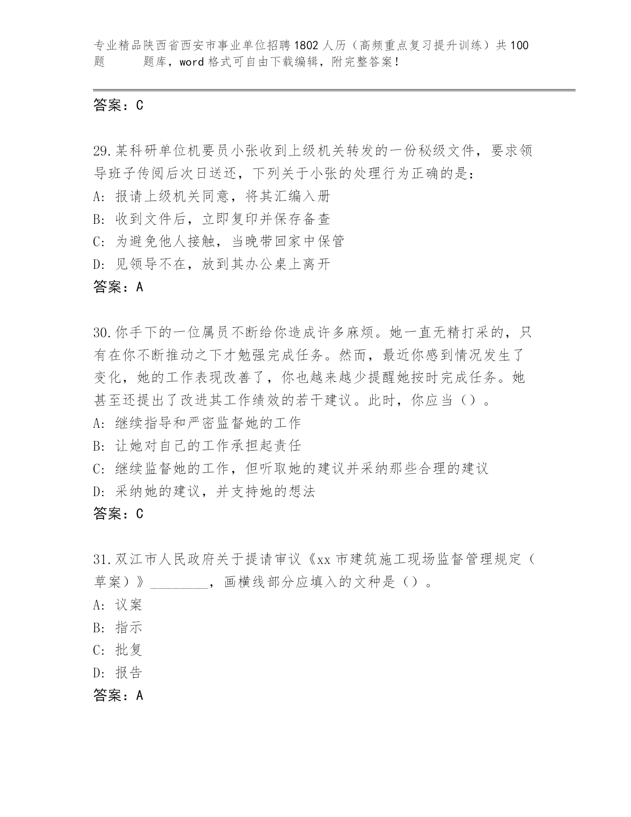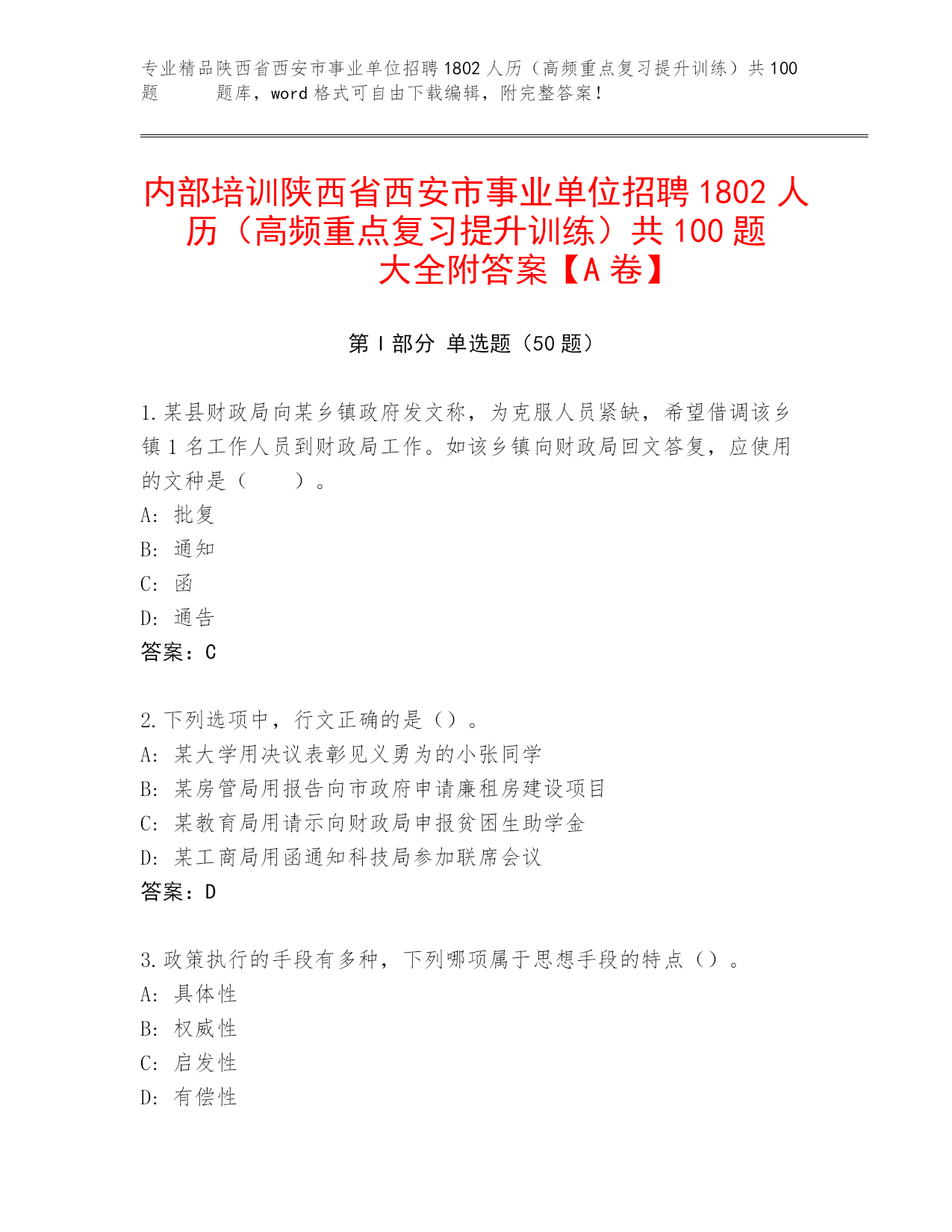 内部培训陕西省西安市事业单位招聘1802人历(高频重点复习提升训练)共100题 内部题库及答案(最新)