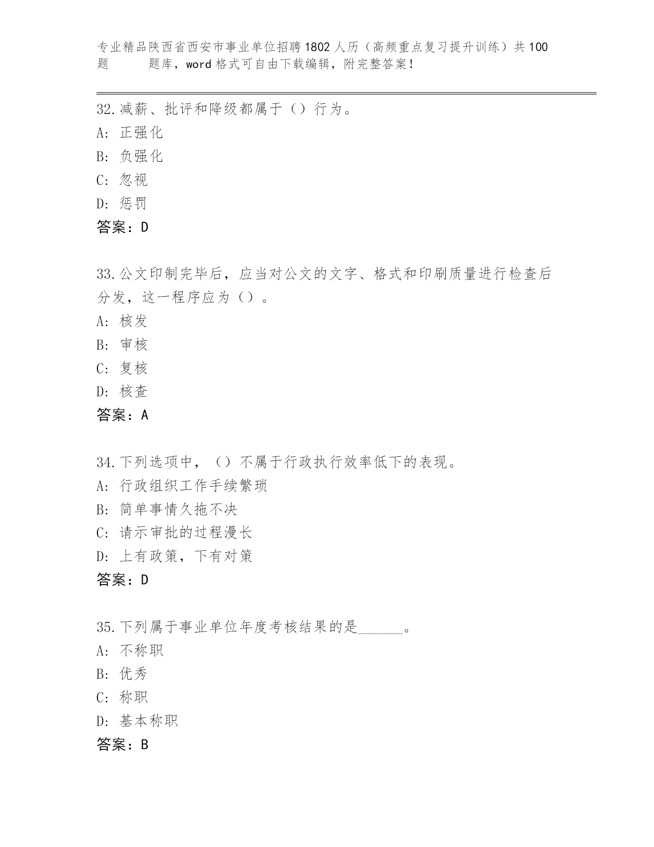 内部培训陕西省西安市事业单位招聘1802人历(高频重点复习提升训练)共100题 【网校专用】