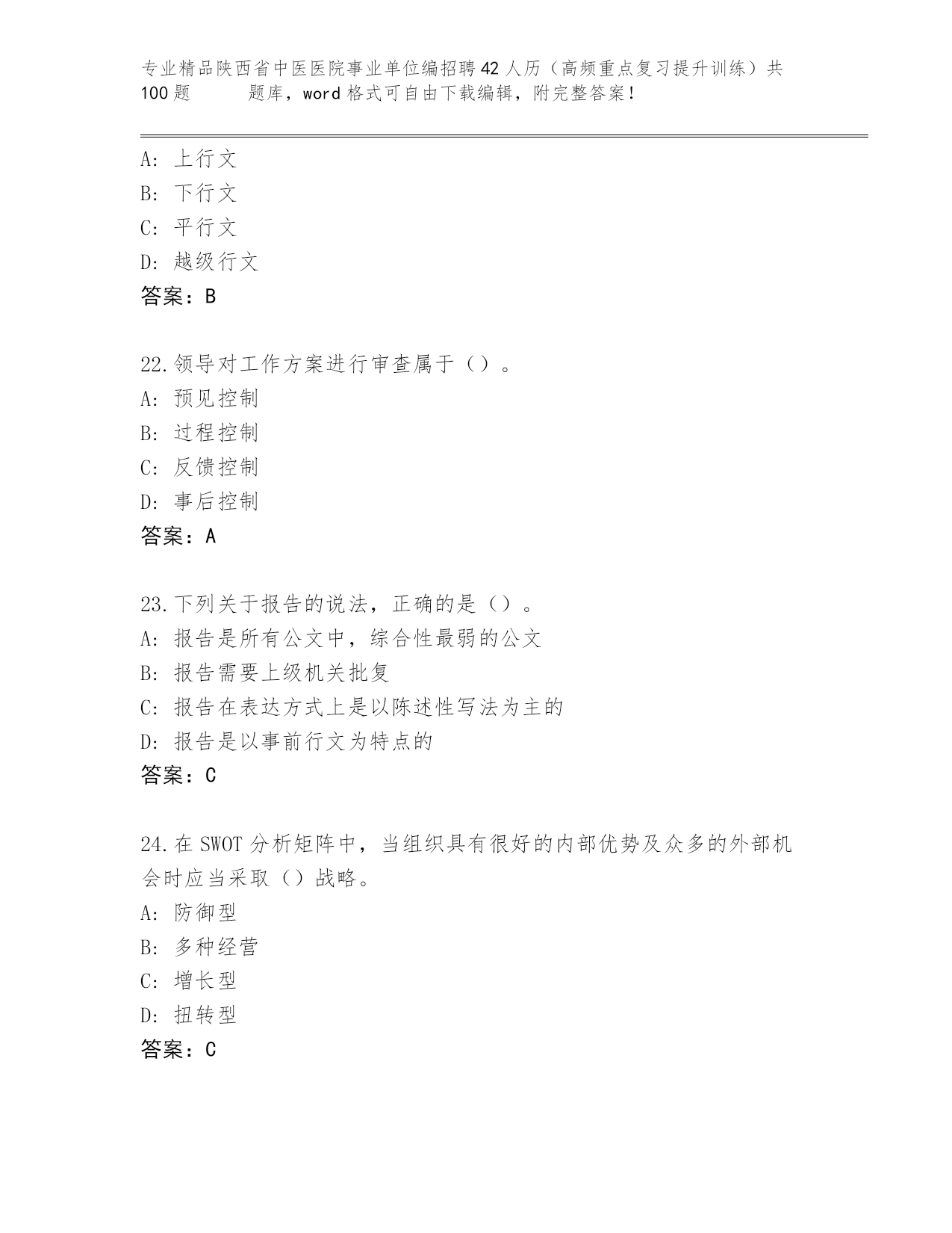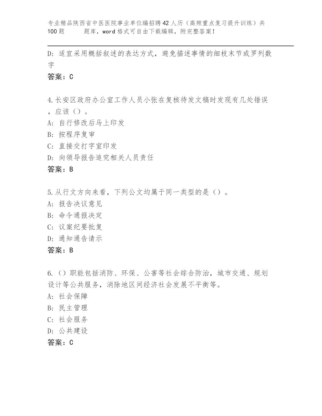 精编陕西省中医医院事业单位编招聘42人历(高频重点复习提升训练)共100题 题库带答案(培优B卷)