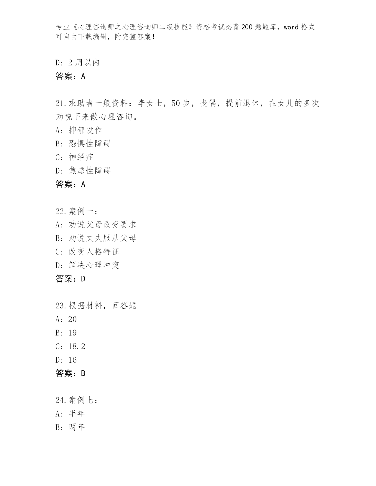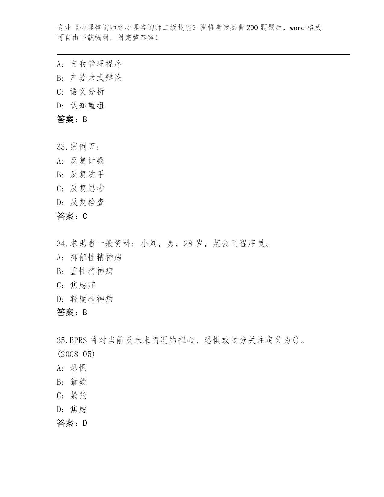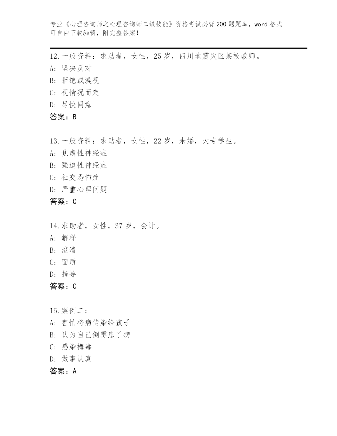 山西省定襄县整理《心理咨询师之心理咨询师二级技能》资格考试必背200题通关秘籍题库附答案【培优B卷】