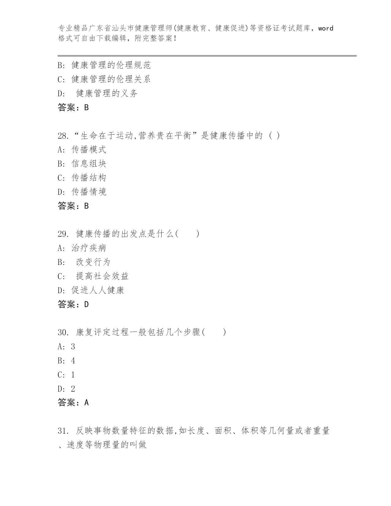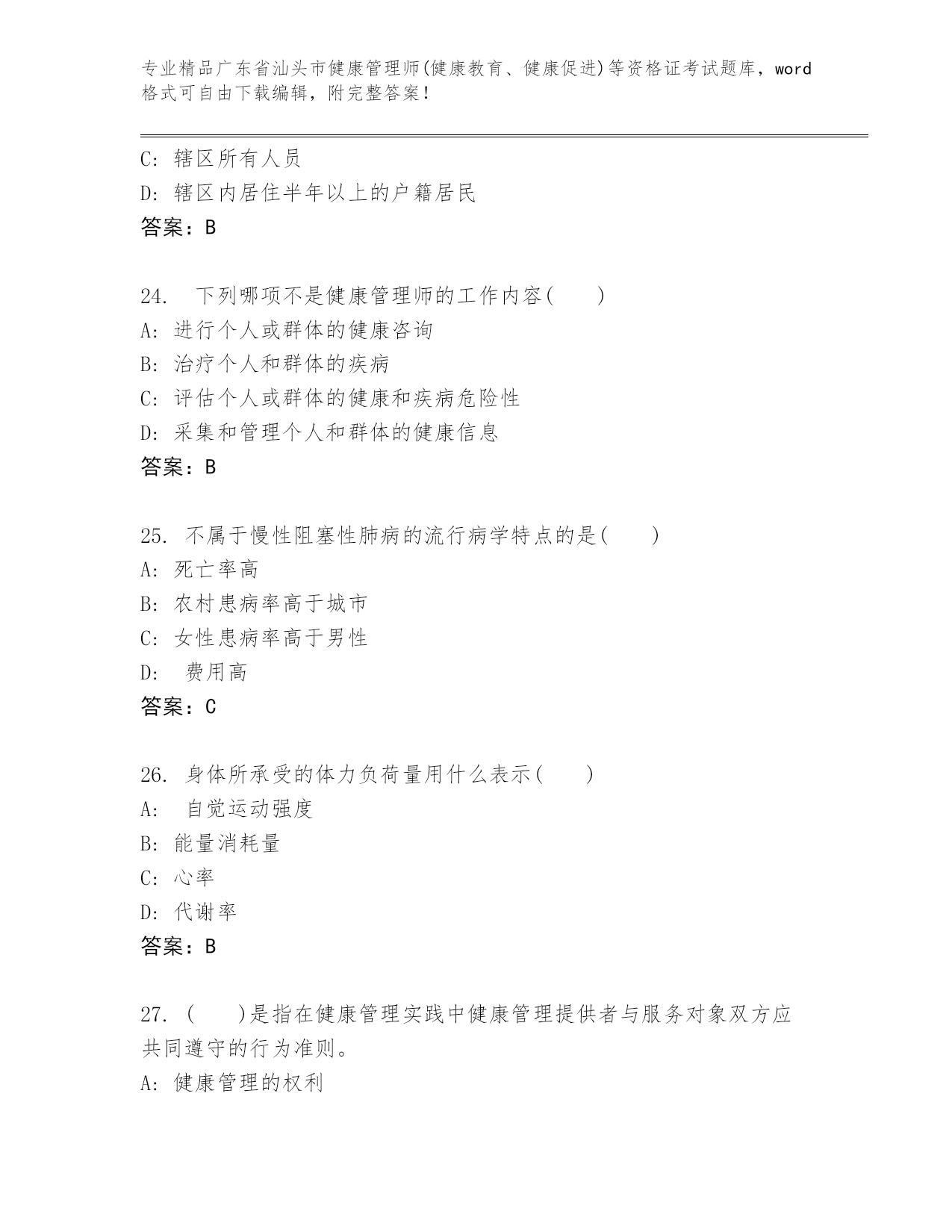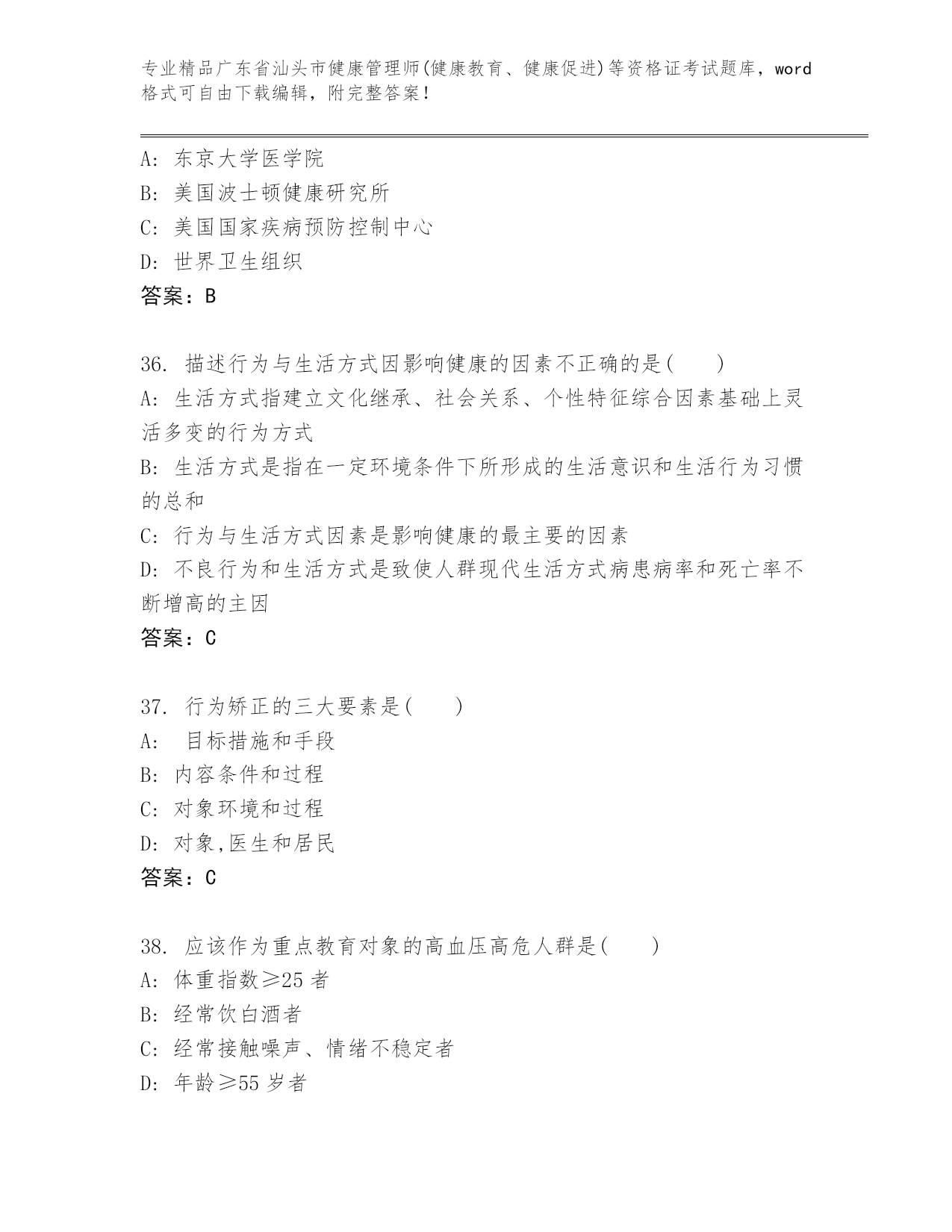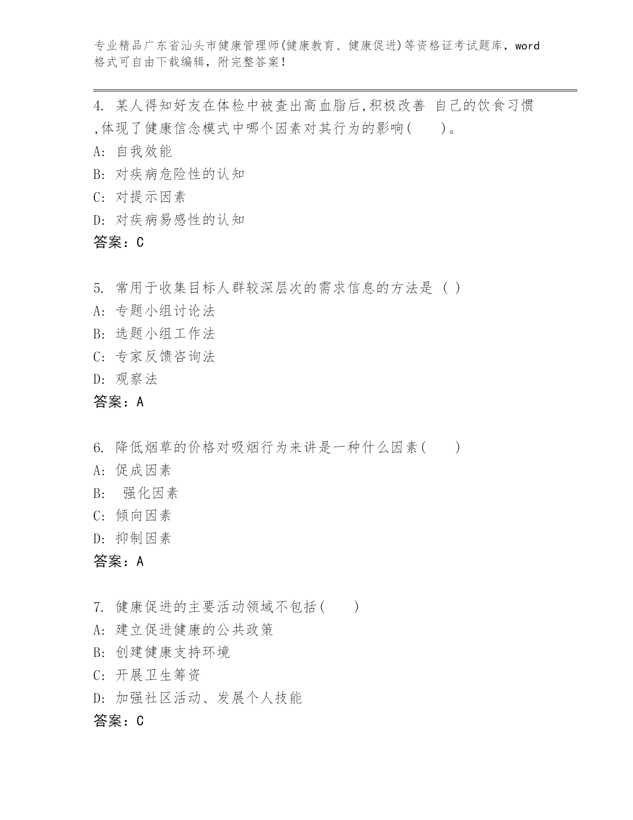 广东省汕头市健康管理师(健康教育、健康促进)等资格证考试内部题库及答案【新】.docx