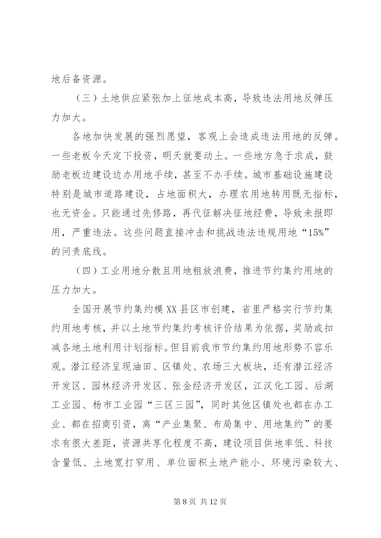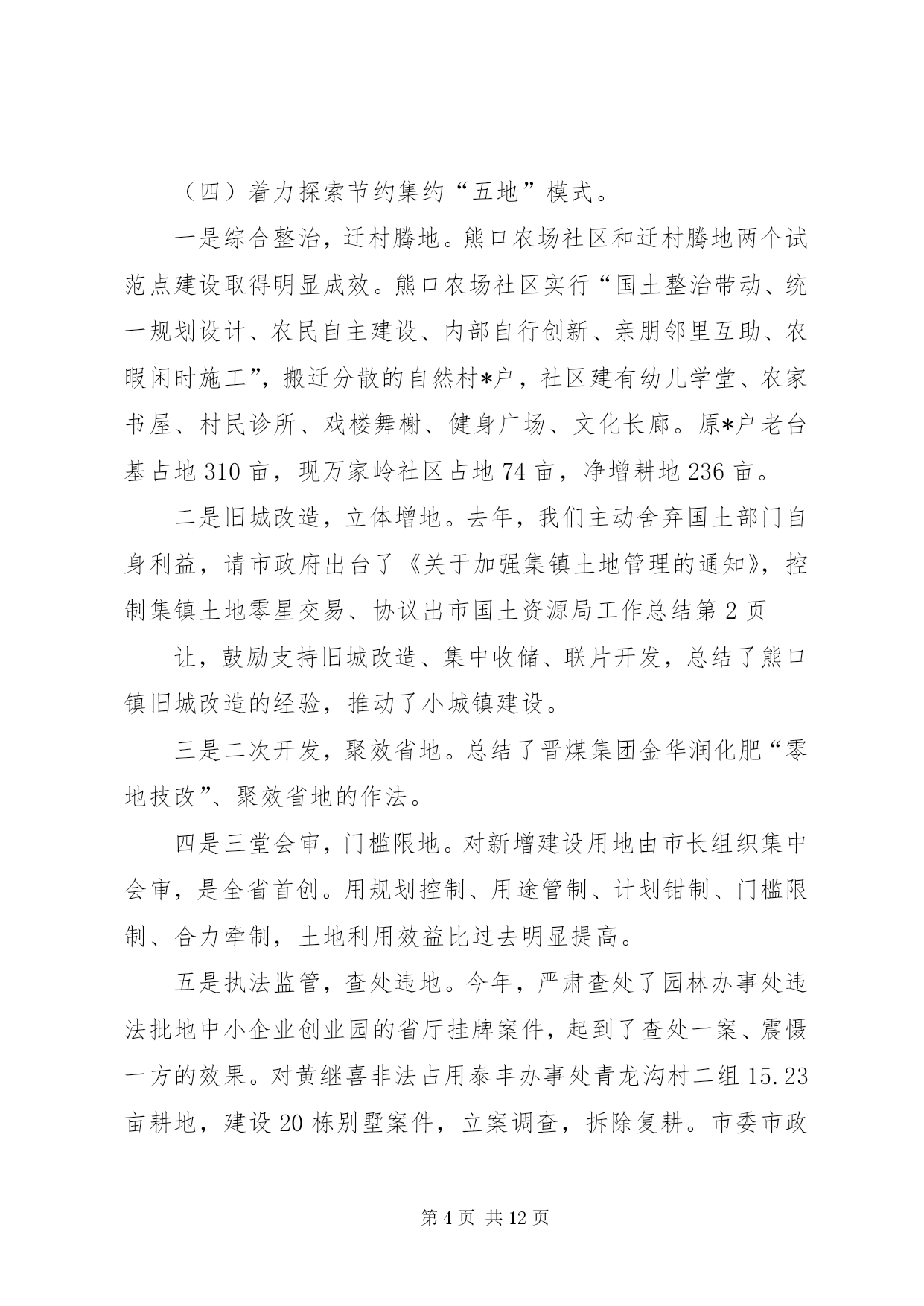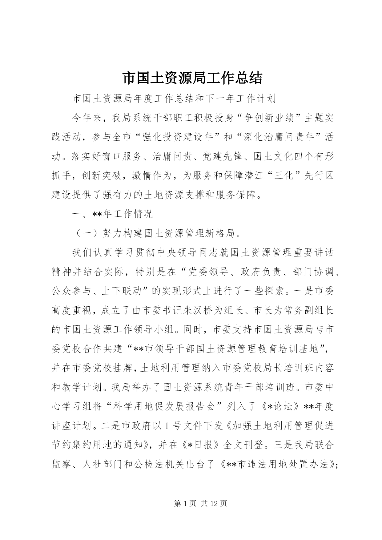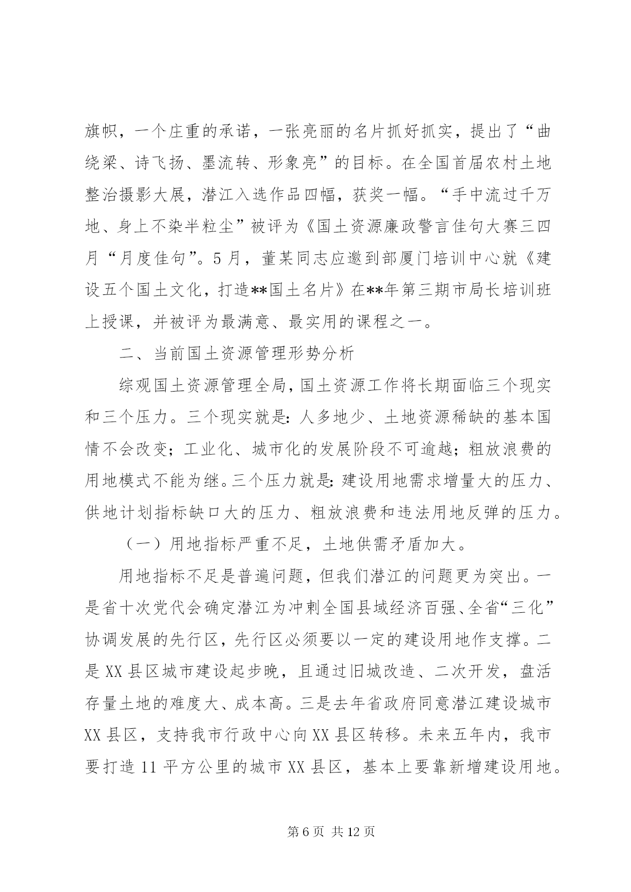 第PAGE\*Arabic\*MERGEFORMAT12页共NUMPAGES\*MERGEFORMAT12页市国土资源局工作总结市国土资源局年度工作总结和下一年工作计划今年来,我局系统干部职工积极投身“争创新业绩”主题实践活动,参与全市“强化投资建设年”和“深化治庸问责年”活动。落实好窗口服务、治庸问责、党建先锋、国土文化四个有形抓手,创新突破,激情作为,为服务和保障潜江“三化”先行区建设提供了强有力的土地资源支撑和服务保障。一、**年工作情况(一)努力构建国土资源管理新格局。我们认真学习贯彻中央领导同志就国土资源管理重要讲话精神并结合实际,特别是在“党委领导、政府负责、部门协调、公众参与、上下联动”的实现形式上进行了一些探索。一是市委高度重视,成立了由市委书记朱汉桥为组长、市长为常务副组长的市国土资源工作领导小组。同时,市委支持市国土资源局与市委党校合作共建“**市领导干部国土资源管理教育培训基地”,并在市委党校挂牌,土地利用管理纳入市委党校局长培训班内容和教学计划。我局举办了国土资源系统青年干部培训班。市委中心学习组将“科学用地促发展报告会”列入了《*论坛》**年度讲座计划。二是市政府以1号文件下发《加强土地利用管理促进节约集约用地的通知》,并在《*日报》全文刊登。三是我局联合监察、人社部门和公检法机关出台了《**市违法用地处置办法》;会同农业部门出台了《**市农业设施用地审批管理办法》;联合市监察局下发了《关于防止违法违规用地的紧急通知》。(二)奋力争取国土资源项目投资。一是奋力争取土地整理项目资金。全年总投入3亿元,完成6万亩,启动16.8万亩,被纳入市政府为民办事十件实事之一。6万亩在建项目目前完成工程建设总任务;16.8万亩项目于9月底全面进场施工。二是奋力争取废弃油井治理项目投资。潜江是在全国唯一作为“平原地区废弃油井治理项目”挤进全国“资源枯竭型城市废弃矿山恢复治理工程项目”的。国土部、财政部批复后,第一期1.2亿元项目于6月上旬全面动工建设,项目实施顺利。11月上旬,中国地质大学校长王焰新、美国斯坦福大学教授、矿山地质环境治理专家芬多夫博士一行专门来潜考察了我市矿山环境治理工程项目,对治理工作给予了很高的评价。(三)全力保障发展用地需求。一是对上奋力争指标。从*年开始,国家重新实行建设用地计划指标管理。今年,省下达给我市的用地计划指标为2850亩,增减挂钩计划2430亩,争取的省级计划1800亩,全年用地计划指标达7080亩,土地利用指标在三个直管市中最多。提升用地报批质量,确保项目用地“报得出、拿得回、供得上”,我市征地报件成功率百分之百,报件材料成为全省的样本示范材料,征地工作作为全省典型报国土资源部。二是精打细算用指标。张桂华市长组织分管副市长及发改、经信、规划、环保、国土等部门对项目用地集中会审,坚持节约集约、工业优先、突出重点的原则,按照经济效益好、投资强度大、土地利用率高、单位能耗低、环境污染小的要求,将精细化、差别化用地管理落到实处,土地利用效益比过去明显提高。三是内部挖潜找指标。去年4月,我们在全省率先开展了闲置土地清理。全市清理出闲置土地6500余亩。通过平移指标、改变用途等措施共盘活闲置、半闲置土地20宗1236亩。比如,大雄国际就使用了*年批而未供地490亩,中纶纺织使用*年批而未供地593亩。今年又在全市范围内开展了违法用地、闲置用地、低效用地的“三地”清理,全市共清理出闲置土地17宗730亩;低效用地138宗2728亩;违法用地76宗5134亩。通过清理,摸清了闲置、低效和违法用地的数量、类别、分布情况,分析了解产生的原因,提出了分类处置意见,市领导高度重视、全力支持,目前正按程序依法逐宗处置。如对于广东川田卫生用品建设速度慢的问题,在浙江招商时,朱书记率国土局等有关部门,亲自约谈了企业老总,签定了限期整改备忘录。目前该企业已重新开工建设,保证今年底全面建设完成。对水牛实业客运站及森林公园项目用地问题,市长带领相关部门亲赴广东,与企业老总面对面沟通,大大推进了几宗闲置土地的处置。(四)着力探索节约集约“五地”模式。一是综合整治,迁村腾地。熊口农场社区和迁村腾地两个试范点建设取得明显成效。熊口农场社区实行“国土整治带动、统一规划设计、农民自主建设、内部自行创新、亲朋邻里互助、农暇闲时施工”,搬迁分散的自然村*户,社区建有幼儿学堂、农家书屋、村民诊所、戏楼舞榭、健身广场、文化长廊。原*户老台基占地310亩,现万家岭社区占地74亩,净增耕地236亩。二是旧城改造,立体增地。去年,我们主动舍弃国土部门自身利益,请市政府出台了《关于加强集镇土地管理的通知》,控制集镇土地零星交易、协议出市国土资源局工作总结让,鼓励支持旧城改造、集中收储、联片开发,总结了熊口镇旧城改造的