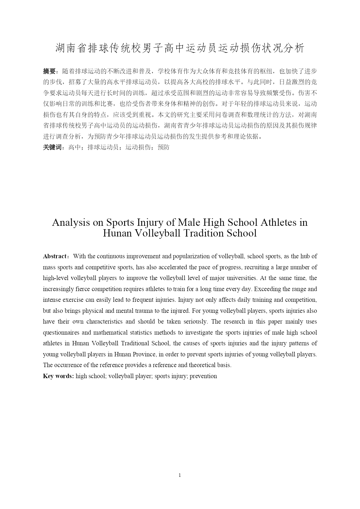 【修】20190404湖南省排球传统校男子高中运动员运动损伤状况分析