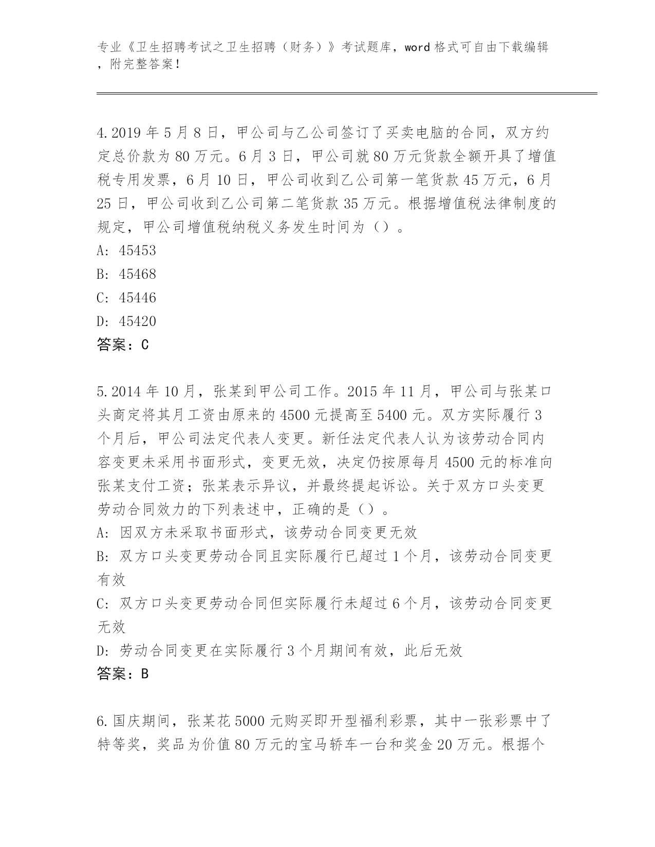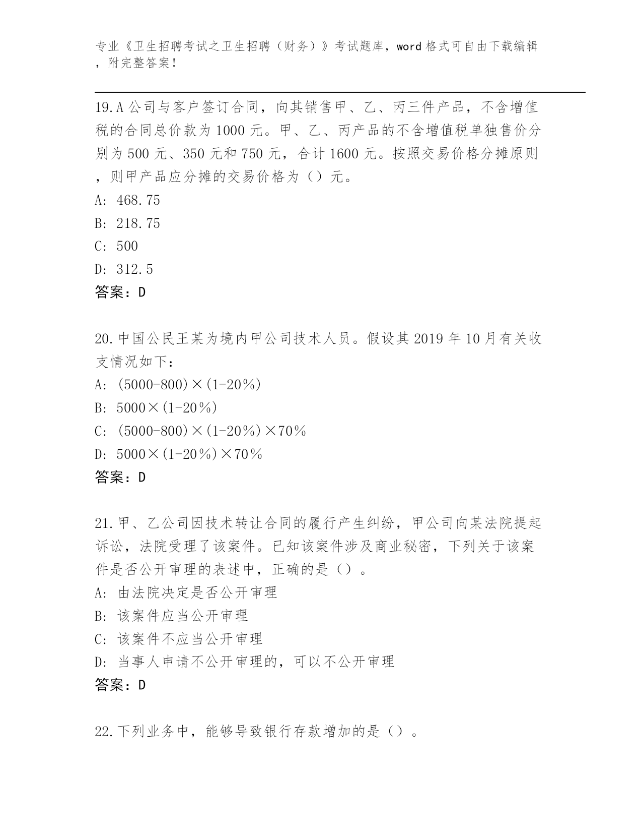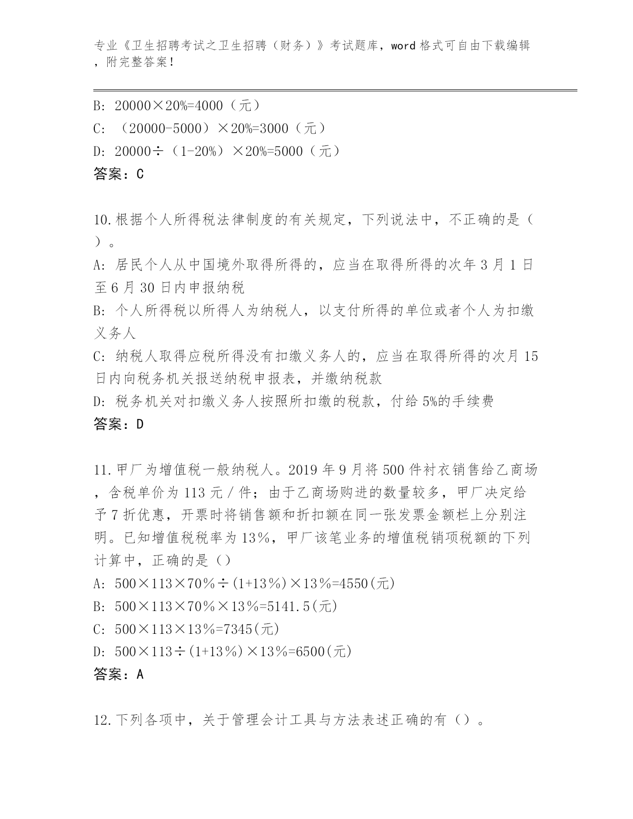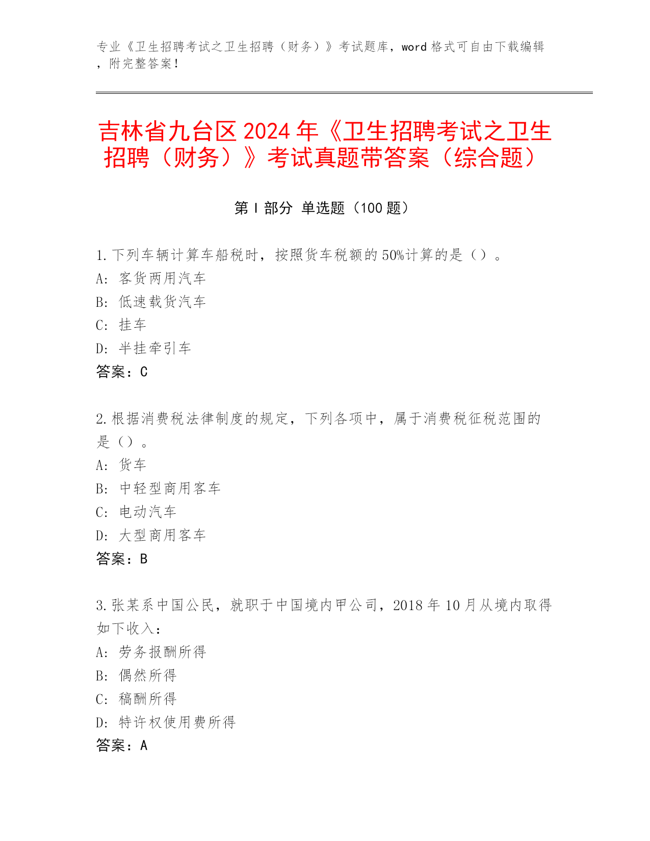 吉林省九台区2024年《卫生招聘考试之卫生招聘(财务)》考试真题带答案(综合题)