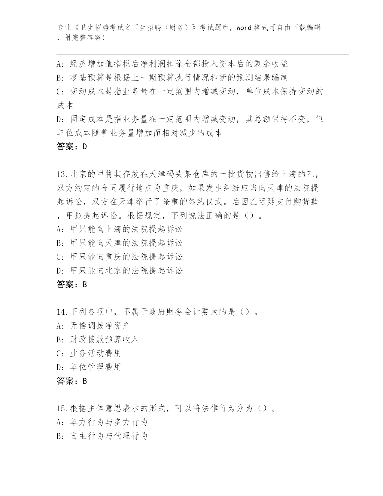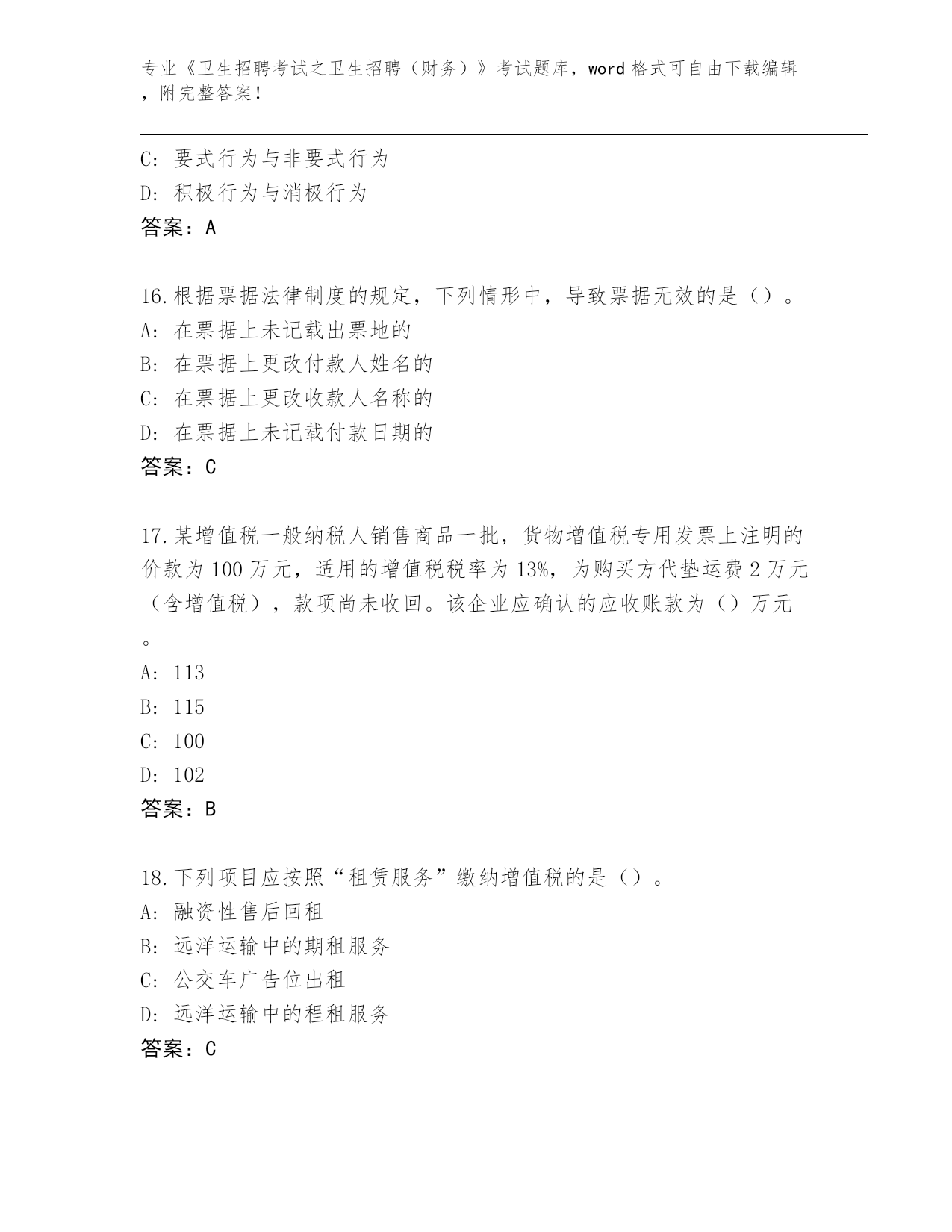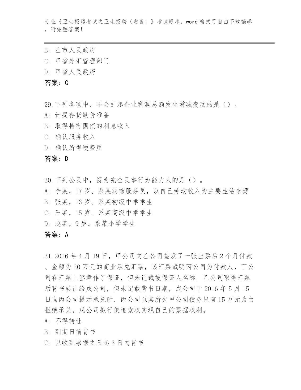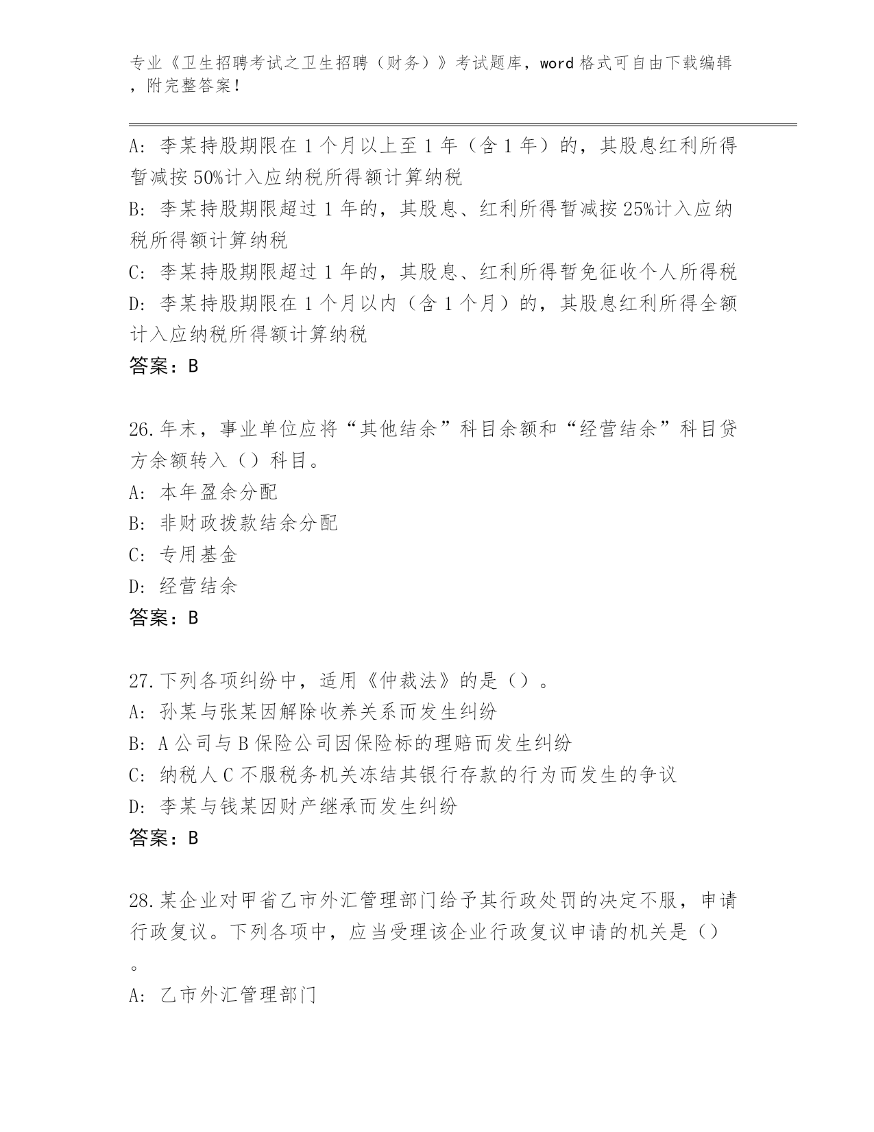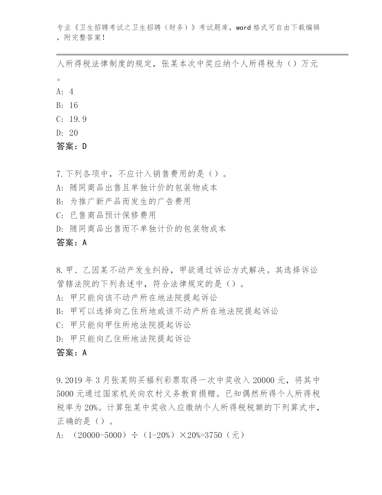 吉林省洮北区历年《卫生招聘考试之卫生招聘(财务)》考试真题带答案下载