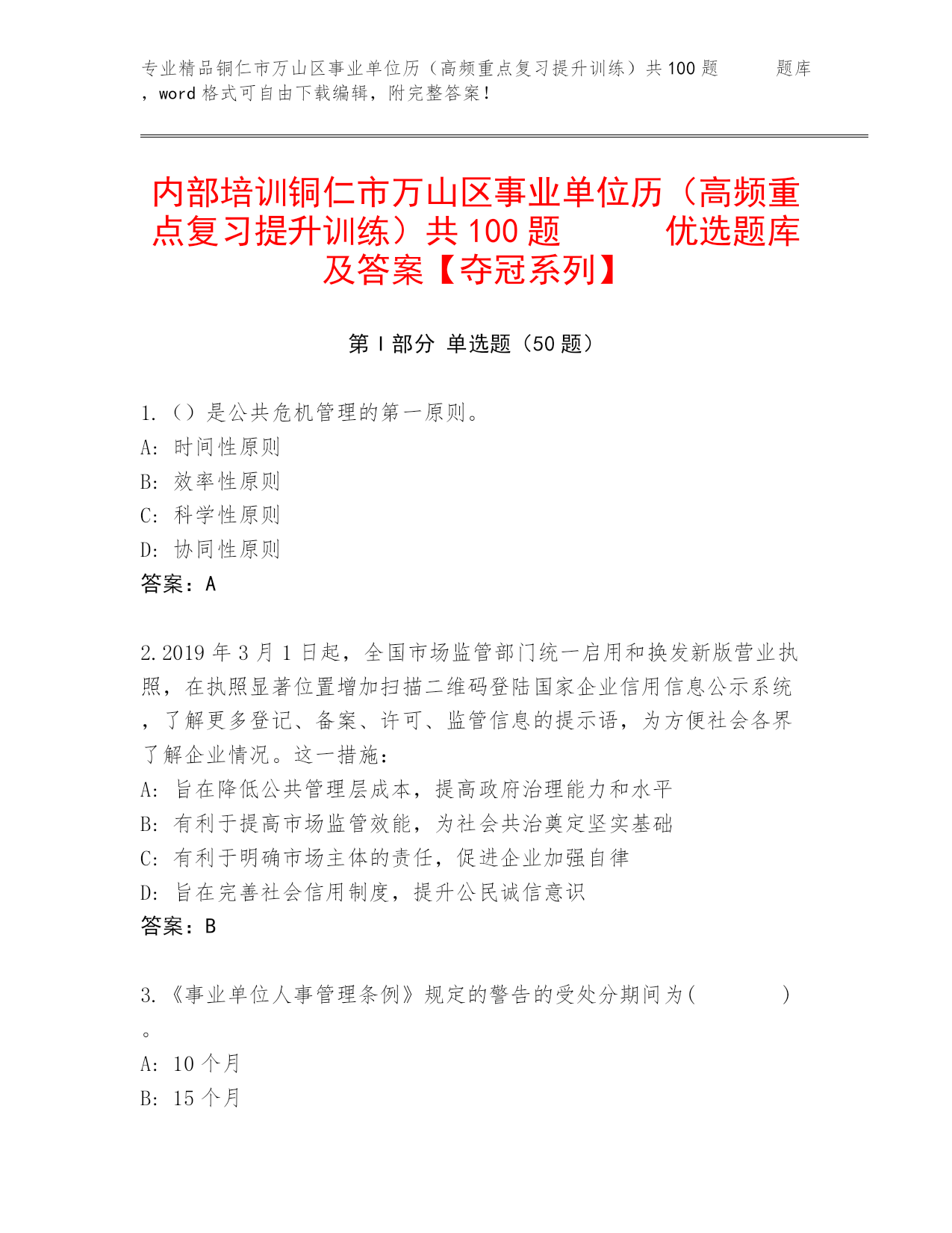 内部培训铜仁市万山区事业单位历(高频重点复习提升训练)共100题 优选题库及答案【夺冠系列】.docx