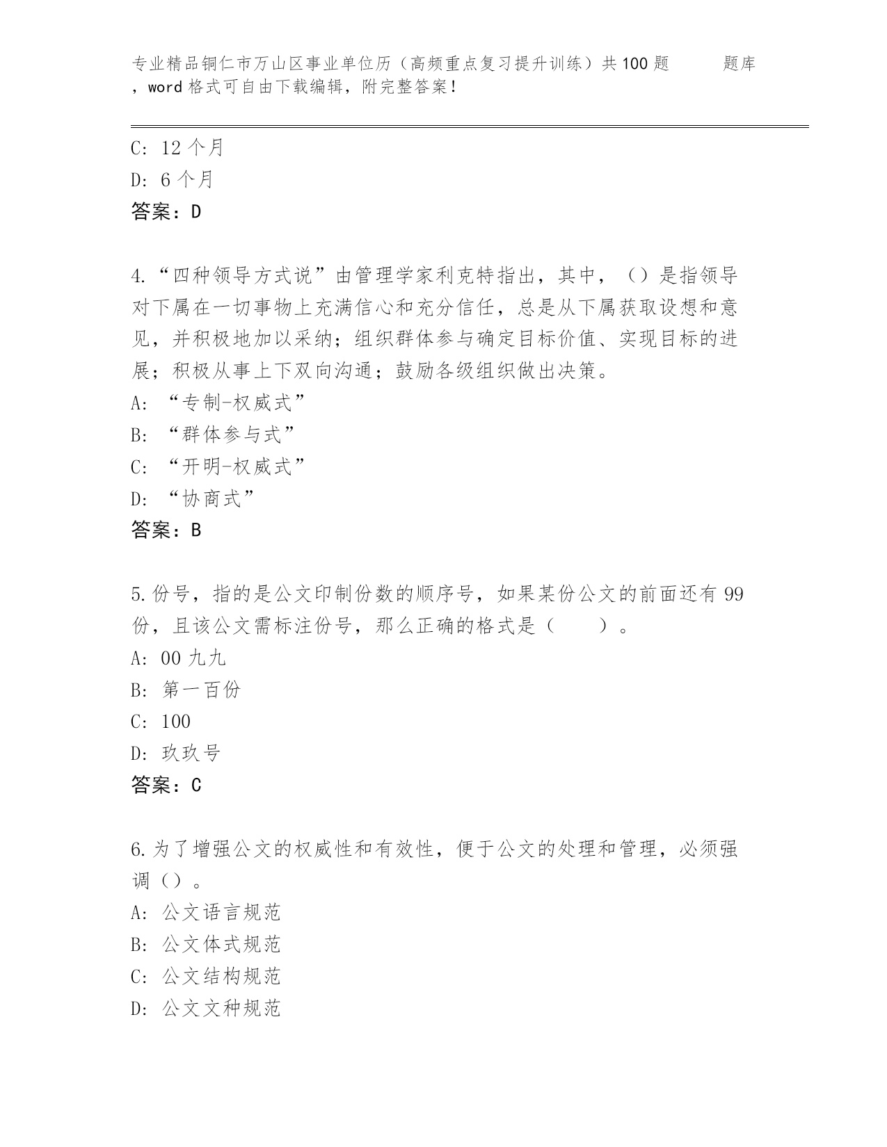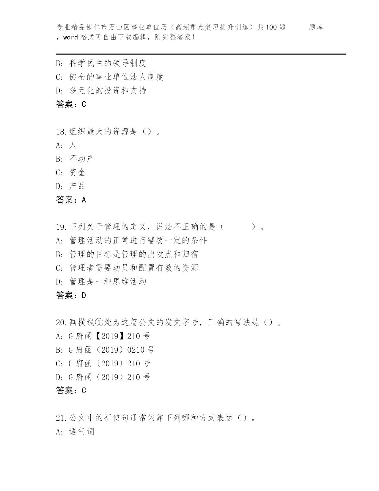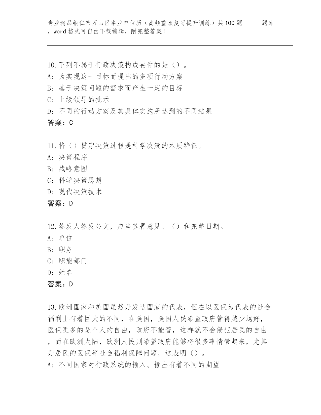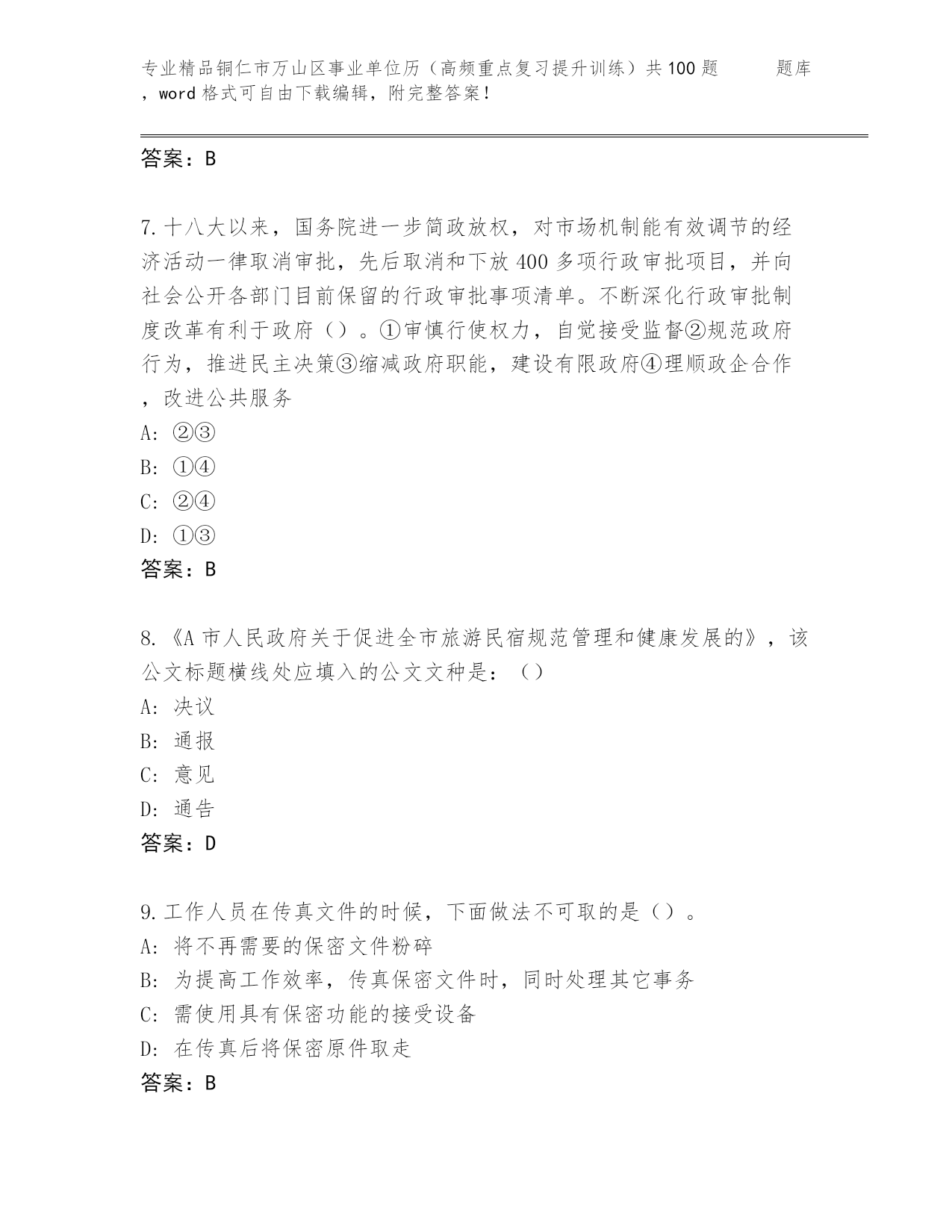 内部培训铜仁市万山区事业单位历(高频重点复习提升训练)共100题 优选题库及答案【夺冠系列】