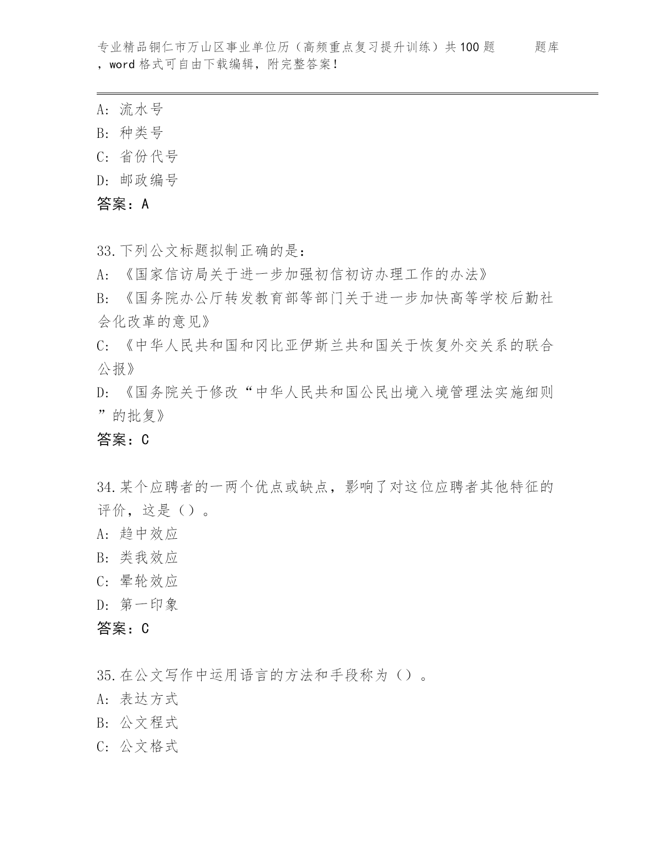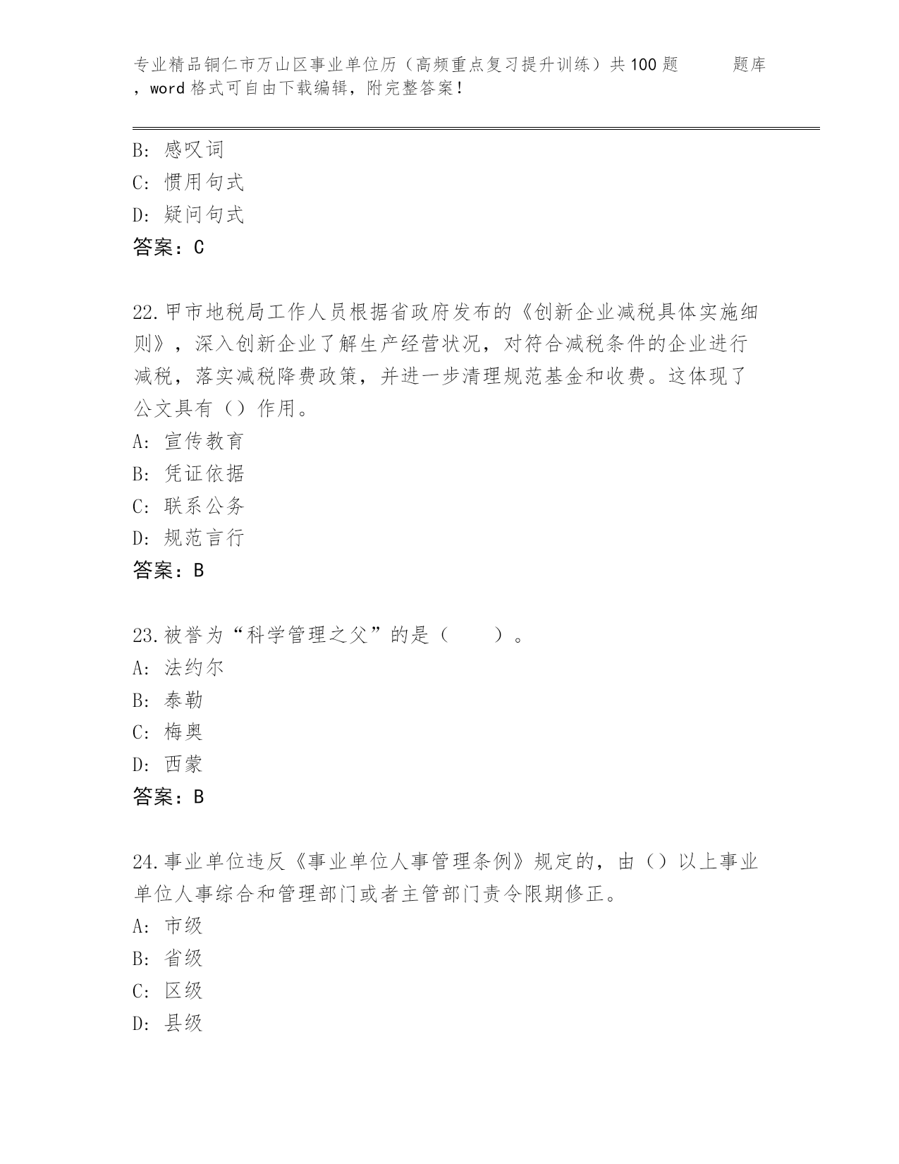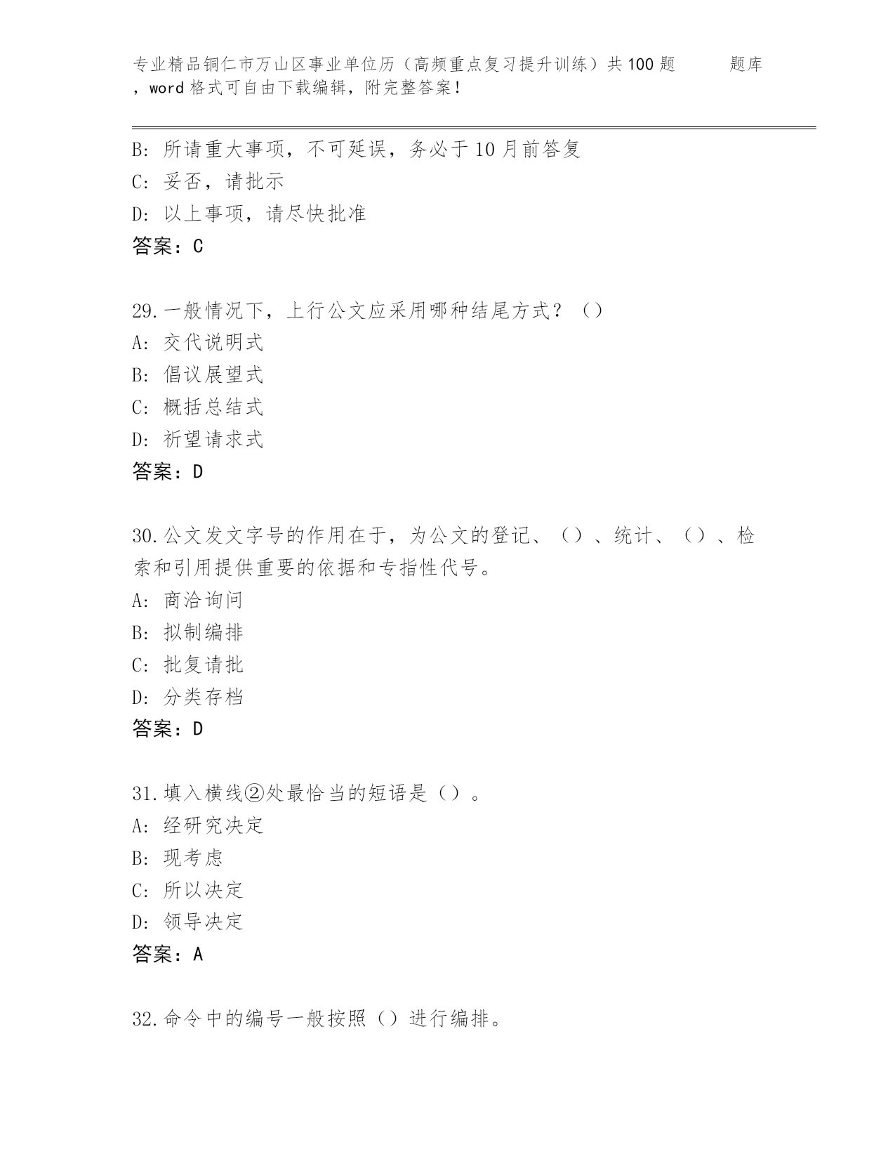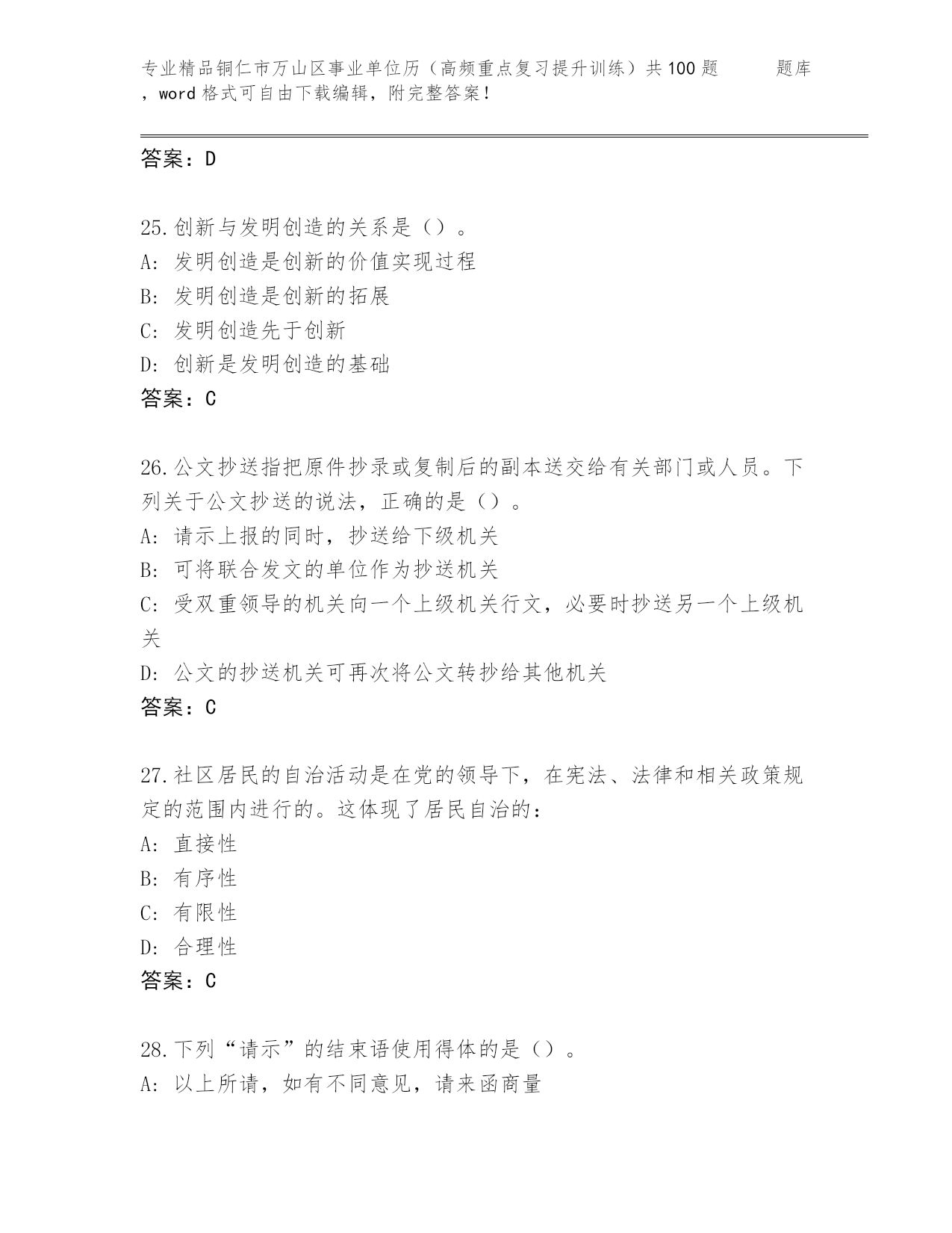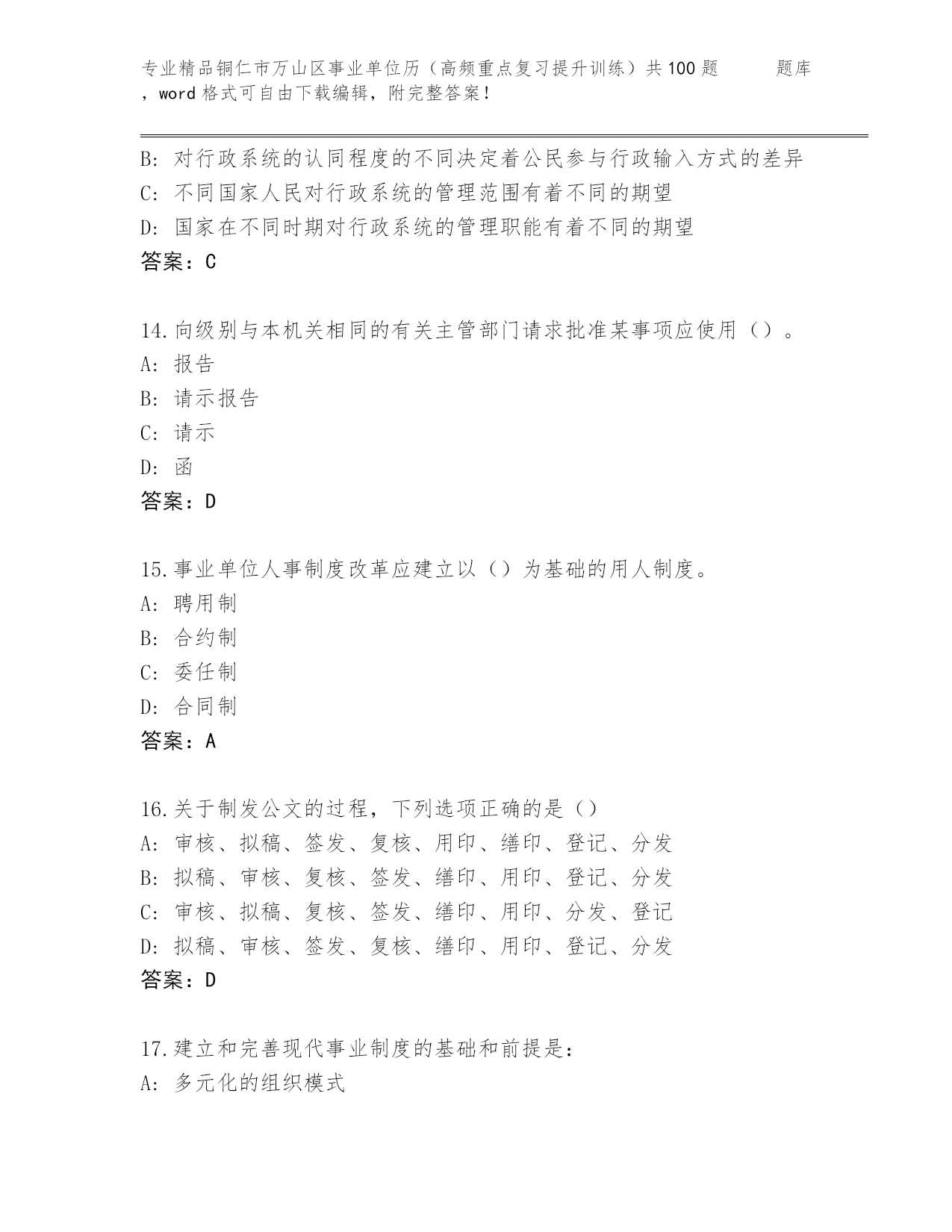 内部培训铜仁市万山区事业单位历(高频重点复习提升训练)共100题 优选题库及答案【夺冠系列】