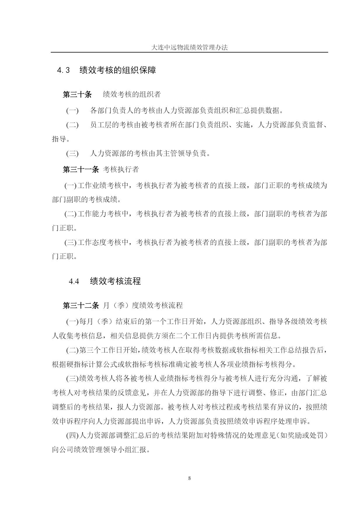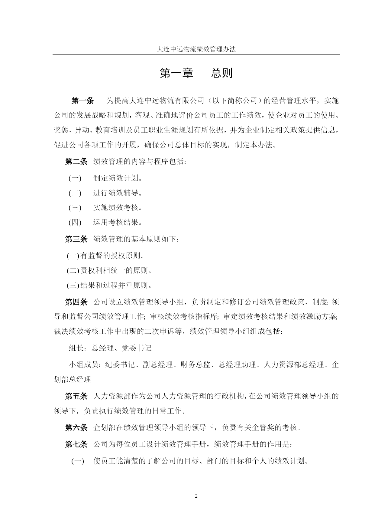 大连某物流有限公司绩效管理办法(DOC 16页).doc