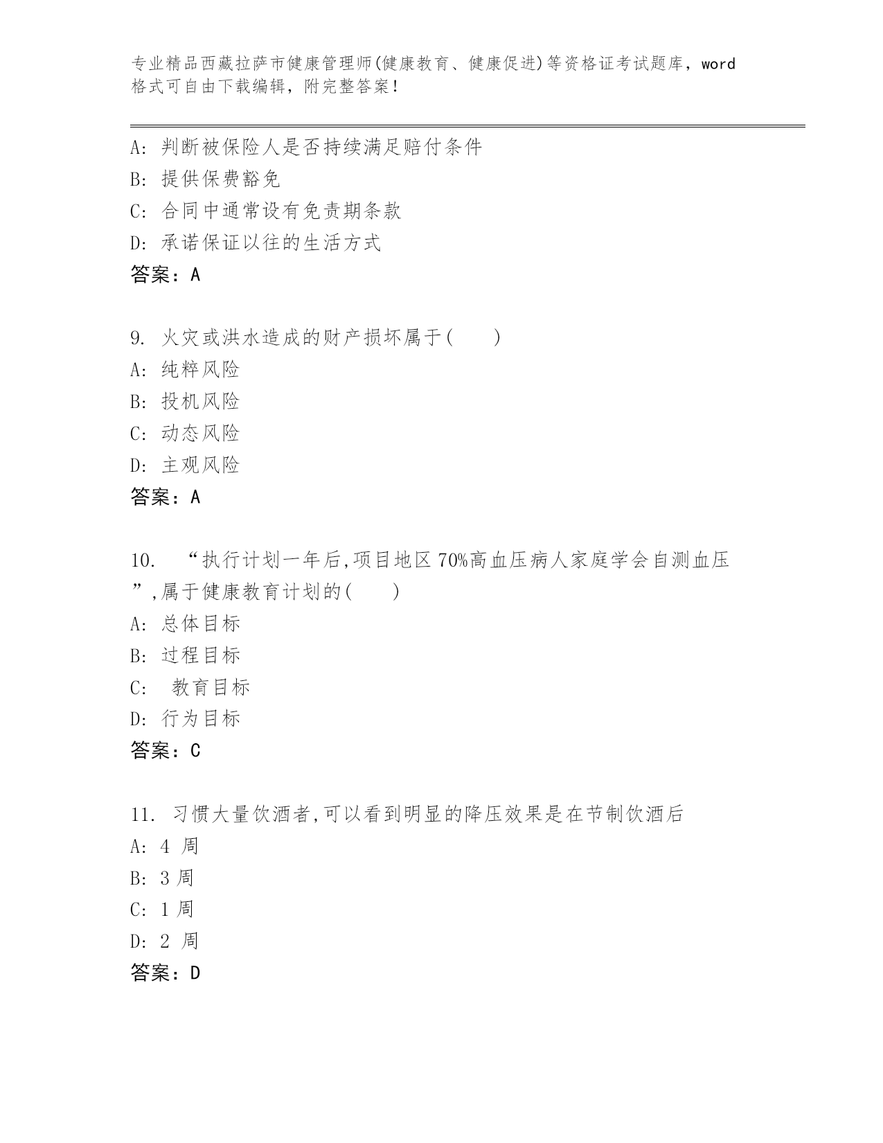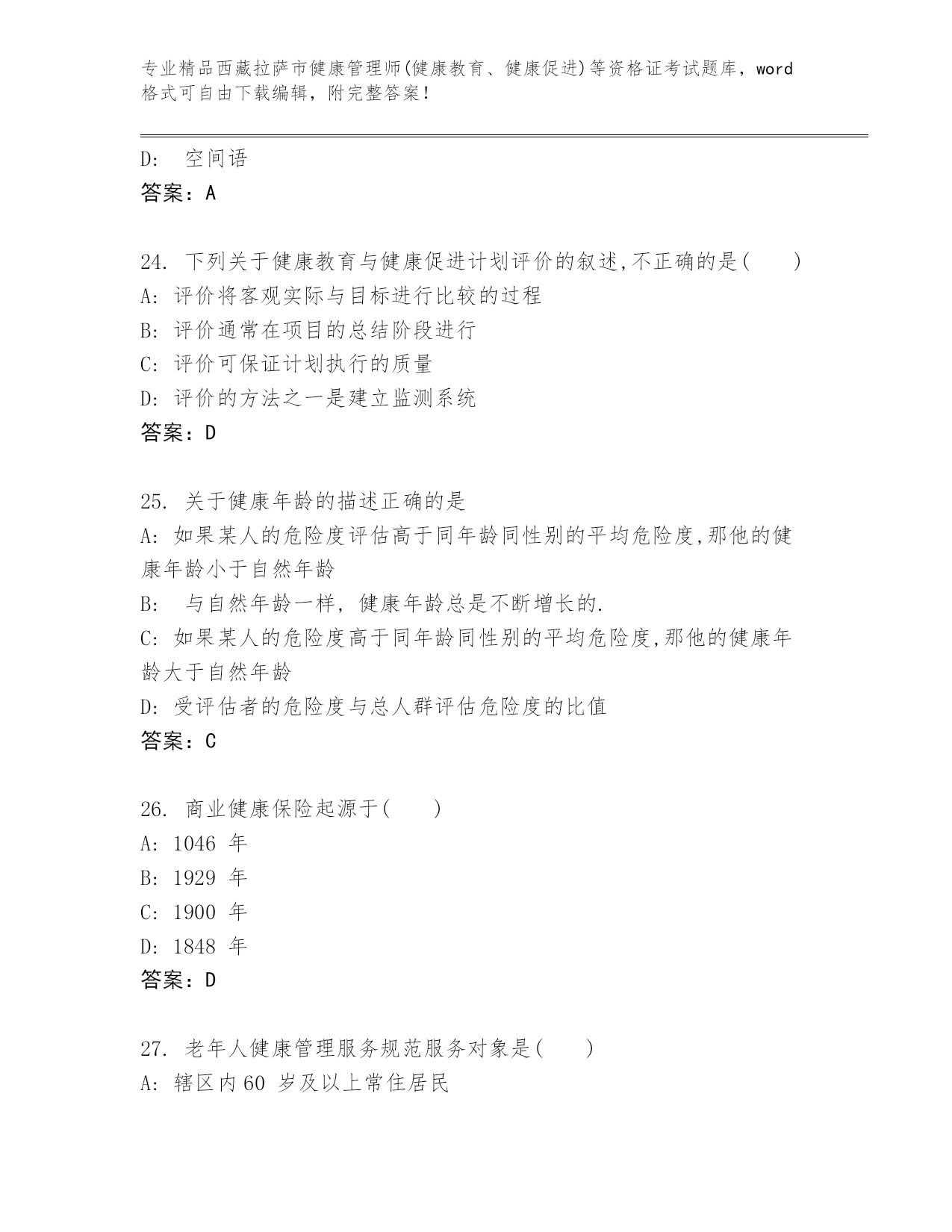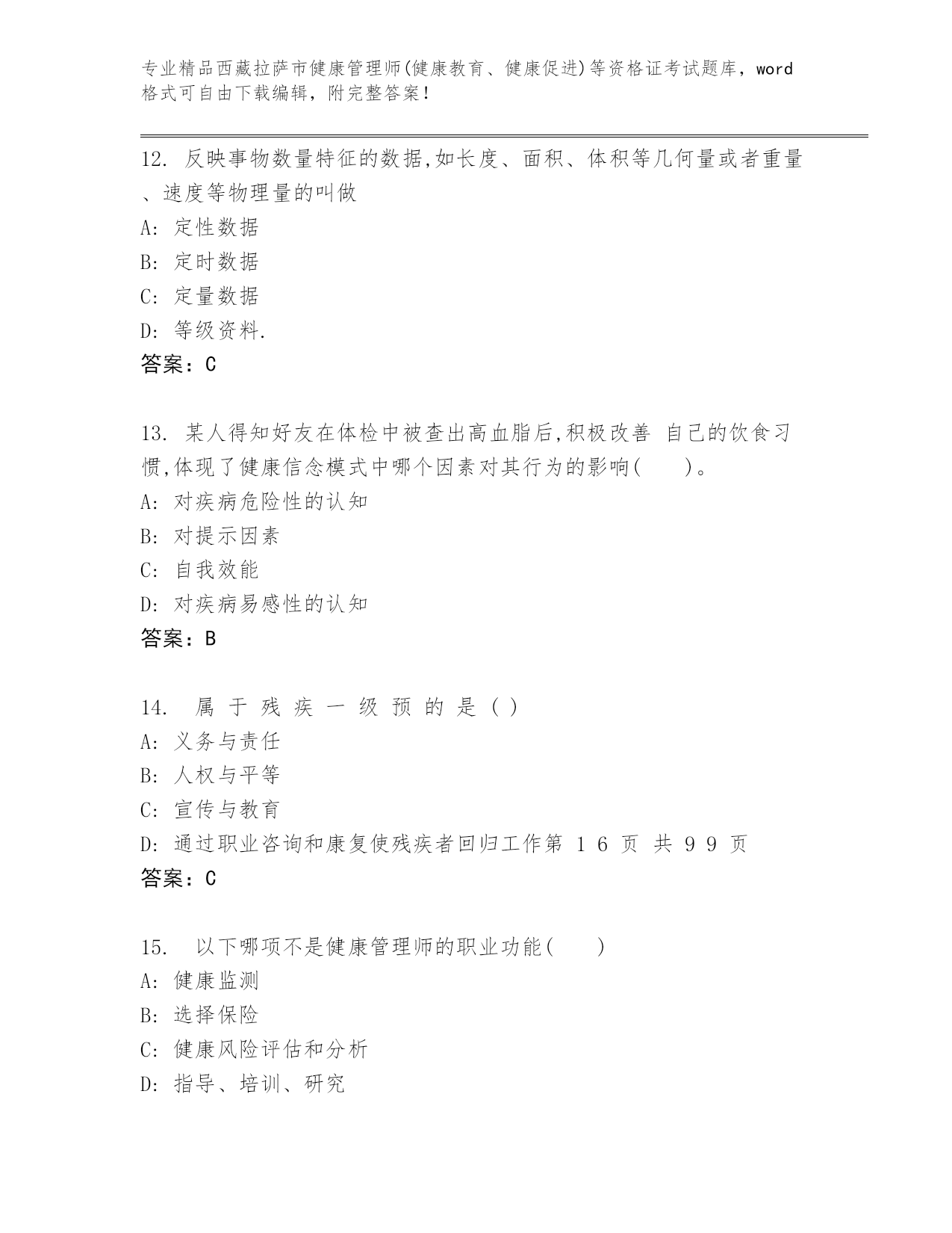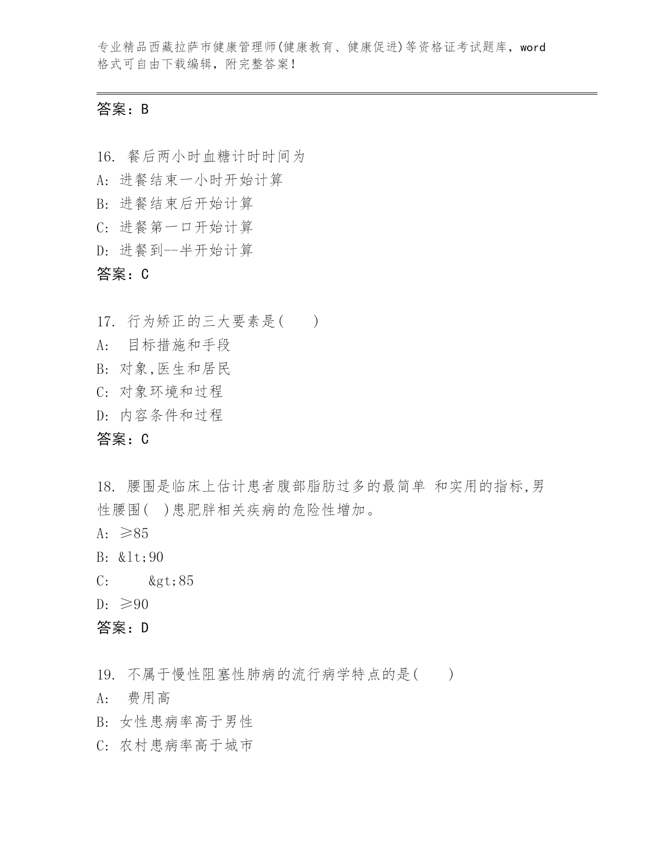 历年西藏拉萨市健康管理师(健康教育、健康促进)等资格证考试完整版(A卷).docx