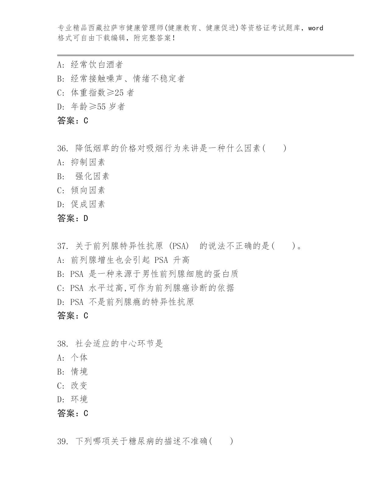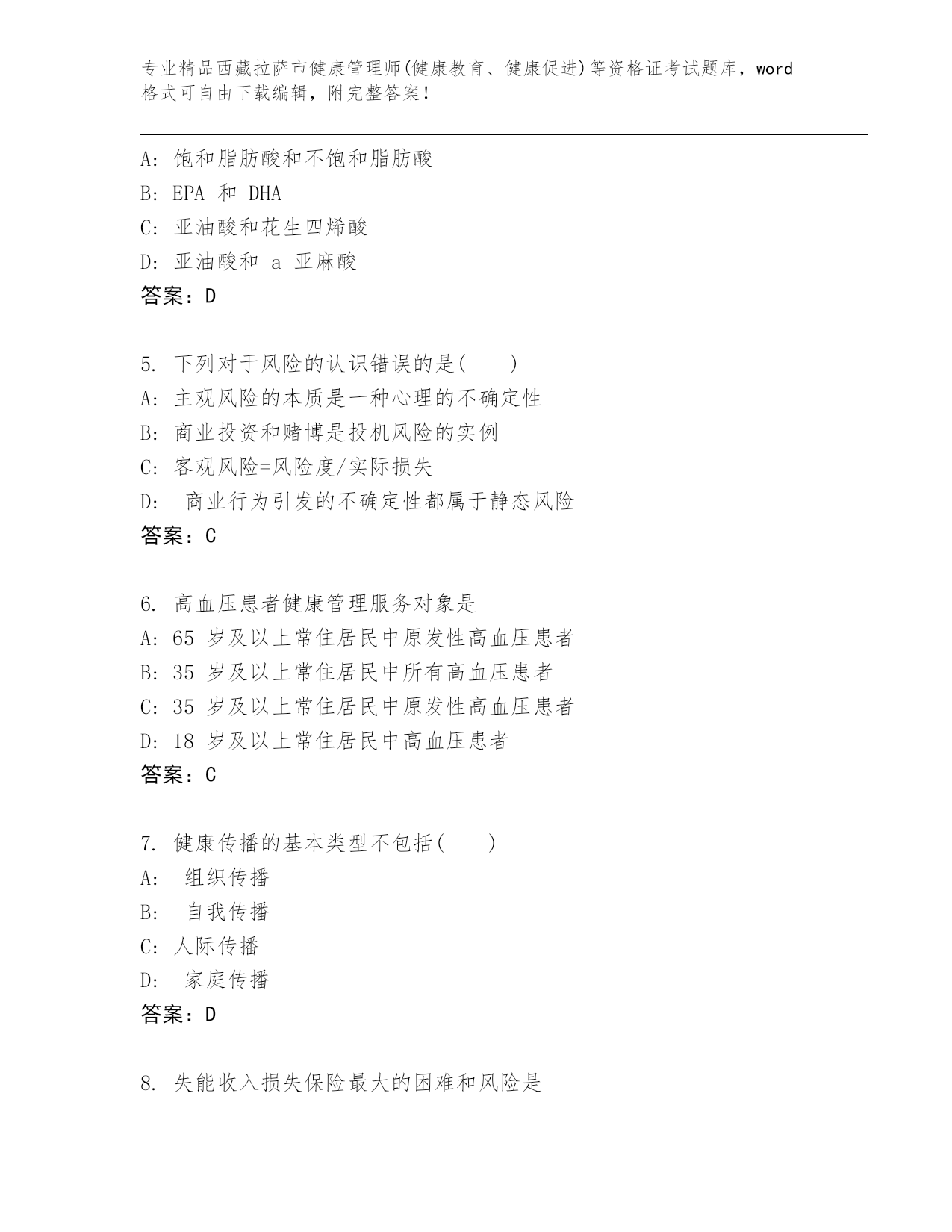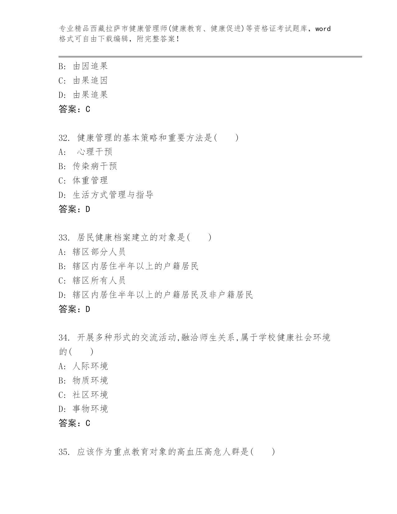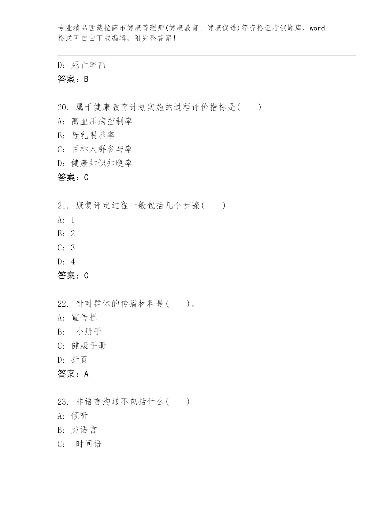 历年西藏拉萨市健康管理师(健康教育、健康促进)等资格证考试完整版(A卷).docx