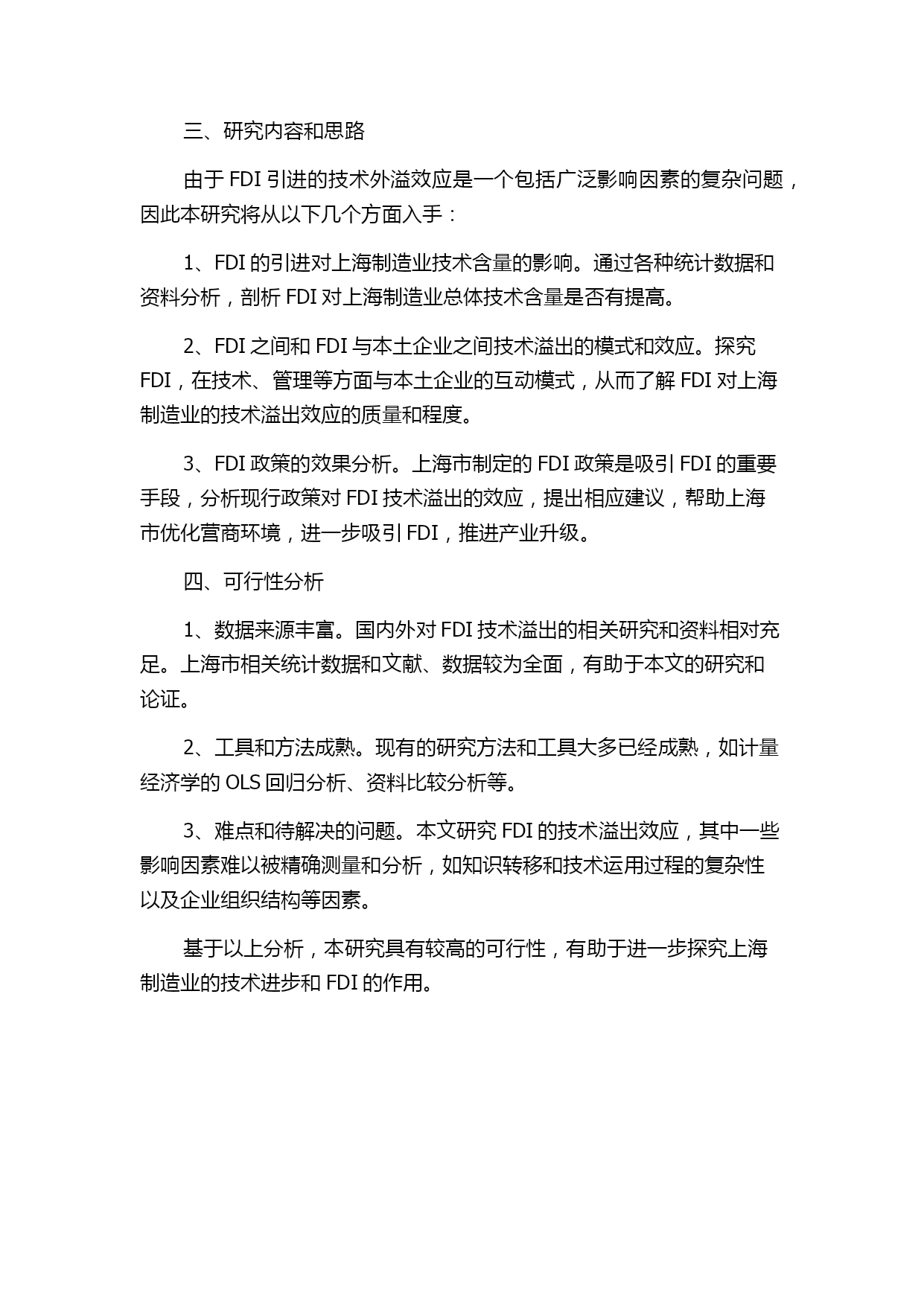 FDI对上海制造业的技术外溢效应影响分析的开题报告.docx