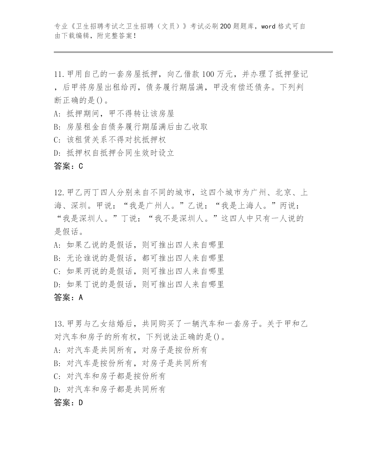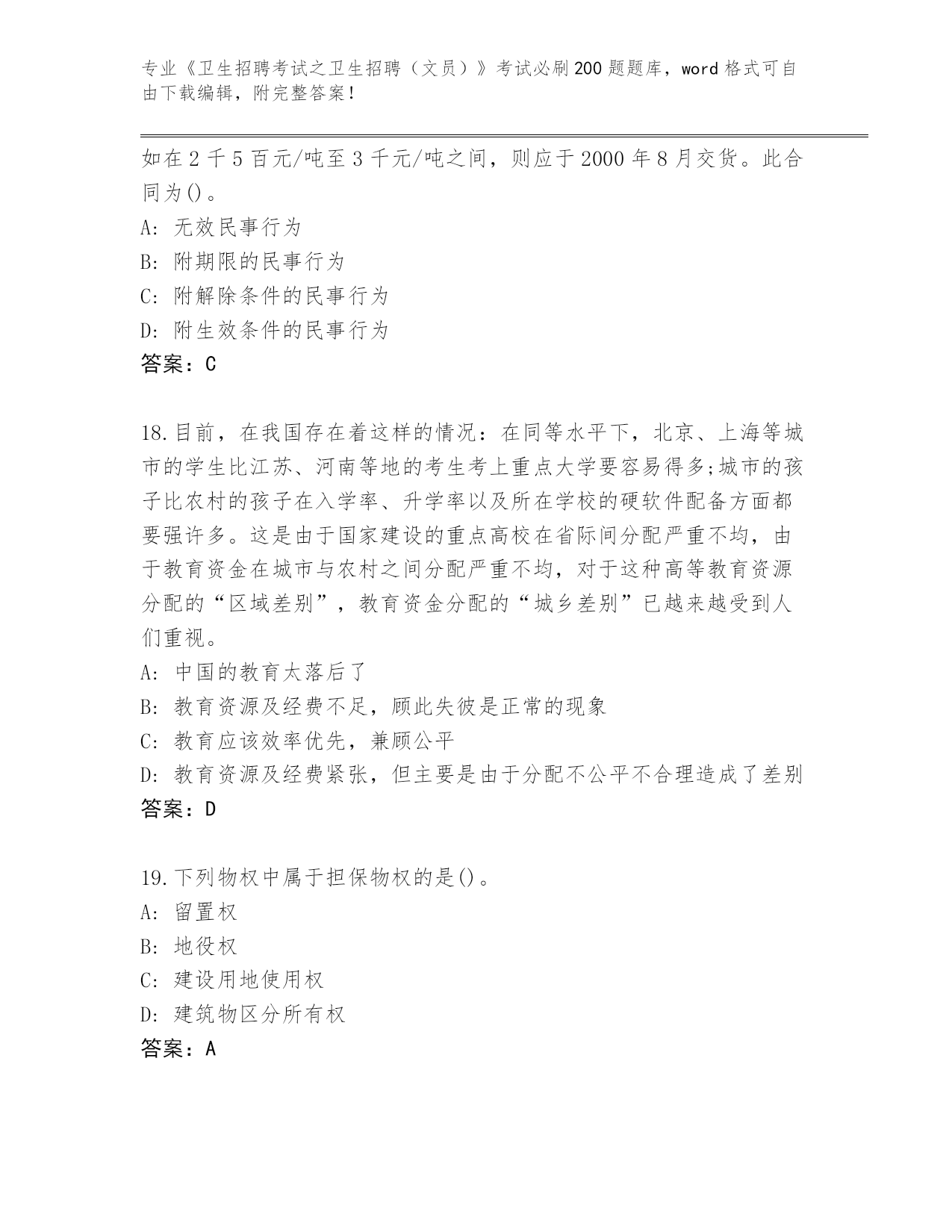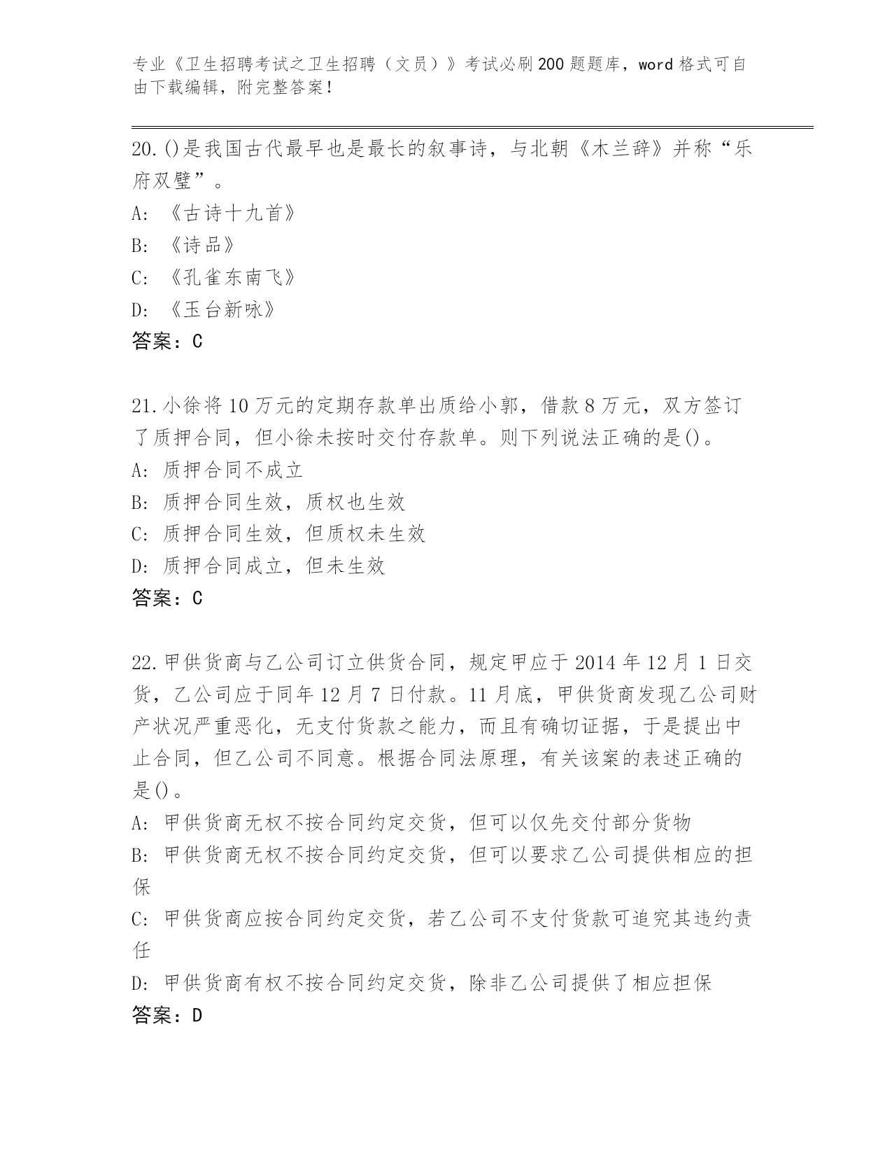 2024年重庆市沙坪坝区《卫生招聘考试之卫生招聘(文员)》考试必刷200题内部题库汇总