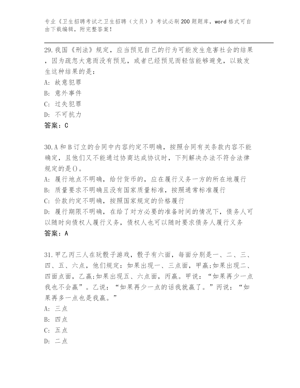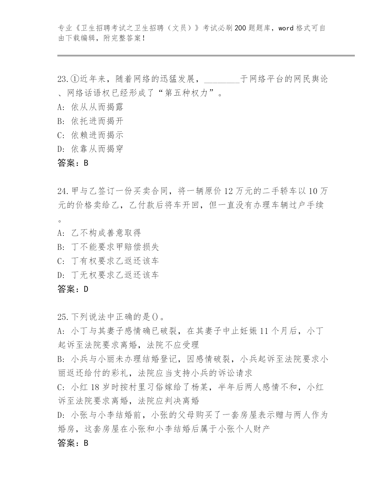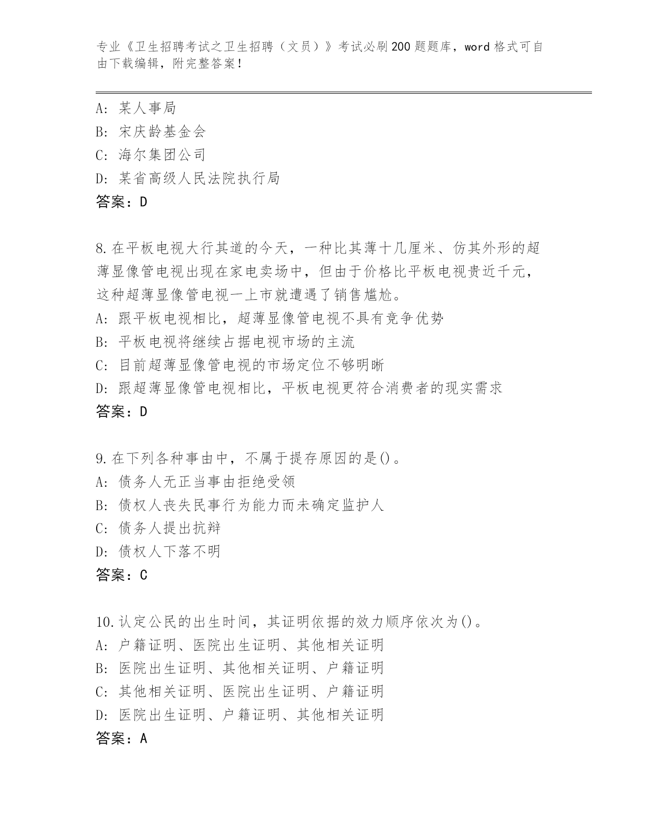 2024年重庆市沙坪坝区《卫生招聘考试之卫生招聘(文员)》考试必刷200题内部题库汇总