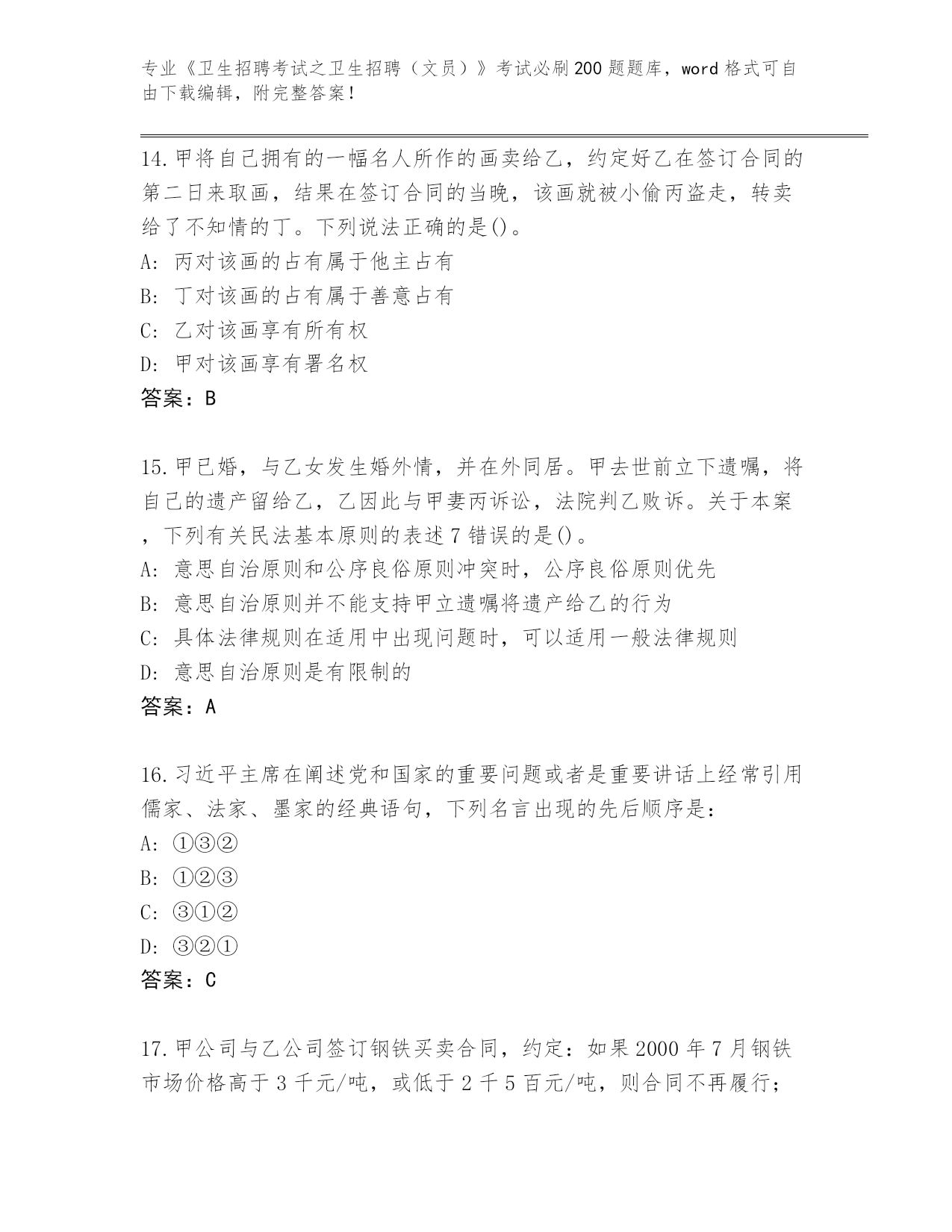 重庆市沙坪坝区整理《卫生招聘考试之卫生招聘(文员)》考试必刷200题内部题库【含答案】