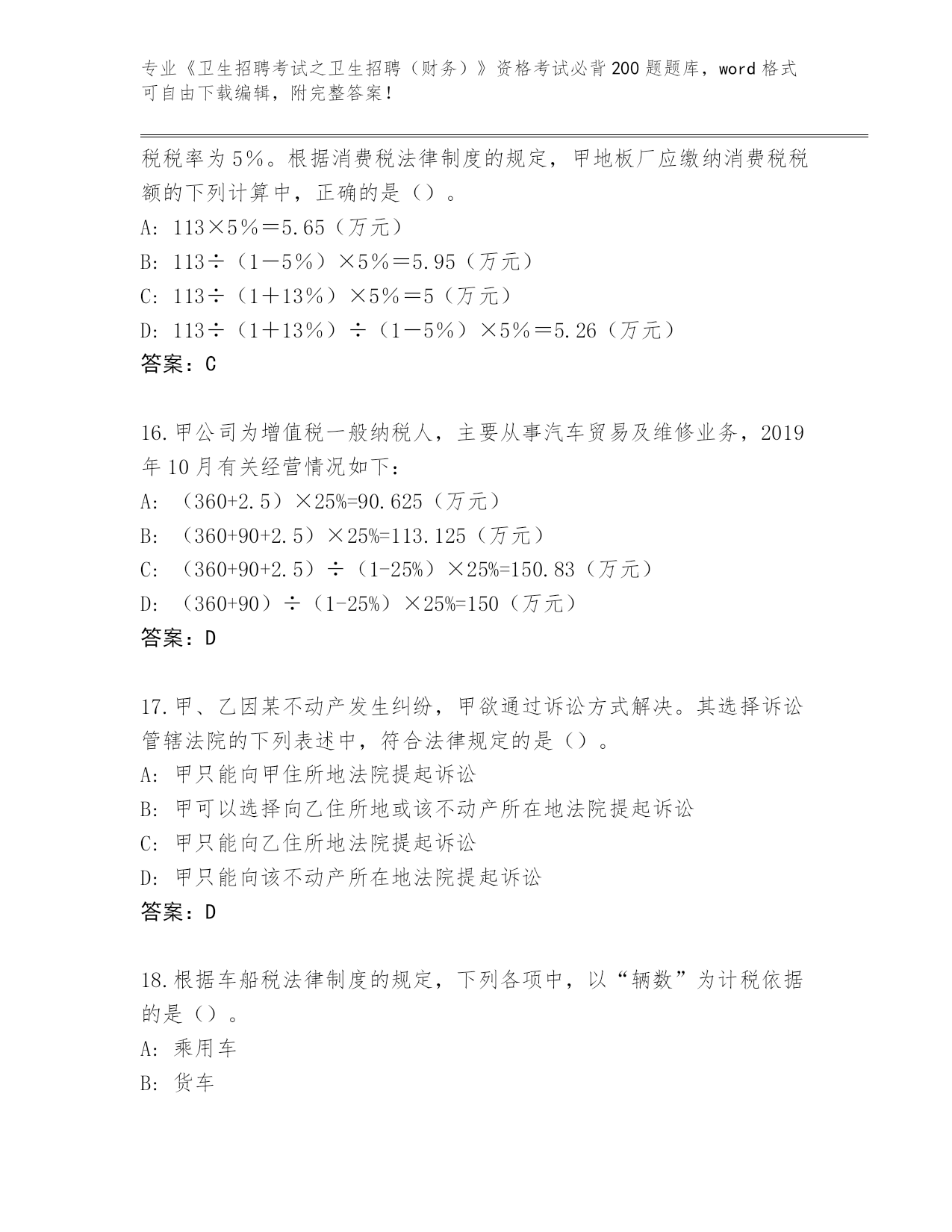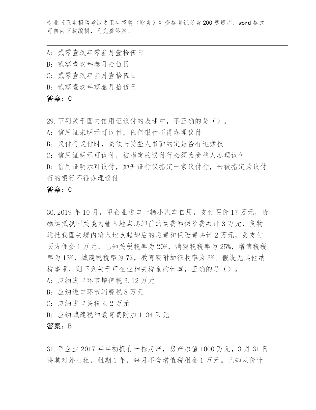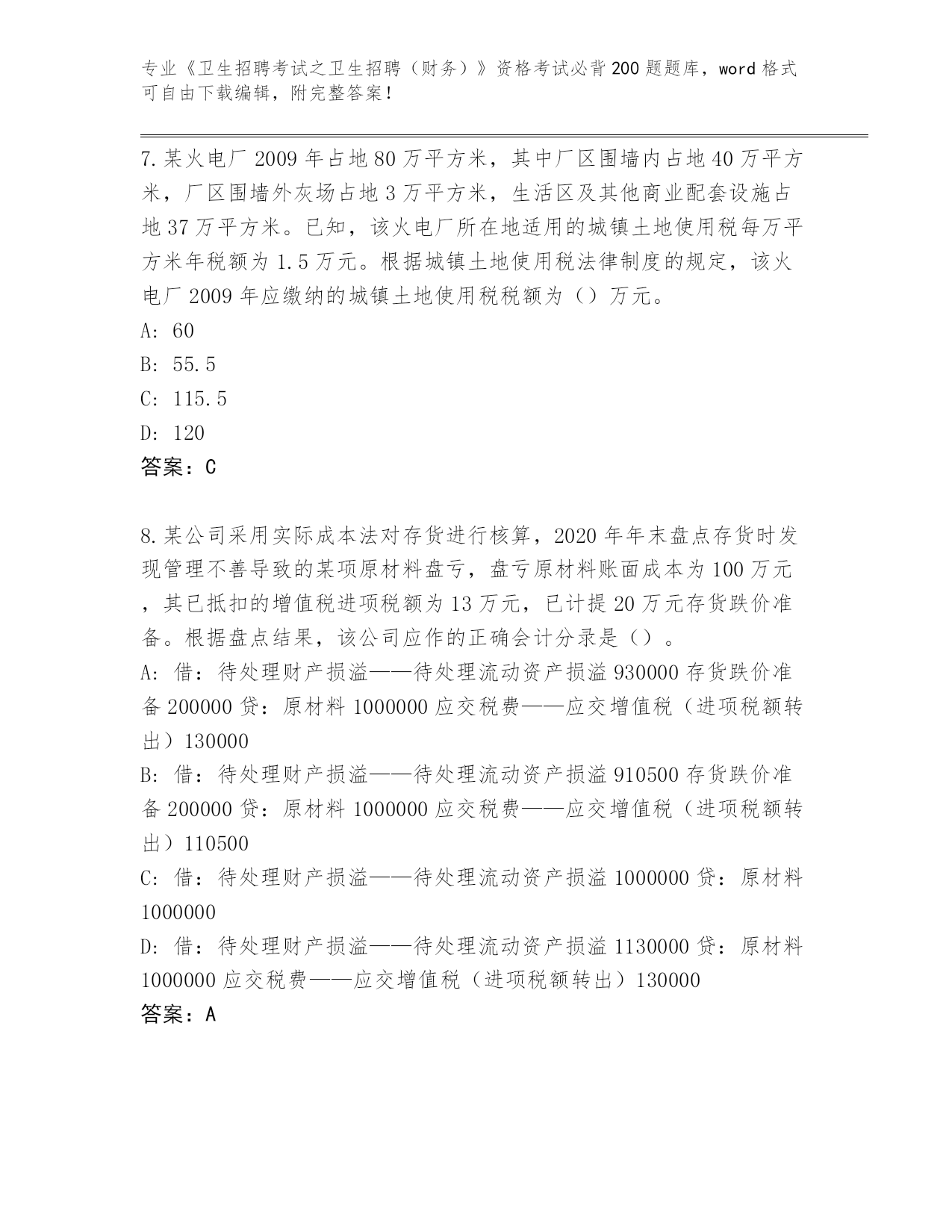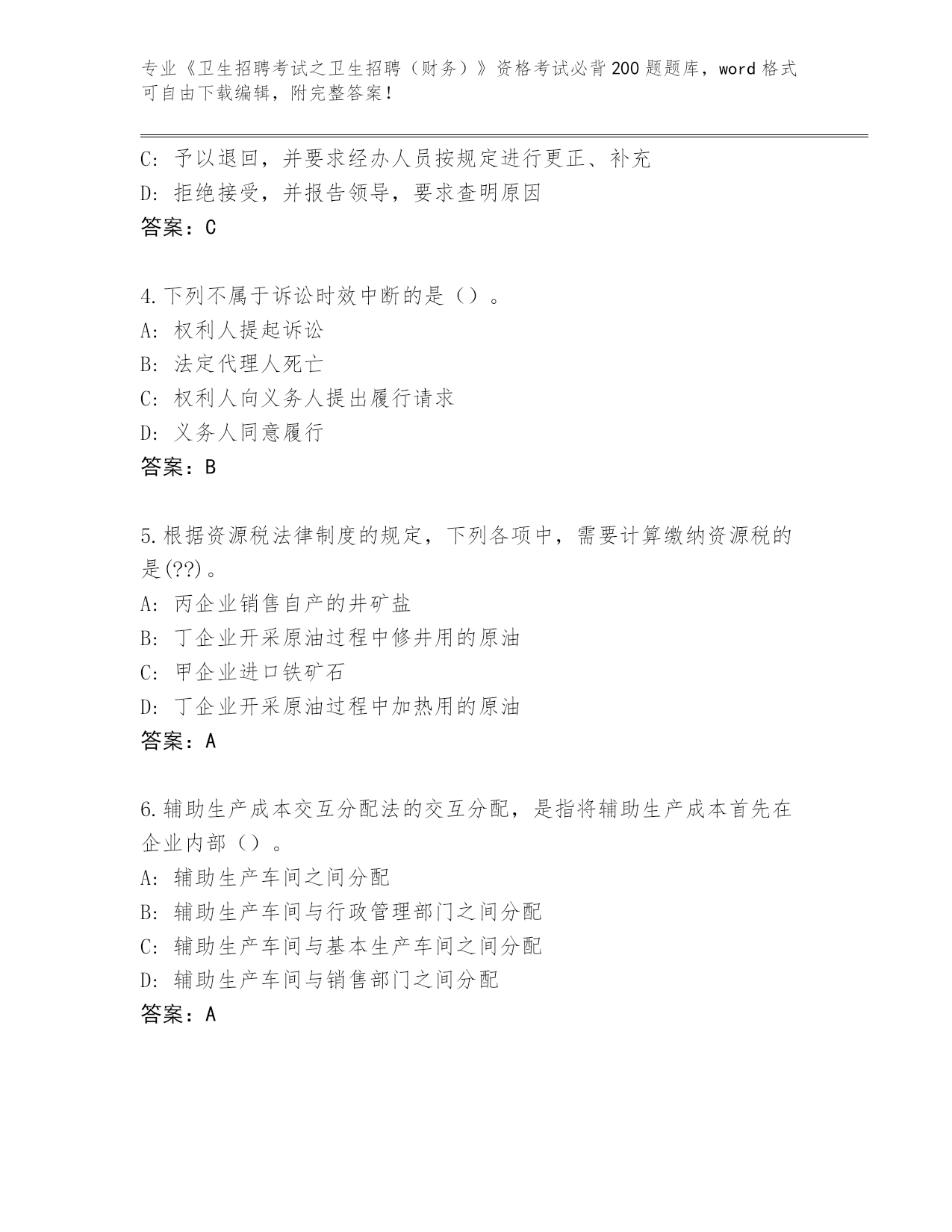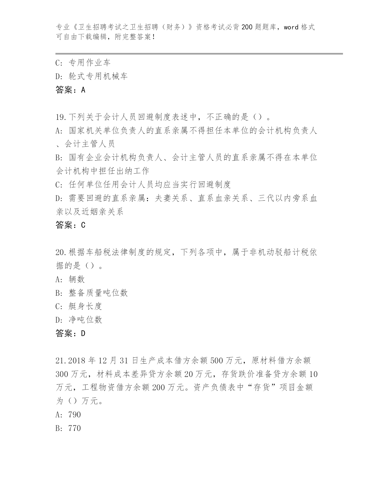 内部使用河南省浚县《卫生招聘考试之卫生招聘(财务)》资格考试必背200题王牌题库带答案(研优卷)