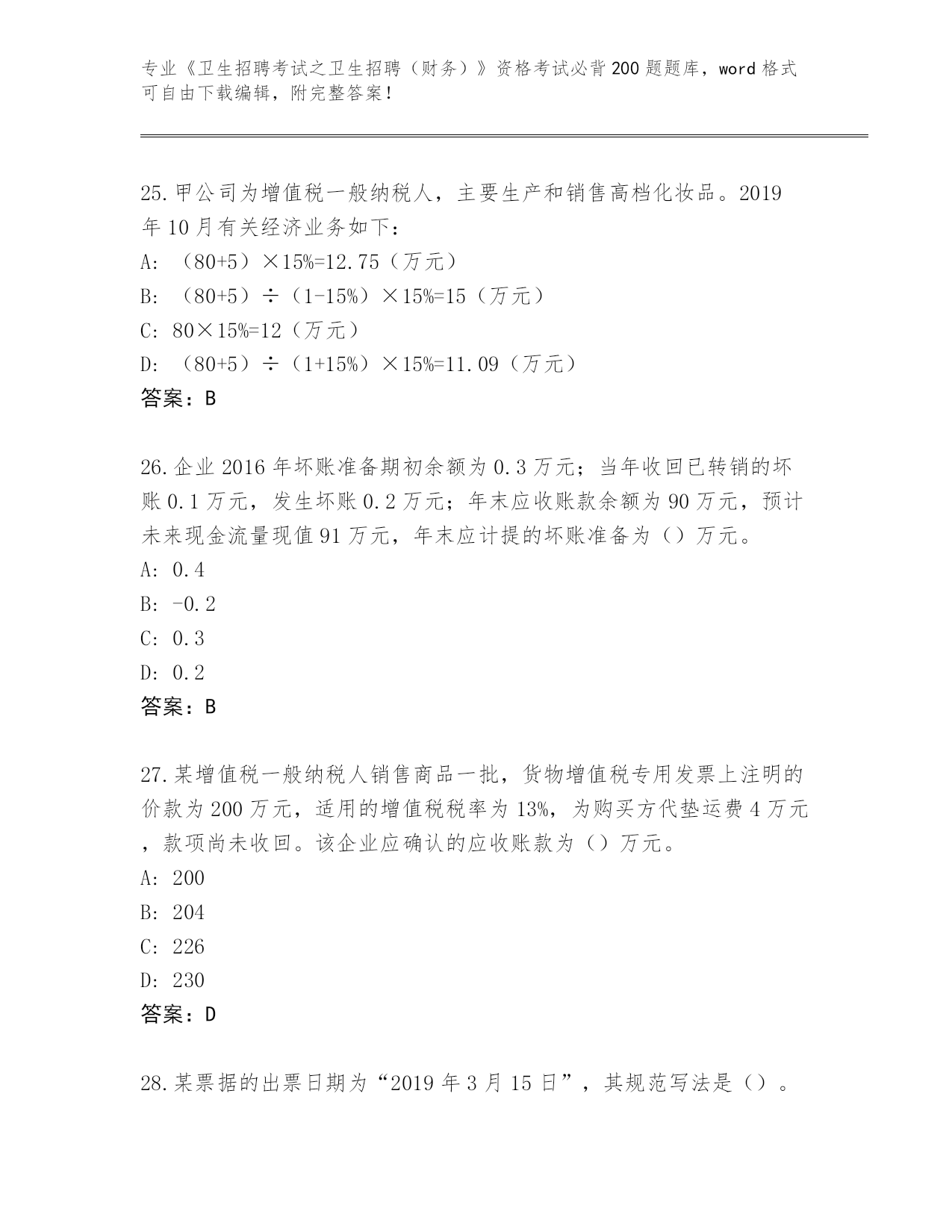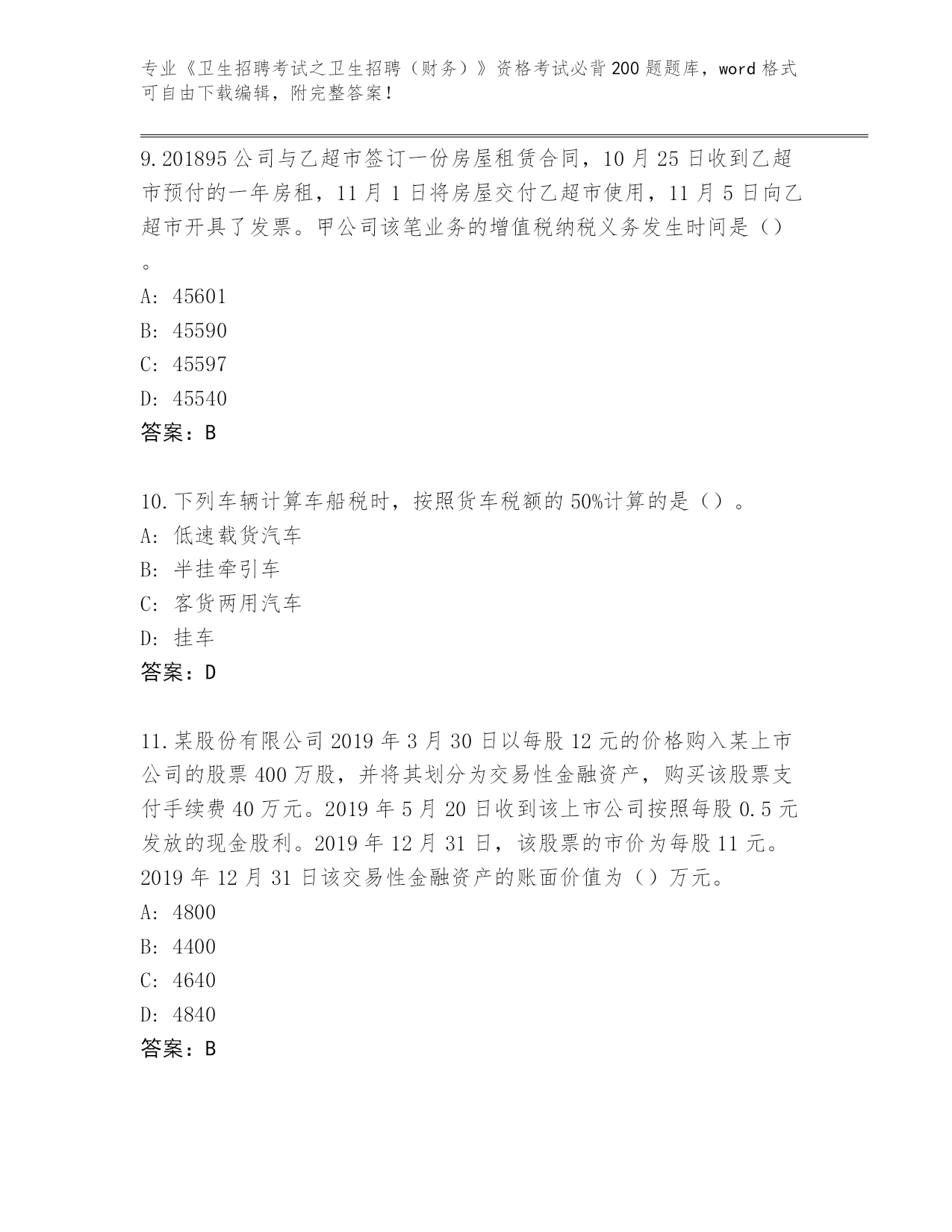 河南省《卫生招聘考试之卫生招聘(财务)》资格考试必刷200题大全含答案(研优卷)