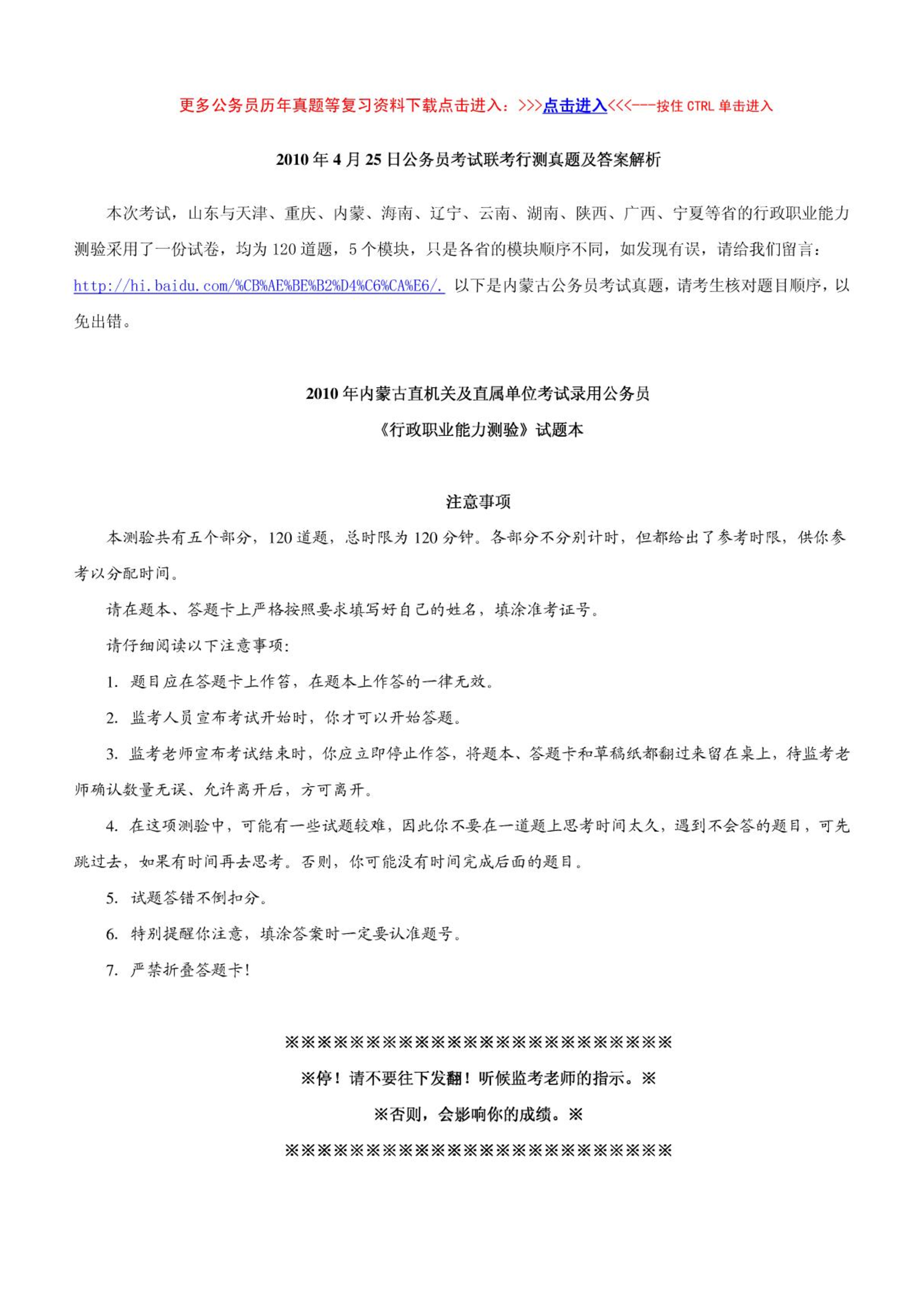 2010年内蒙古公务员考试行测真题及解析.pdf