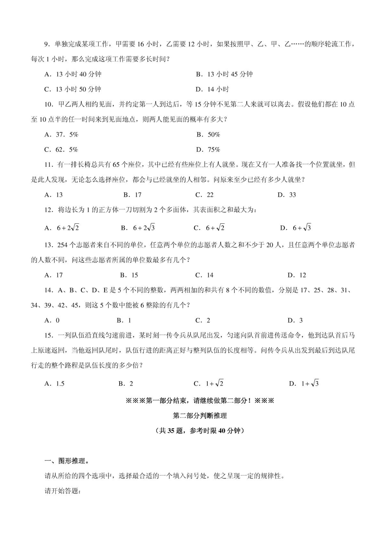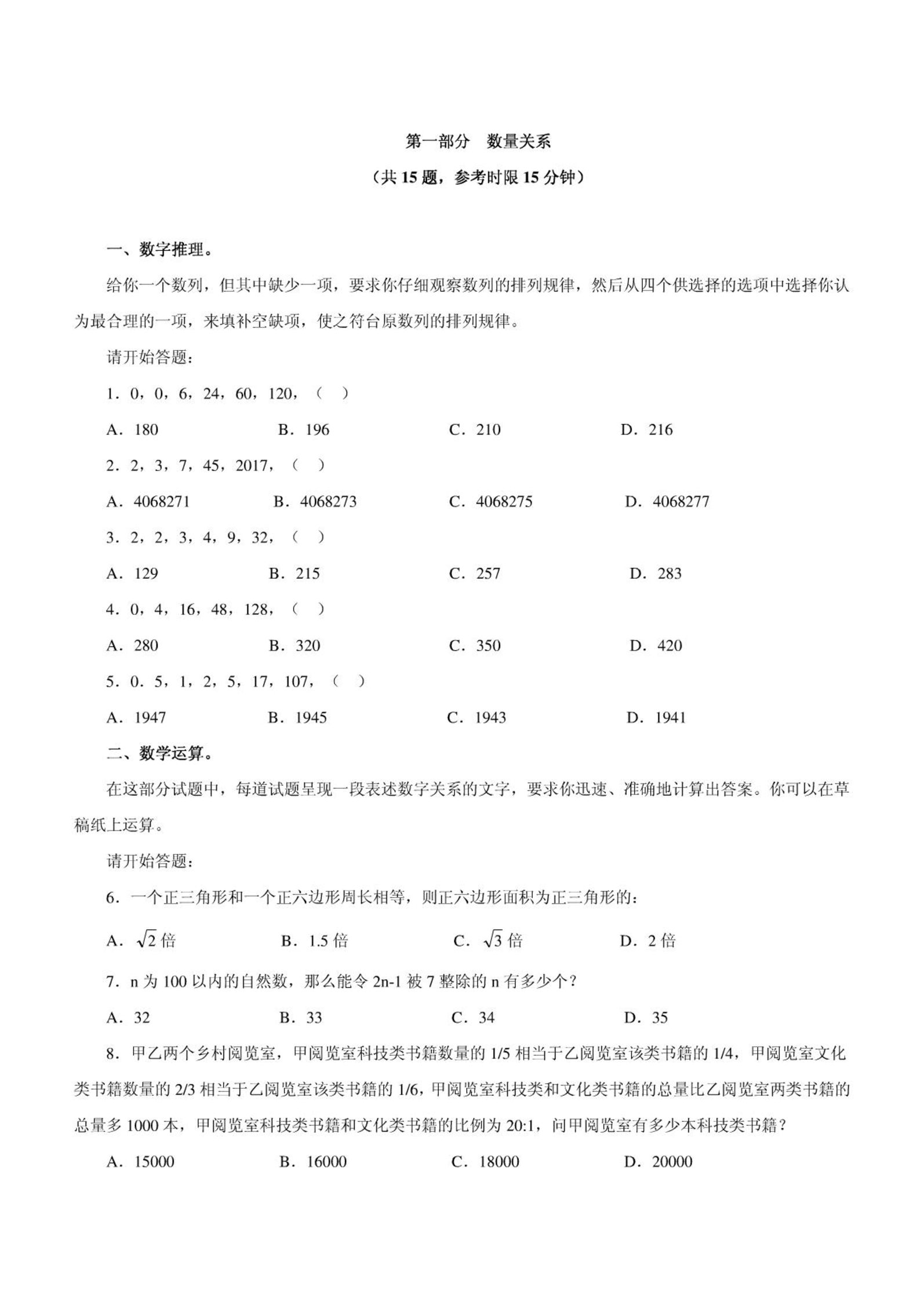 2010年内蒙古公务员考试行测真题及解析