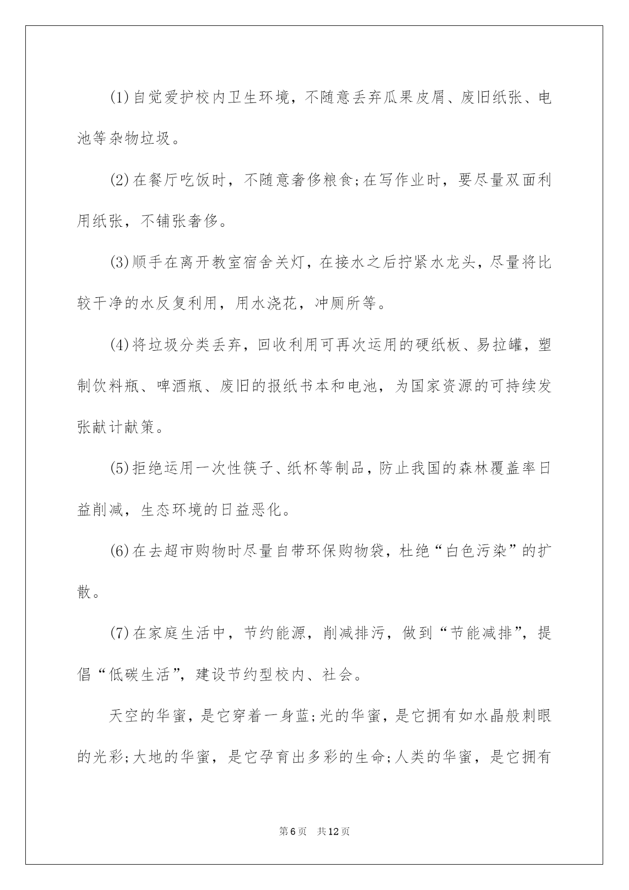 第PAGE\*Arabic\*MERGEFORMAT12页共NUMPAGES\*Arabic\*MERGEFORMAT12页第PAGE\*MERGEFORMAT12页共NUMPAGES\*MERGEFORMAT12页第PAGE\*MERGEFORMAT12页共NUMPAGES\*MERGEFORMAT12页第PAGE\*MERGEFORMAT12页共NUMPAGES\*MERGEFORMAT12页第PAGE\*MERGEFORMAT12页共NUMPAGES\*MERGEFORMAT12页第PAGE\*MERGEFORMAT12页共NUMPAGES\*MERGEFORMAT12页第PAGE\*MERGEFORMAT12页共NUMPAGES\*MERGEFORMAT12页第PAGE\*MERGEFORMAT12页共NUMPAGES\*MERGEFORMAT12页第PAGE\*MERGEFORMAT12页共NUMPAGES\*MERGEFORMAT12页第PAGE\*MERGEFORMAT12页共NUMPAGES\*MERGEFORMAT12页第PAGE\*MERGEFORMAT12页共NUMPAGES\*MERGEFORMAT12页2022节能环保主题演讲稿节能环保主题演讲稿演讲稿特殊注意结构清晰,层次简明。在充溢活力,日益开放的今日,须要运用演讲稿的场合越来越多,那么,怎么去写演讲稿呢?下面是我为大家收集的节能环保主题演讲稿,仅供参考,欢迎大家阅读。节能环保主题演讲稿1同学们:大家好!你知道全国每天节约一张纸,一年可以节约多少张纸吗?4745亿张纸。一年就可以少砍伐158.1666万棵树。“158.1666万”这个天文数字多么惊人啊!从这个意义上来说,节约用纸,也就是制造森林。汽车也是破坏环保的一大罪人:它每天排放的尾气中,含有大量的二氧化碳,会使地球产生“温室效应”:气温慢慢变暖,冰川慢慢溶化,海平面缓缓上升,陆地面积也随之渐渐削减。预料,到20xx年,中国有48个城市,9.2万平方公里的土地,将受到沉没的威逼。在我们的四周,还有很多很多的不环保现象不断发生因此爱护环境刻不待时。那么,我们现在应当怎么爱护自然呢?让我来告知你吧。用纸时,一面用完不要扔掉,背面还可以用来打草稿。做了草稿纸以后,还可以用来折纸。即使是废纸,也还能送到造纸厂循环利用。开车也一样,少开一天汽车,多骑一天自行车,这样既能使空气更清爽,又能使我们的身体得到了熬炼。塑料袋的焚烧会产生许多的毒气,污染了大气,而且不简单降解,会破坏我们的土地。所以我们要尽量运用环保袋,不运用塑料袋。同时我们也要节约用水,节约用电等等同学们,再小的力气也是一种支持,从我做起,从点点滴滴做起,一根筷子易折断,那三根、五根呢?环保也一样,光靠一个人的力气是不够的,要大家一起讲究环保,我们的家园才会更漂亮!节能环保主题演讲稿2敬重的领导老师们,敬爱的同学们:大家早上好!今日我演讲的题目是:《节能环保,一点一滴》。谁不希望祖国的天空湛蓝如镜,谁不希望脚下的大地绿草如茵,谁不希望身边的湖水澄澈明净。是啊,谁不希望能有如此自然的一幅画面呢?环保这个问题已经深化人心,全世界都在呼吁环保。中国经济的快速发展,加上所拥有的世界上最浩大的消费人口,中国目前已经成为世界其次大能源消费国。能源消费巨增干脆导致能源生产快速增长,由此带来的环境污染也日益严峻。能源建设规模日趋浩大,电力投资热、煤炭投资热等热潮不断。尽管如此,中国仍旧存在能源短缺。……一方面能源需求巨大,而资源并非取之不尽、用之不竭,另一方面环境的污染迫使我们走节约环保的道路,大幅度提高能源利用效率,加快环保工程是大力推动生态文明建设的必经之路。其实,对于我们来说,节能环保并不难,下面几点是我的一些个人体会与大家共享。一、节约每一度电、每一滴水、每一张纸,发觉他人有奢侈行为时刚好规劝。杜绝长明灯,顺手关灯,做到人走灯熄,并能充分利用自然光照明。防止长流水,顺手关紧水龙头,做到人离水断,提倡一水多用。节约用纸,提倡纸张的回收循环利用。二、日常生活中,提倡乘坐公共交通工具或骑车、步行,将“我节能我环保、我健身我欢乐”的理念深化人心。三、削减一次性用品的运用,如签字笔、纸巾、纸杯等。提倡运用钢笔和可更换笔芯的圆珠笔和签字笔,自带毛巾、杯具等。四、养成良好的`生活、卫生习惯。不随地吐痰,不乱扔废弃电池,做好废旧纸张分类存放与处理,将生态环保的理念贯穿到日常学习和生活的方方面面。节能环保,一点一滴,节能是一种时尚,环保是一种义务,从自己做起,从身边的小事做起,爱护环境,还世界一片绿水蓝天。同学们,
