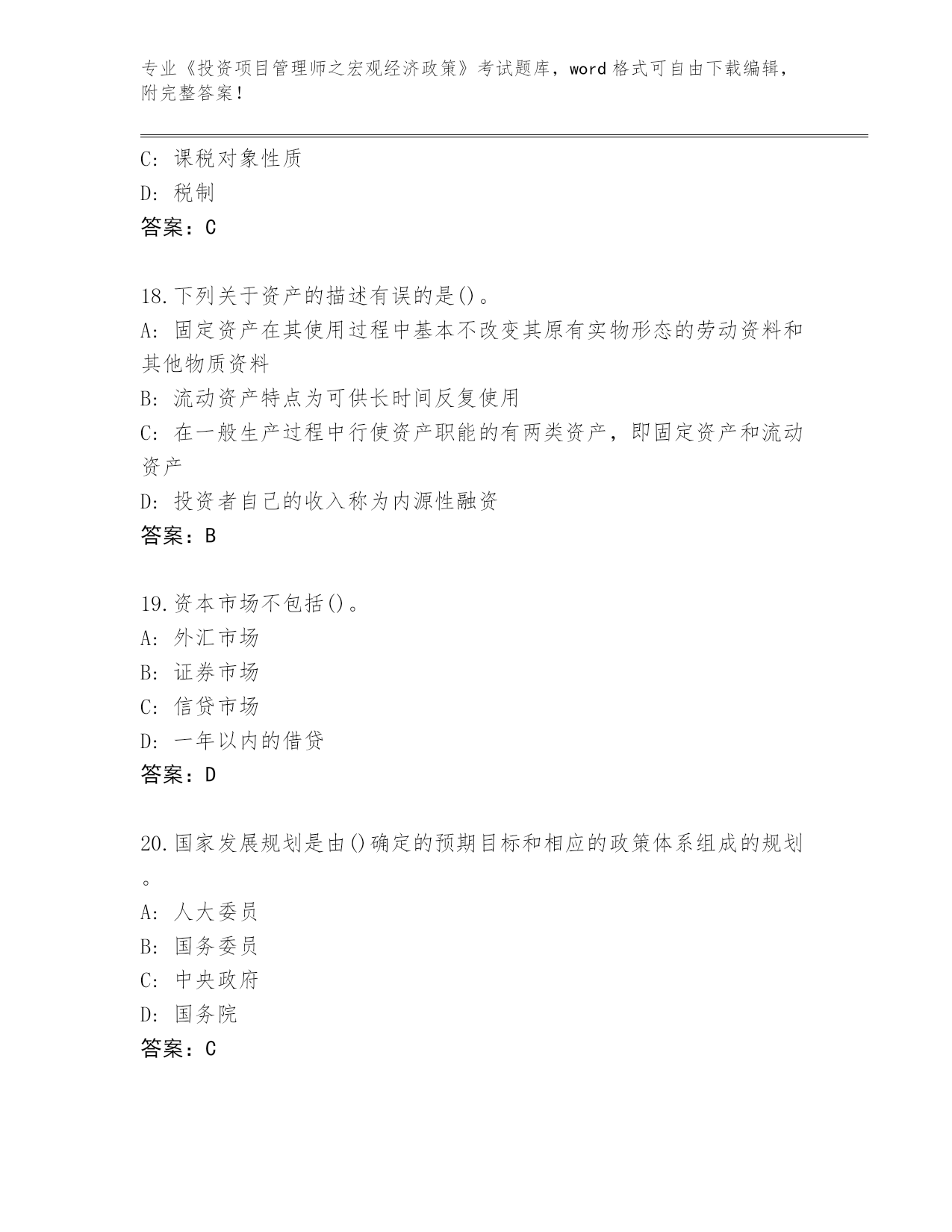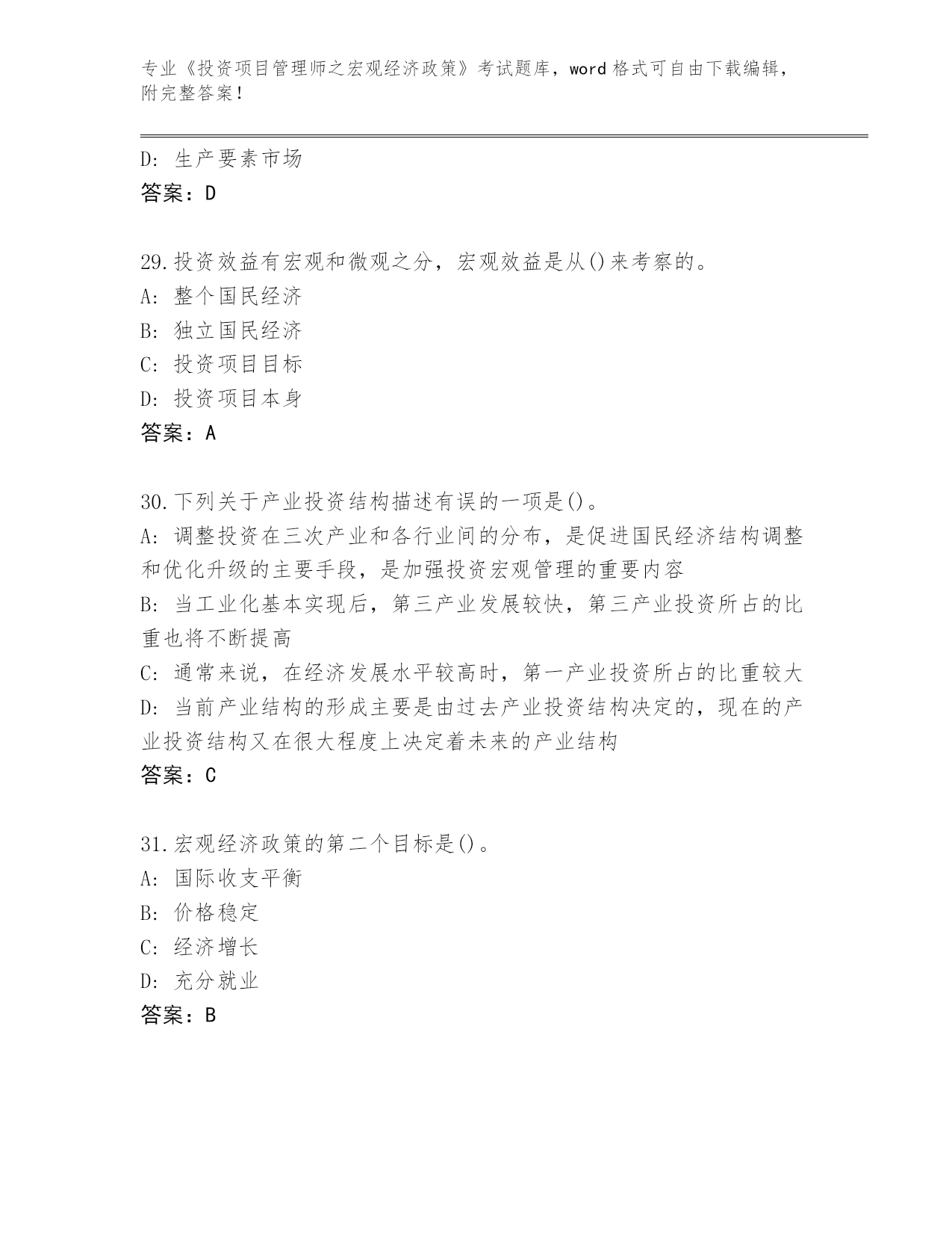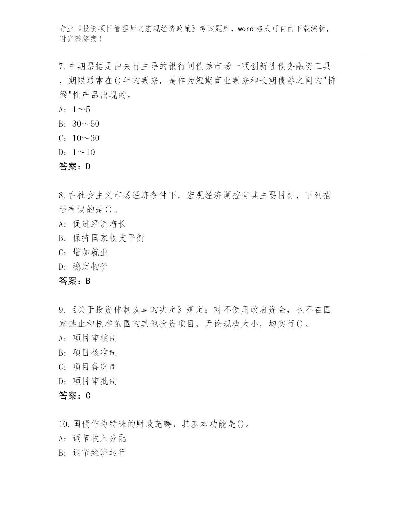 河南省《投资项目管理师之宏观经济政策》考试必刷200题通关秘籍题库附答案(名师推荐)