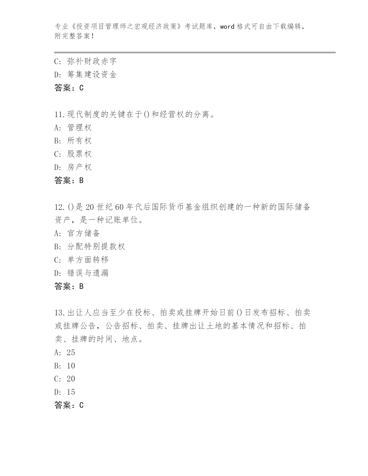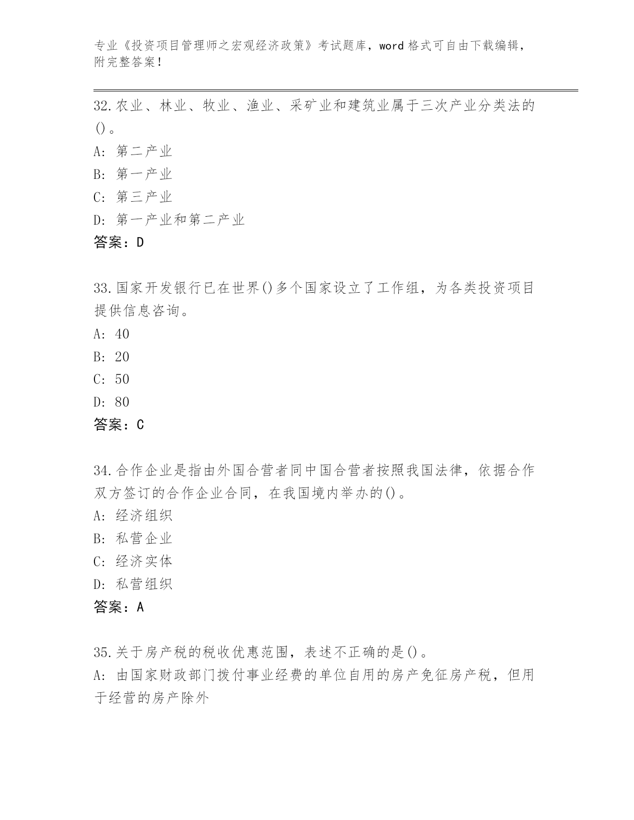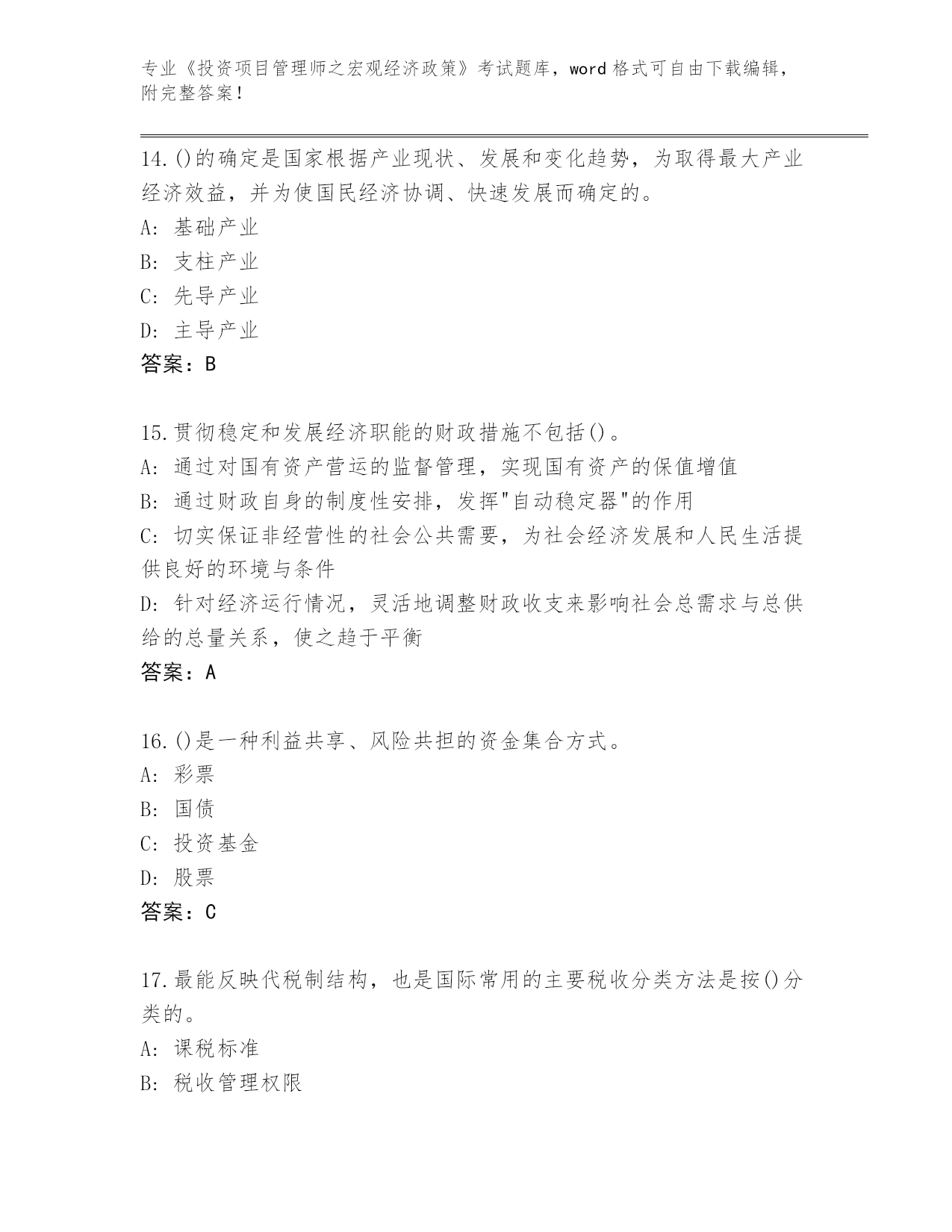 河南省《投资项目管理师之宏观经济政策》考试必刷200题通关秘籍题库附答案(名师推荐)