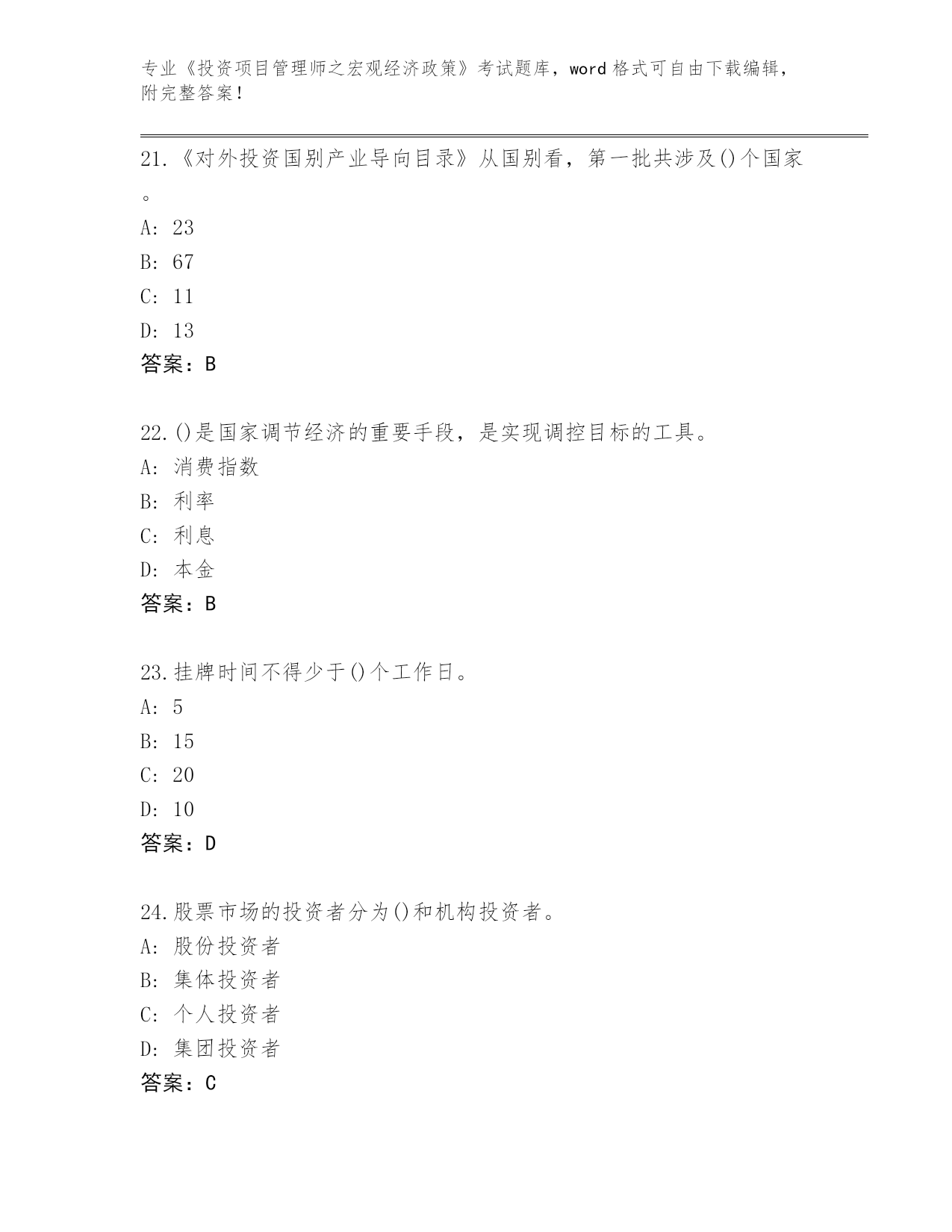 河南省郏县2023-2024年《投资项目管理师之宏观经济政策》考试通关秘籍题库(名师推荐)