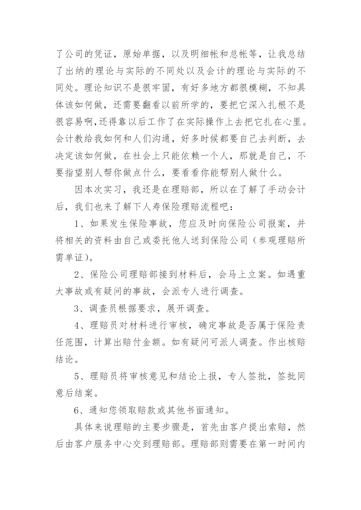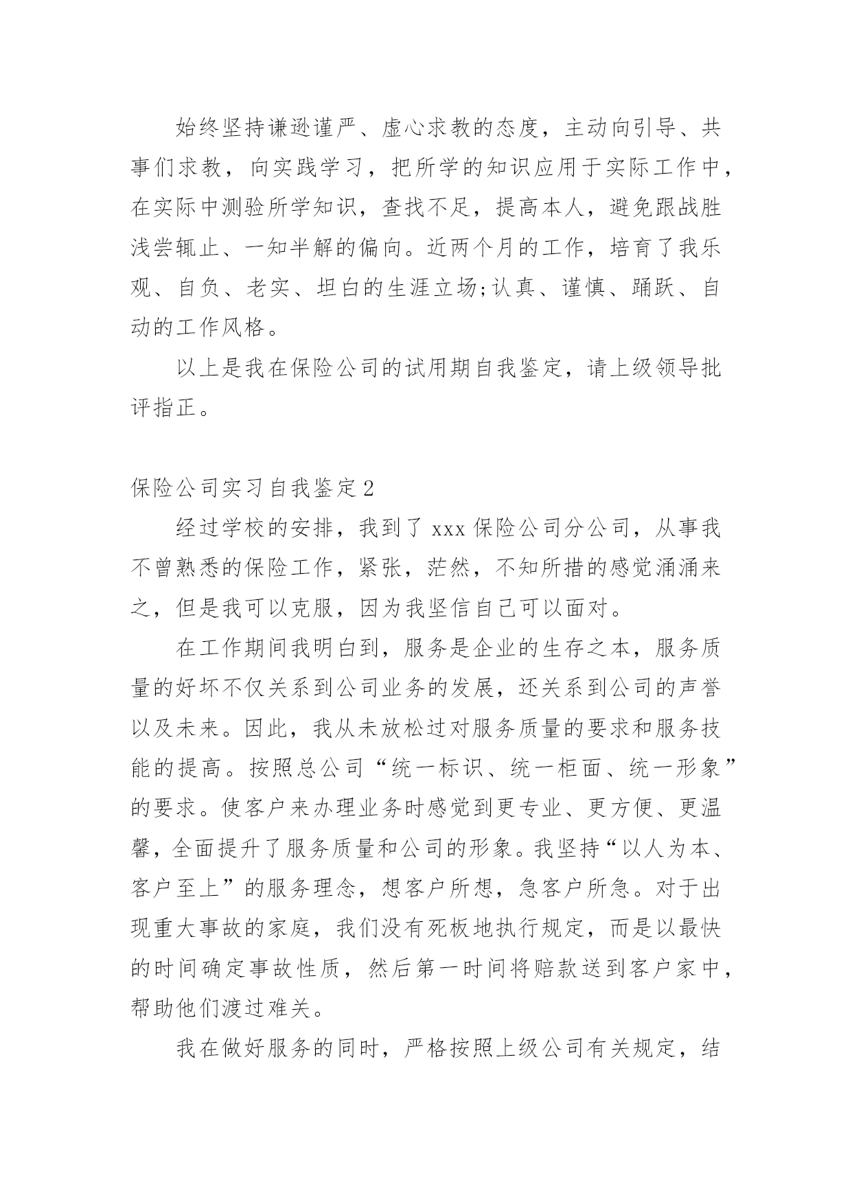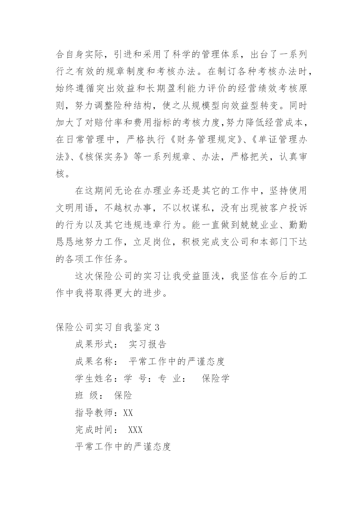 保险公司实习自我鉴定自我鉴定是一个人在某个阶段的学习和工作生活等表现的一个自我总结,自我鉴定可以总结以往思想,发扬成绩,因此好好准备一份自我鉴定吧。自我鉴定怎么写才能发挥它的作用呢?下面是小编为大家收集的保险公司实习自我鉴定,希望能够帮助到大家。保险公司实习自我鉴定1转瞬间2个月试用期已濒临序幕,首先感激公司能给我展现才干、实现本身价值的机遇。我于20xx年11月3日成为公司的试用员工,现将我的工作及学习生活情形作如下汇报。在工作期间我明白到,服务是企业的生存之本,服务质量的好坏不仅关系到公司业务的发展,还关系到公司的声誉以及未来。因此,我从未放松过对服务质量的要求和服务技能的提高。按照总公司“统一标识、统一柜面、统一形象”的要求。使客户来办理业务时感觉到更专业、更方便、更温馨,全面提升了服务质量和公司的形象。我坚持“以人为本、客户至上”的服务理念,想客户所想,急客户所急。对于出现重大事故的家庭,我们没有死板地执行规定,而是以最快的时间确定事故性质,然后第一时间将赔款送到客户家中,帮助他们渡过难关。我在做好服务的同时,严格按照上级公司有关规定,结合自身实际,引进和采用了科学的管理体系,出台了一系列行之有效的规章制度和考核办法。在制订各种考核办法时,始终遵循突出效益和长期盈利能力评价的经营绩效考核原则,努力调整险种结构,使之从规模型向效益型转变。同时加大了对赔付率和费用指标的考核力度,努力降低经营成本,在日常管理中,严格执行《财务管理规定》、《单证管理办法》、《核保实务》等一系列规章、办法,严格把关,认真审核。在这期间无论在办理业务还是其它的工作中,坚持使用文明用语,不越权办事,没有出现被客户投诉的行为以及其它违规违章行为。能一直做到兢兢业业、勤勤恳恳地努力工作,立足岗位,积极完成支公司和本部门下达的各项工作任务。在本部门的工作中,我始终严格请求自己严以律已,拾遗补漏,一直地发明问题,解决问题,总结起因,积聚教训,从而完美和晋升公司的治理机制,能认真履行保密制度,认真及时做好领导安排的每一项任务,同时主动为领导分忧,辅助同事做一些自己力不胜任的事件。进公司以来,自己尊重领导,与同事关联融洽,在较短的时间内适应了公司的工作环境。为尽快进入工作角色,我自发当真学习本公司、本部分、本岗位的各项轨制、规矩,严格依照公司里制订的工作制度发展工作。并应用业余时光进行自学实践常识,业务水温和理论素养都有所进步。工作中我始终坚持谦逊谨严、虚心求教的态度,主动向引导、共事们求教,向实践学习,把所学的知识应用于实际工作中,在实际中测验所学知识,查找不足,提高本人,避免跟战胜浅尝辄止、一知半解的偏向。近两个月的工作,培育了我乐观、自负、老实、坦白的生涯立场;认真、谨慎、踊跃、自动的工作风格。以上是我在保险公司的试用期自我鉴定,请上级领导批评指正。保险公司实习自我鉴定2经过学校的安排,我到了xxx保险公司分公司,从事我不曾熟悉的保险工作,紧张,茫然,不知所措的感觉涌涌来之,但是我可以克服,因为我坚信自己可以面对。在工作期间我明白到,服务是企业的生存之本,服务质量的好坏不仅关系到公司业务的发展,还关系到公司的声誉以及未来。因此,我从未放松过对服务质量的要求和服务技能的提高。按照总公司“统一标识、统一柜面、统一形象”的要求。使客户来办理业务时感觉到更专业、更方便、更温馨,全面提升了服务质量和公司的形象。我坚持“以人为本、客户至上”的服务理念,想客户所想,急客户所急。对于出现重大事故的家庭,我们没有死板地执行规定,而是以最快的时间确定事故性质,然后第一时间将赔款送到客户家中,帮助他们渡过难关。我在做好服务的同时,严格按照上级公司有关规定,结合自身实际,引进和采用了科学的管理体系,出台了一系列行之有效的规章制度和考核办法。在制订各种考核办法时,始终遵循突出效益和长期盈利能力评价的经营绩效考核原则,努力调整险种结构,使之从规模型向效益型转变。同时加大了对赔付率和费用指标的考核力度,努力降低经营成本,在日常管理中,严格执行《财务管理规定》、《单证管理办法》、《核保实务》等一系列规章、办法,严格把关,认真审核。在这期间无论在办理业务还是其它的工作中,坚持使用文明用语,不越权办事,不以权谋私,没有出现被客户投诉的行为以及其它违规违章行为。能一直做到兢兢业业、勤勤恳恳地努力工作,立足岗位,积极完成支公司和本部门下达的各项工作任务。这次保险公司的实习让我受益匪浅,我坚信在今后的工作中我将取得更大的进步。保险公司实习自我鉴定3成果形式:实习报告成果名称:平常工作中的严谨态度学生姓名:学号:专业:保险学班级:保险指导教师:XX完成时间:XXX平常工作中的严谨态度实践是检验真理的惟一标准。在课堂上,我们学习了很多理论知识,但是如果我们在实际当中不能灵活运用,那就等于没有学。