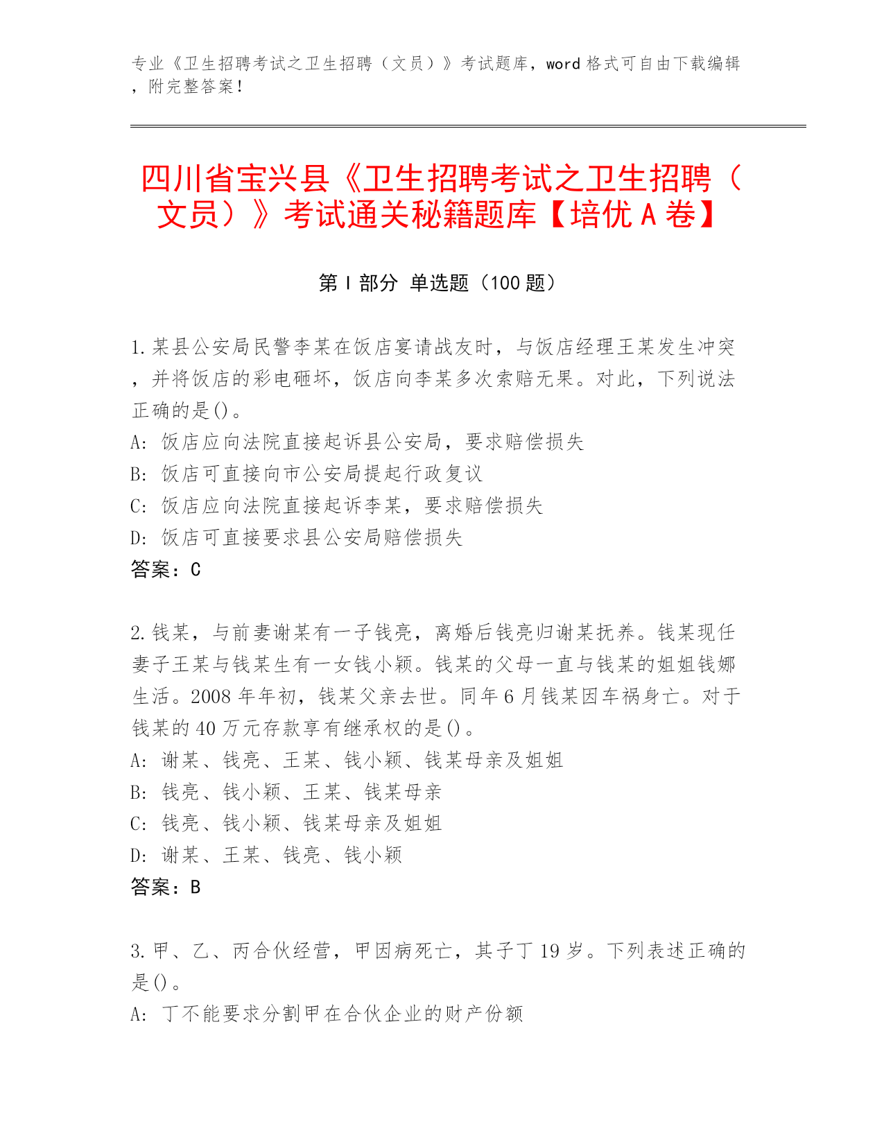 四川省宝兴县《卫生招聘考试之卫生招聘(文员)》考试通关秘籍题库【培优A卷】