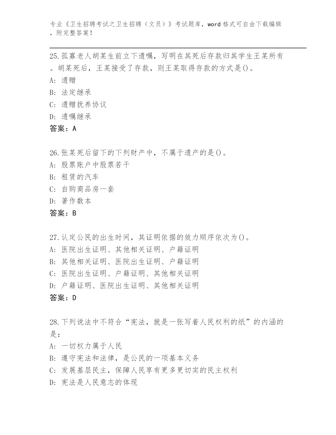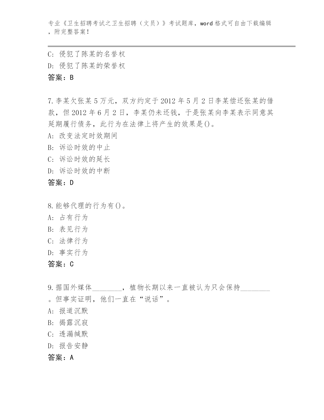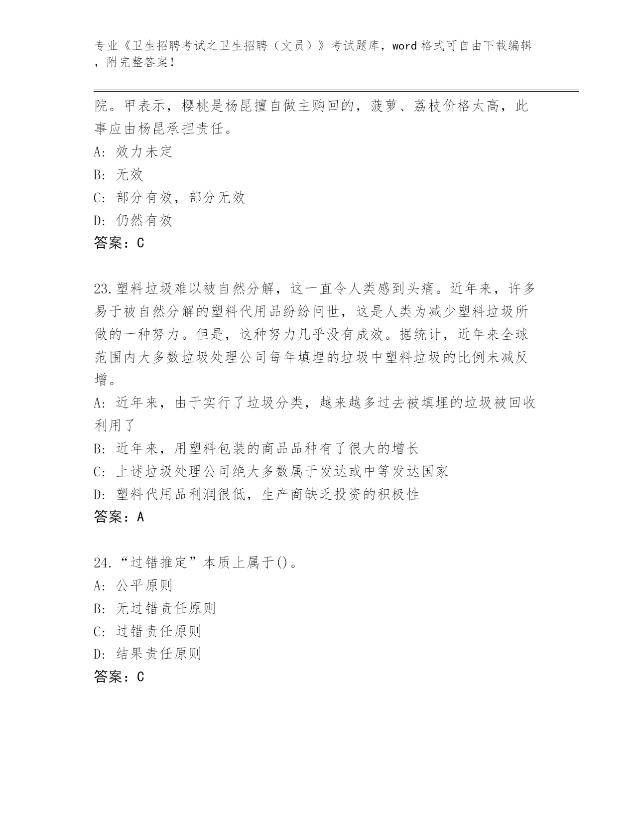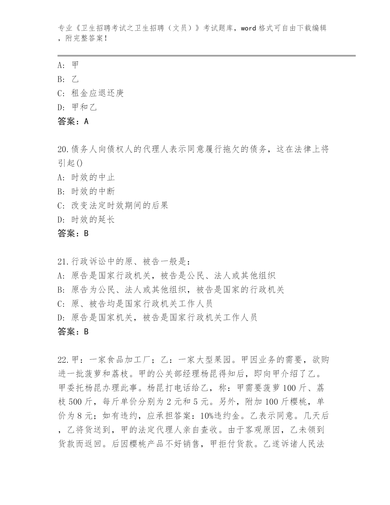 甘肃省2024《卫生招聘考试之卫生招聘(文员)》考试通关秘籍题库含答案(培优)