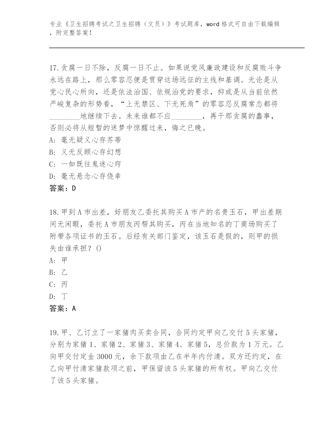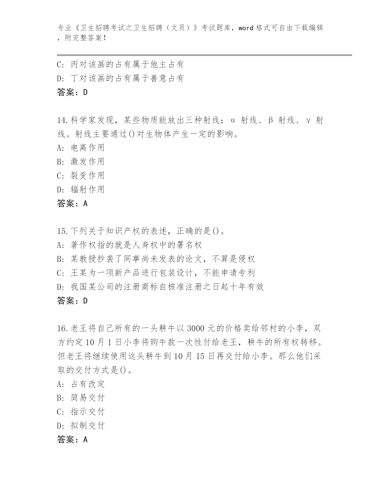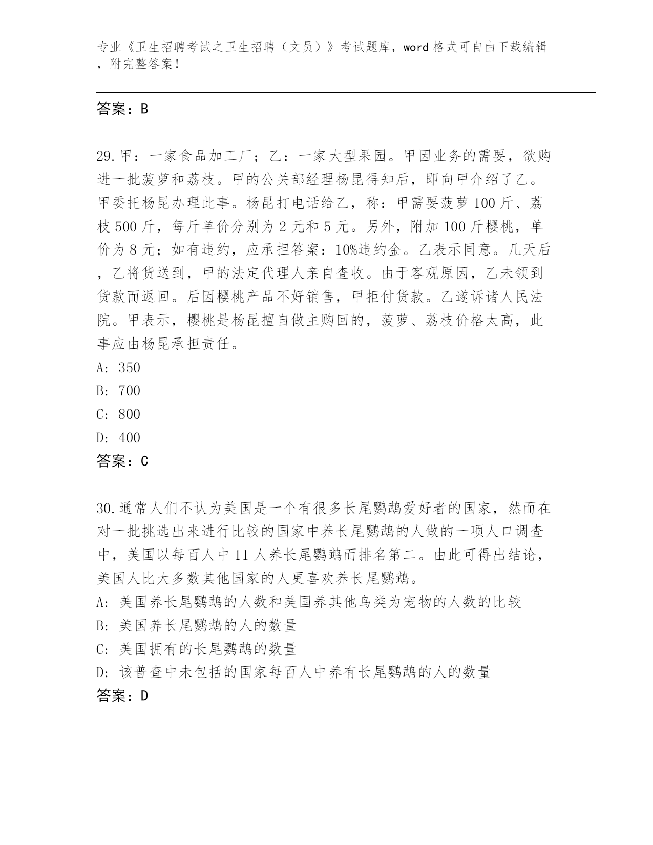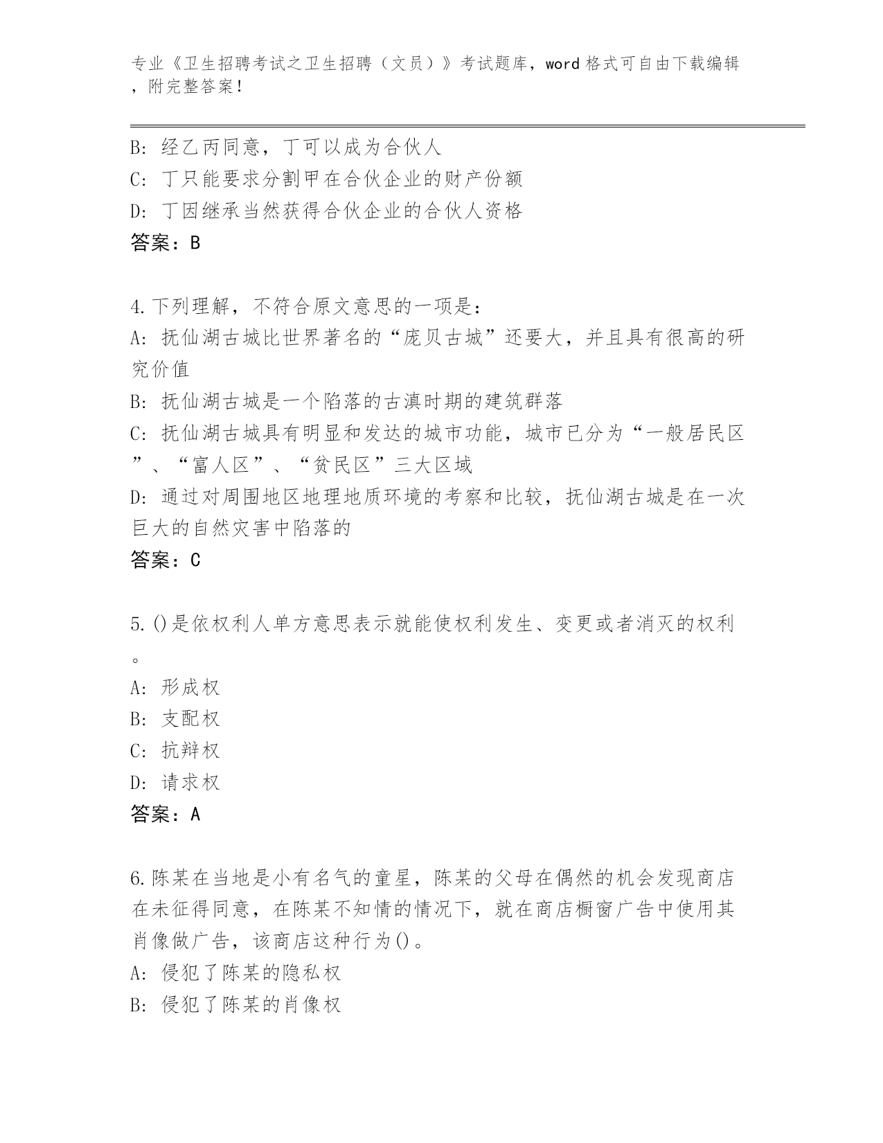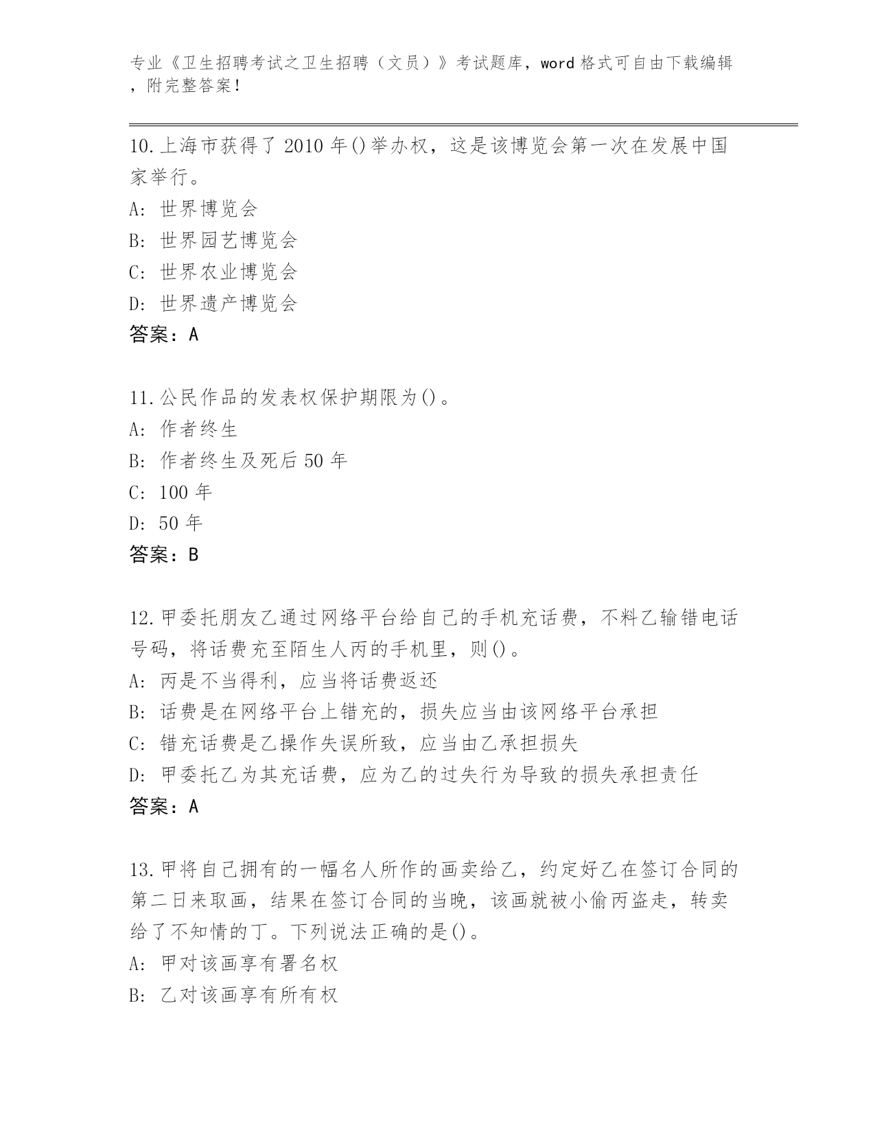 甘肃省2024《卫生招聘考试之卫生招聘(文员)》考试通关秘籍题库含答案(培优)