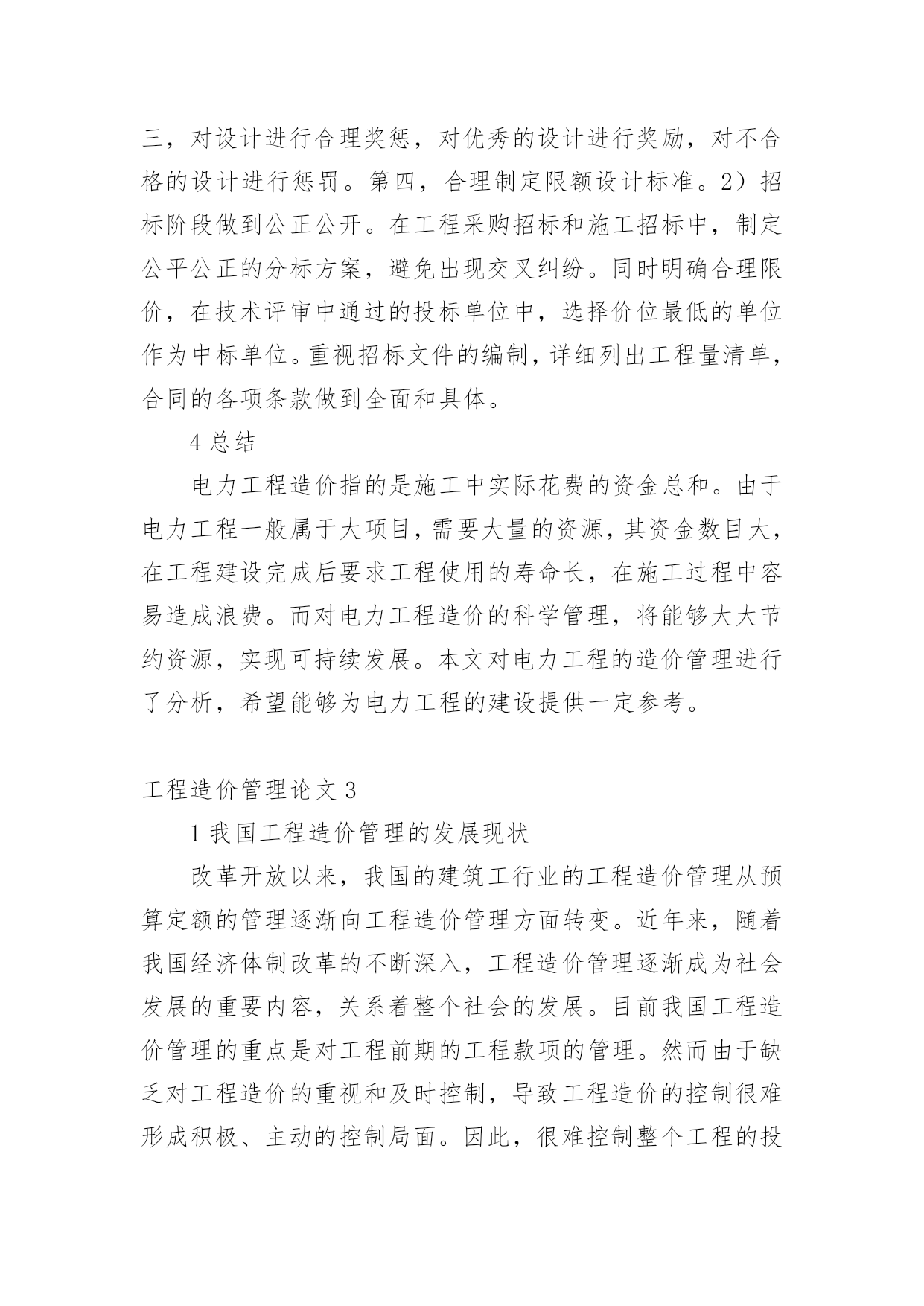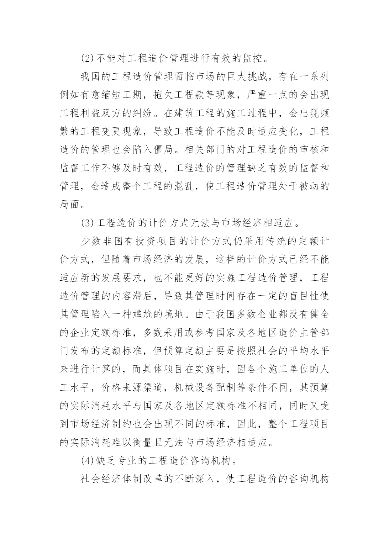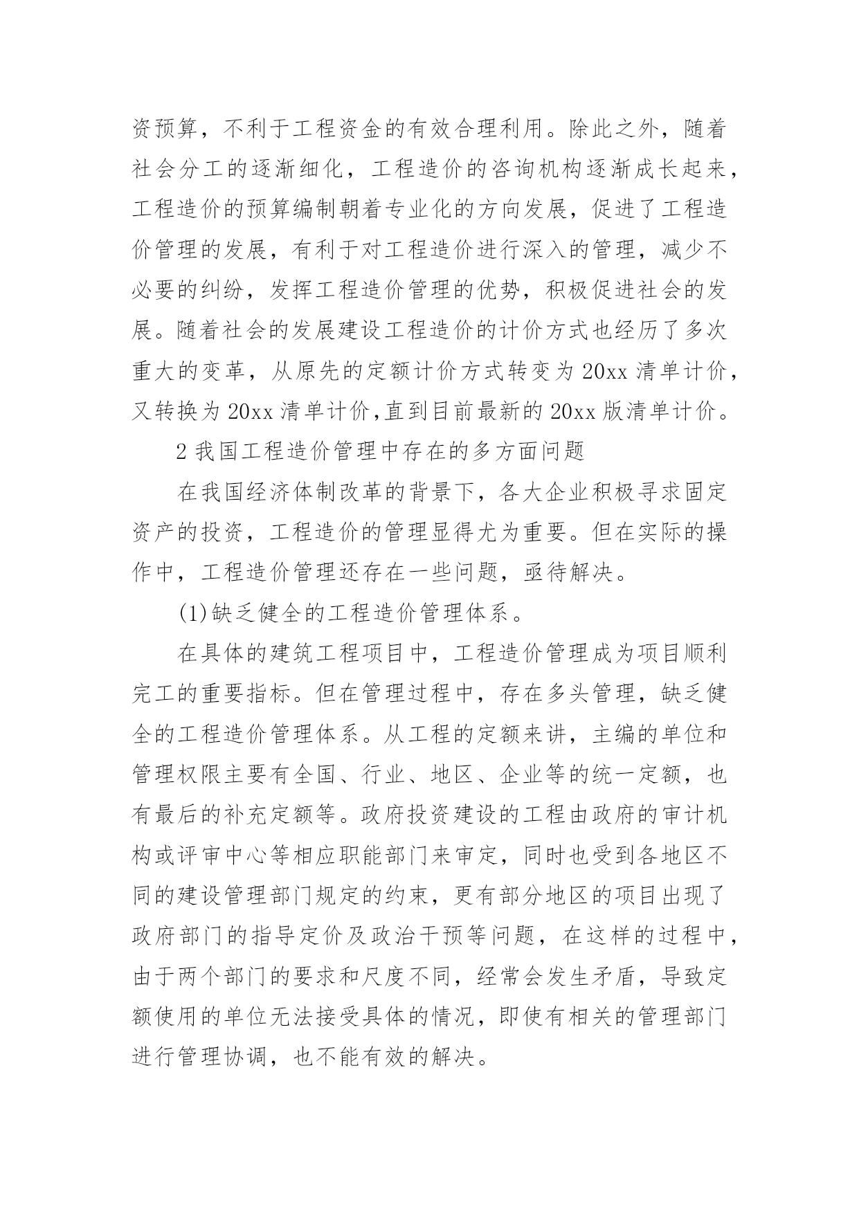工程造价管理论文在平平淡淡的日常中,大家都有写论文的经历,对论文很是熟悉吧,论文是探讨问题进行学术研究的一种手段。那么,怎么去写论文呢?以下是小编精心整理的工程造价管理论文,欢迎阅读与收藏。工程造价管理论文1一、建筑工程经济评估1.设计阶段的造价管理经济性评估在建筑项目工程设计活动开展前,应在着重维系系统工程经济效益的前提下,切实保证整体工程项目的完成质量。运用科学的施工模式,实现建筑资源的高效利用。在节省施工成本的基础上,创造最为可观的经济收入。简而言之,即在相同外部条件下,获取最好的施工质量,实现建筑技术的经济化发展。就目前情况来说,在建筑模式中制约经济增长的有机因子大体上包括:第一,阻断外界环境的干扰,开展自我调节机制,就建筑设计阶段的疏漏进行片面地自我修正;第二,在建筑设计阶段,单纯寻求创新与独特而无视建筑物的实质用途以及其相关经济效益;第三,在建筑人员的设计理念中,通常会出现忽视经济效益的情况,其仅仅从单一技术层面出发往往是不够的。就目前情况而言,我国很多建筑工程在实施过程中通常只会思考该项技术是否具有可操作性,而不考虑其所能带来的经济效益,从而使得整个工程项目架空。因此,只有将经济与技术有机结合,才能构建出最具工程效益的建筑项目。具体而言,设计人员应在进行造价管理的过程中,运用高新建筑的设计理念。通过最先进的科学技术,高效地促进经济与技术的相互作用,从而更好地实现技术资源的最大化利用。2.施工阶段的造价管理经济性评估在系统化的施工建设中,施工阶段的造价管理经济性评估是对整体工程体系的全面把握,是检测该项工程经济效益最有利的实施办法。就施工阶段的经济评估而言,应具体分析不同技术手段所带来的经济效益,总结出最具操作性的施工模式。通过经济与技术的综合研究,有效了解工程进度以及相应阶段的施工质量。在创造合理经济效益的基础上,维系系统工程的有序开展。总体上来说,项目施工阶段的经济评估具体包含了两方面的内容,即施工阶段实施方案的评估以及购置新型材料的评估。毫无疑问,施工阶段实施方案的设定是其整体工程设计的重中之重,是影响该项工程项目的关键性因素。以下,将针对施工经济评价主体内容进行分析。(1)施工技术经济评估即施工工艺评价,其具体是指针对于项目工程种类进行评析,例如对整体工程构架、基础设施、安装模式、混凝土浇筑机制等项目方案进行评析。就施工工艺而言,其实质内容是工程建筑中所选用的新科技。(2)施工实施方案经济评估即在施工阶段中有机地组织各个工程段构建系统施工的建筑模式,例如有关流水工程、水平工程交叉开展的施工模式,其具体施工组织方案大体包括了工程整体设计、单位工程的设计模式以及局部工程的设计模式。(3)购置新材料的经济评价在整体工程项目建设过程中,新能源、新材料的使用是其高质量建筑中不可或缺的关键性因素之一。不仅可以在一定程度上大大缩减工程周期,而且还能更加有效地实现工程建设中的自动化、机械化建筑模式。与此同时,对于现代化快节奏的生活来说,高新技术的采用可以更好地减小施工人员的劳动强度,优化施工环境,促进机械化的工程创作。针对新材料、新结构的评析而言,相关工程人员应着重核查工程中的造价管理。具体通过对工程材料的应用、施工周期的把握以及工程项目的系列投资金额进行系统化分析,从而得出最精准的造价数据,创造出最具经济效益的工程建筑。二、造价管理中项目经济性评价的意义建筑工程中的造价管理即利用科学的管理手段,在日常的项目建设中,为保证建筑工程获取较高的经济效益,可以有针对性的对整体工程费用进行综合计算。同时对全方位的工程项目建设进行一系列的规划,此类建筑活动被称之为造价管理活动。而建设项目中的经济性评价则指利用工程经济学原理,对设计项目中的经济成本所开展的调研、检测、核算、考察等进行系统的分析计算,有效地预测出该工程建设是否可以取得经济效益。如果评析合格,则可顺利地推进整体项目的启动。在实际工程建设中,只有积极地将项目经济评价融入造价管理工作中,才能更好地实现企业工程的经济建设。在造价管理中,其经济性评价起着极为重要的作用。就管理内容而言,其前提条件是必须有明晰的建设方案以及建筑制约机制。就整体的工程运作,一般是涉及于造价管理中的项目设计、施工规划以及最后的建筑运用等一体化施工过程。这类活动的开展是需要运用大量的人力、物力资源,同时其长期的发展模式对该地经济产生也会产生一定影响。以上因素都决定着建筑工程管理必须全面的开展经济评析,运用项目的经济性评价模式,针对不同建筑设计方案进行比较分析,得出最具经济效益的建筑策略。在造价管理中,合理的运用建筑经济性评价,可以在考察不同融资组合机制的基础上,及时提出有利于项目建设的方案,系统的研究企业财务盈亏情况。依据实际情况,为其提供科学数据信息。从而实现社会资源的合理配置,为企业运营项目构建预