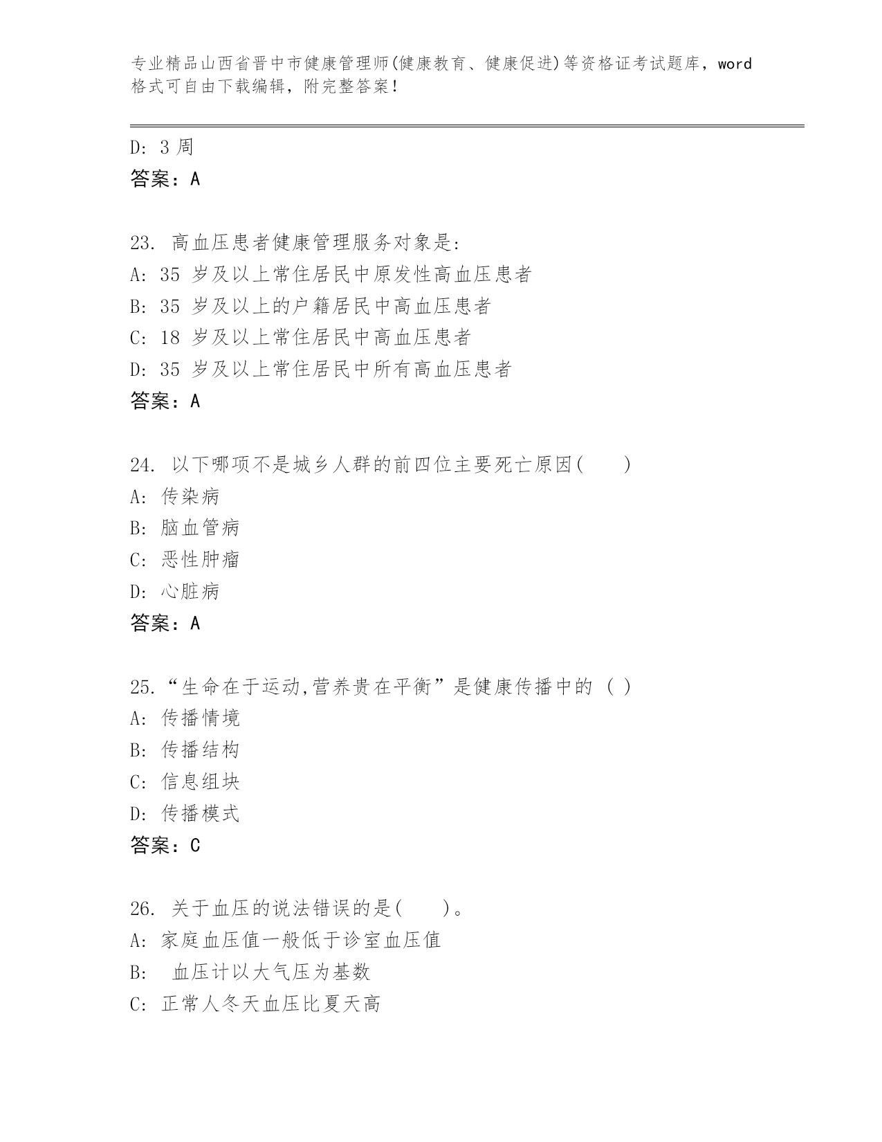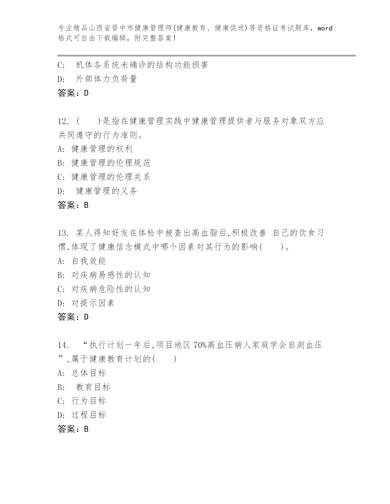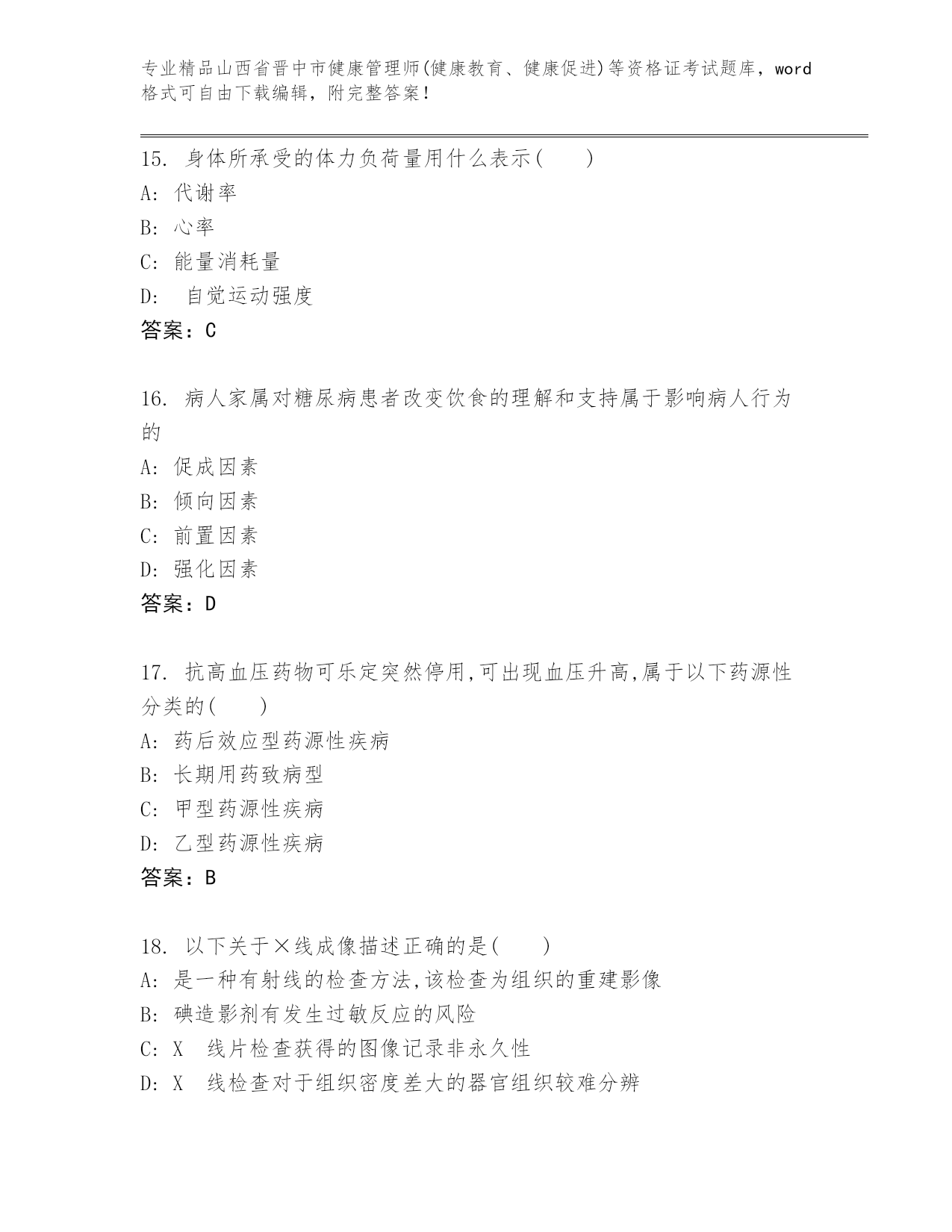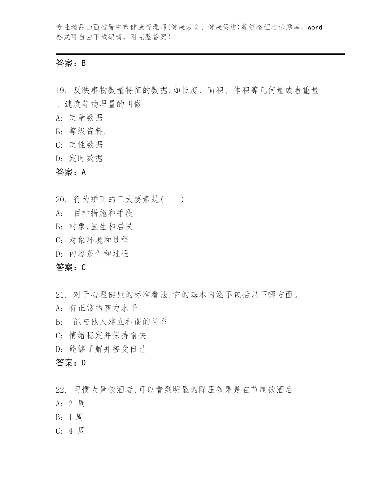 精编山西省晋中市健康管理师(健康教育、健康促进)等资格证考试(预热题)
