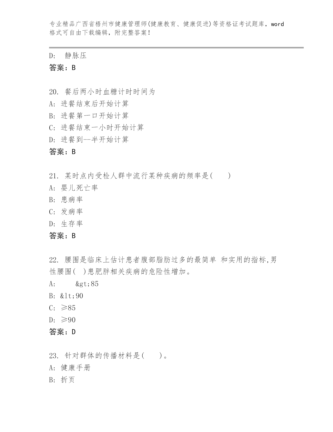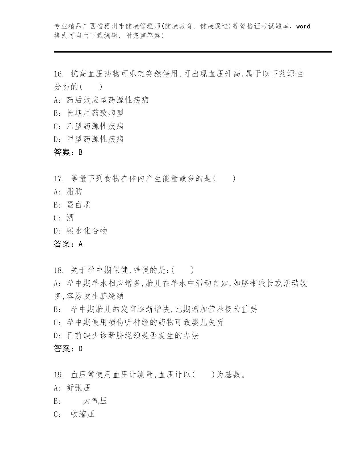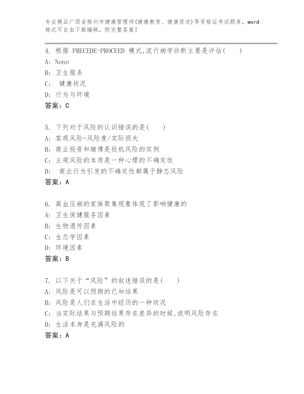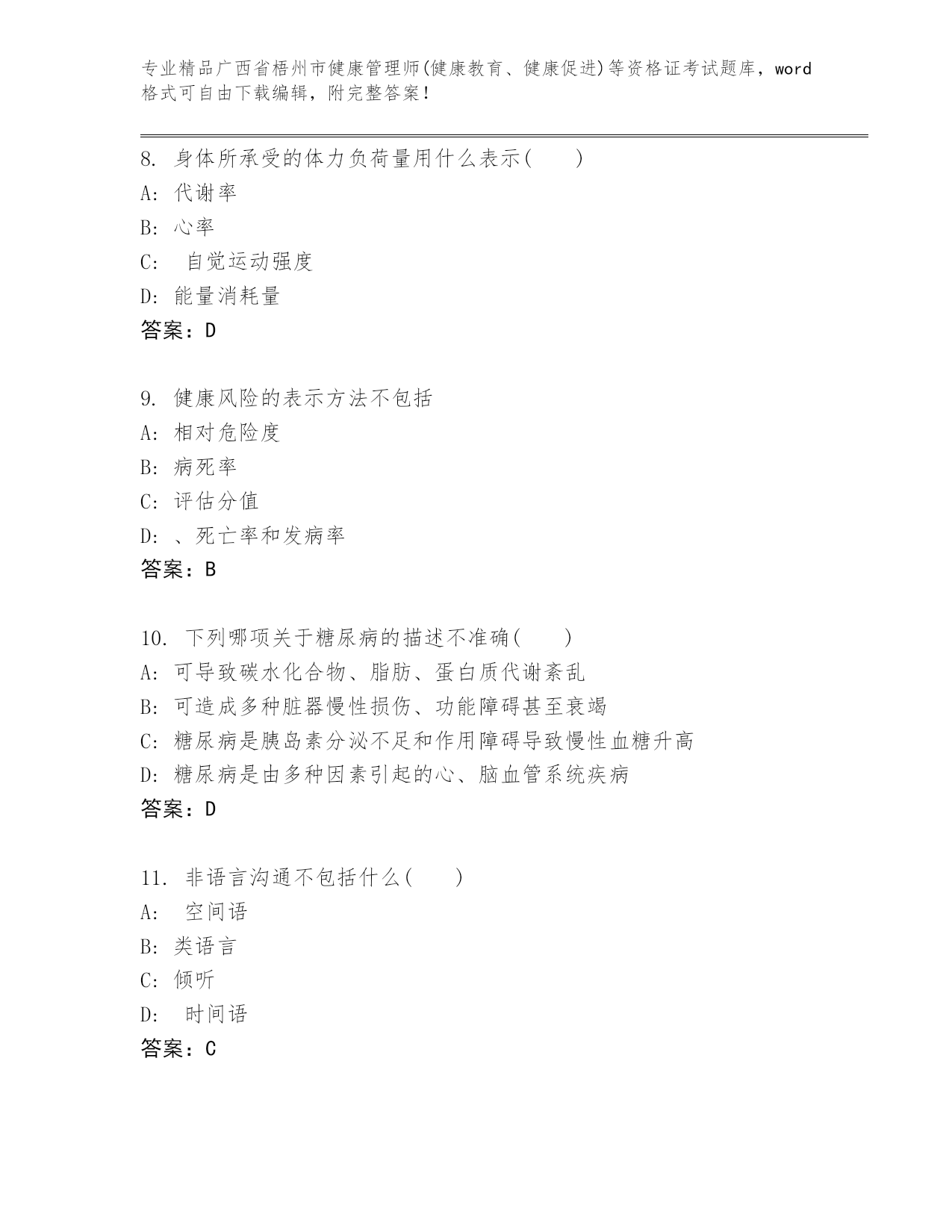 优选广西省梧州市健康管理师(健康教育、健康促进)等资格证考试及参考答案(A卷).docx