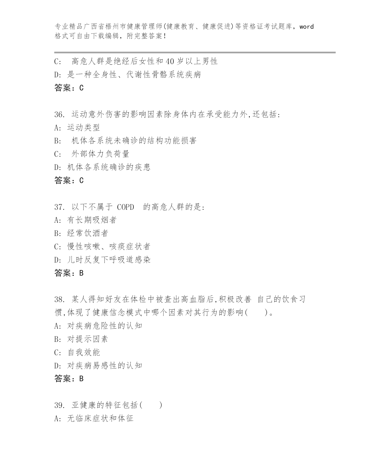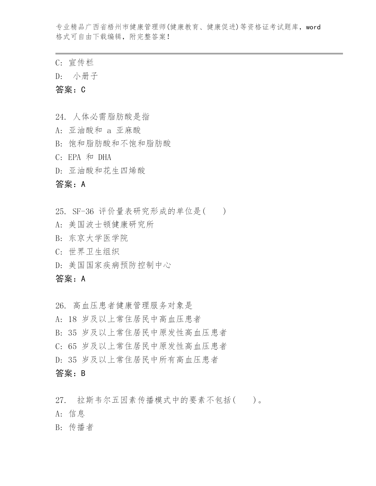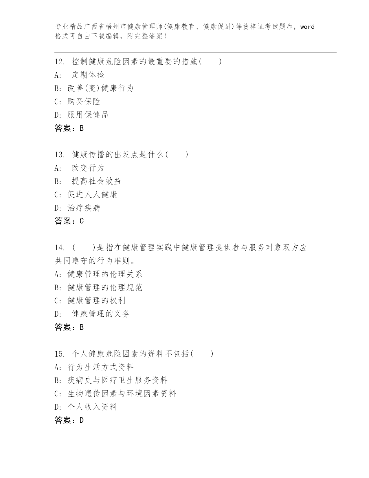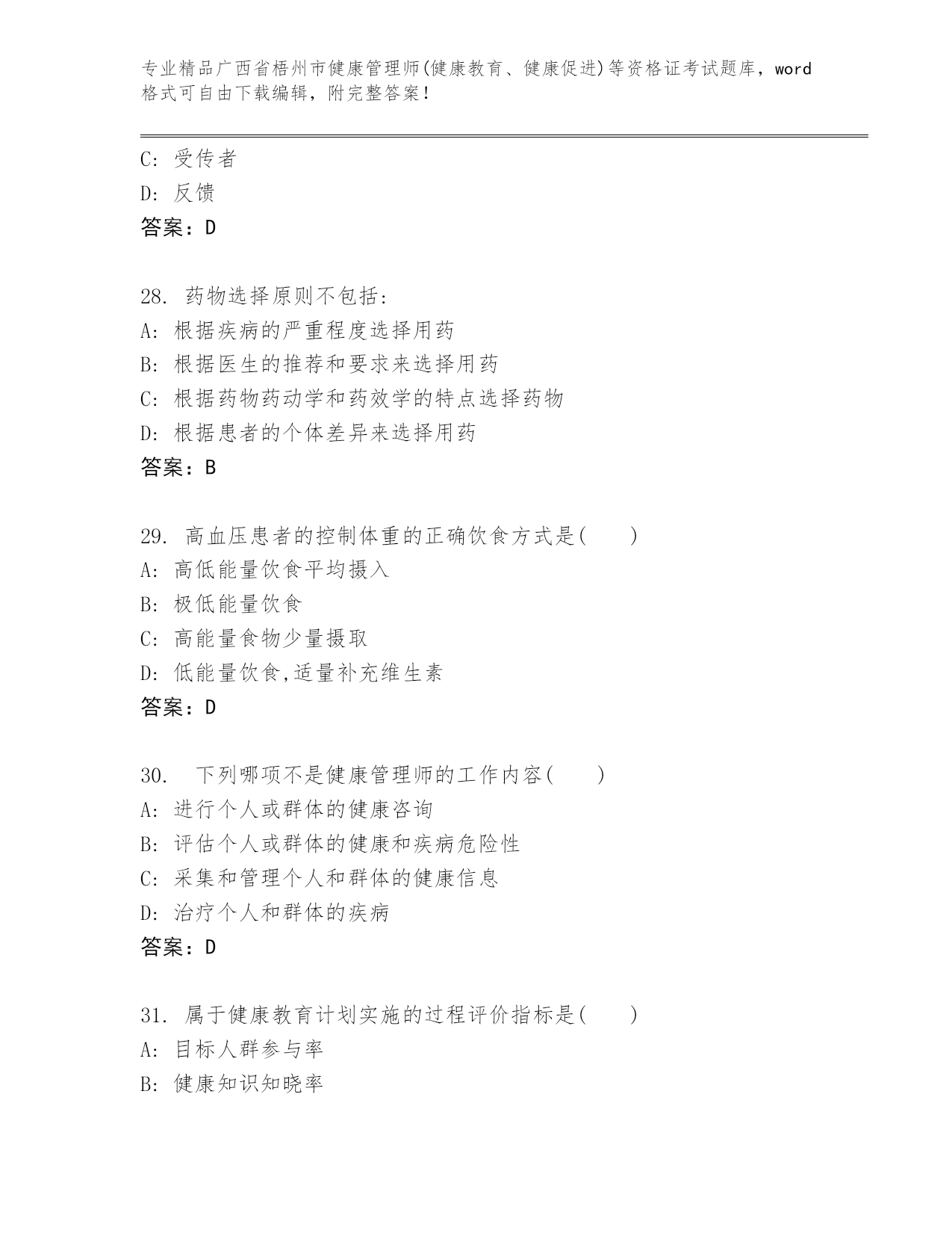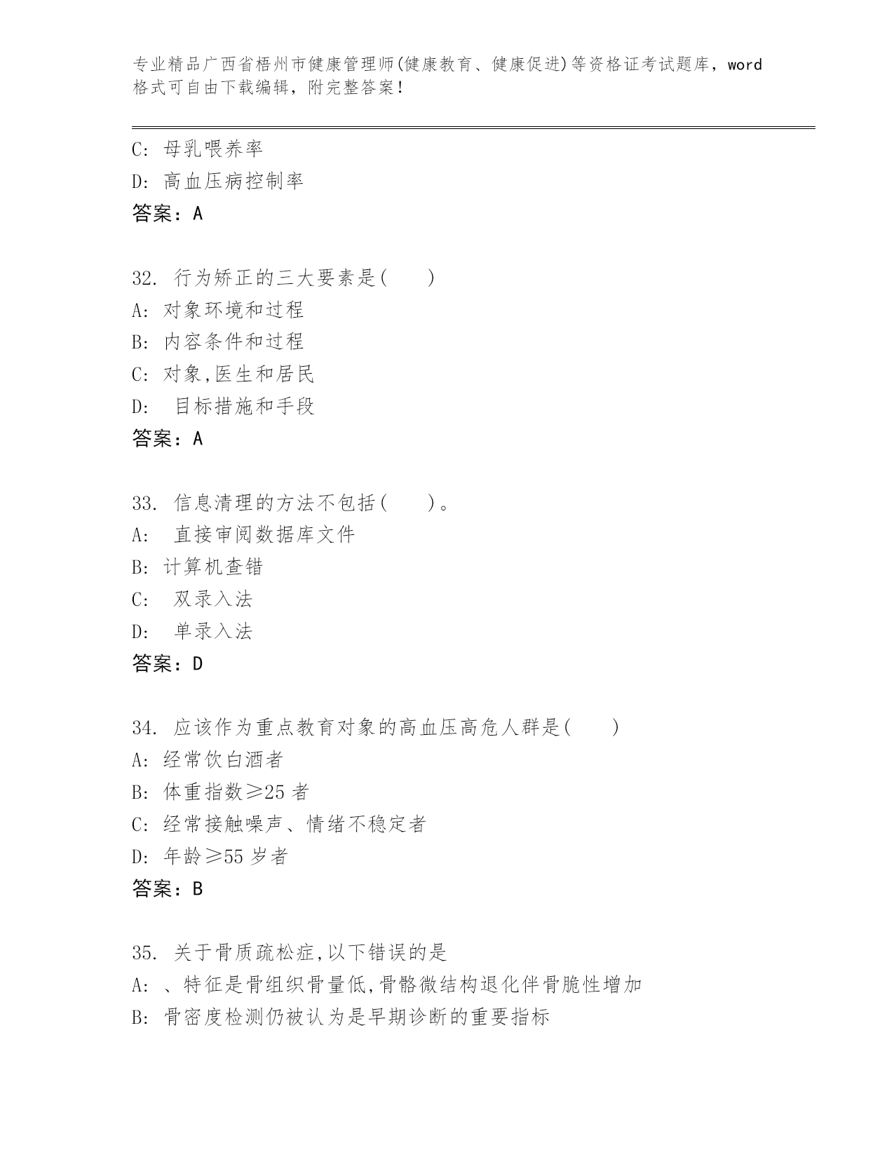 优选广西省梧州市健康管理师(健康教育、健康促进)等资格证考试及参考答案(A卷).docx