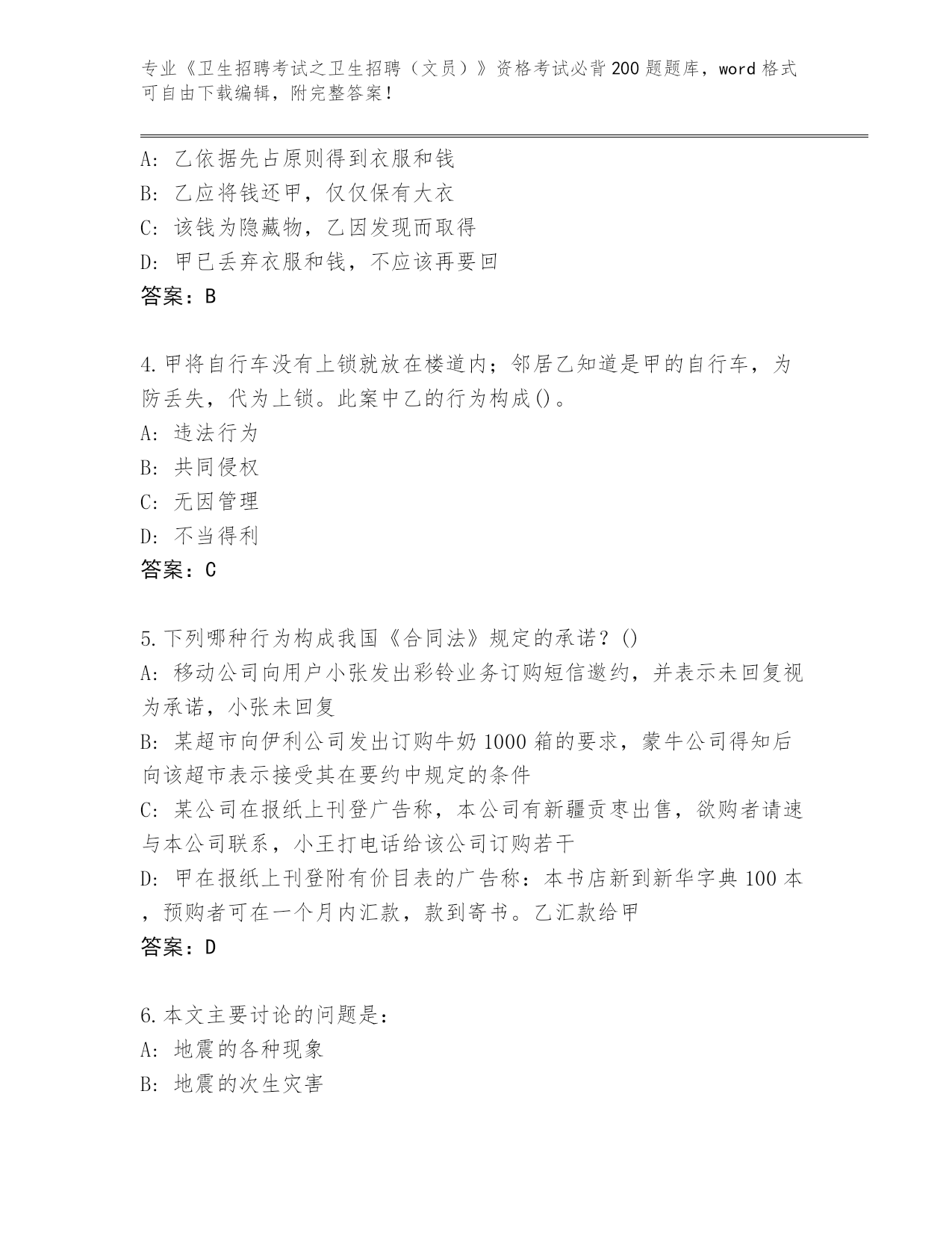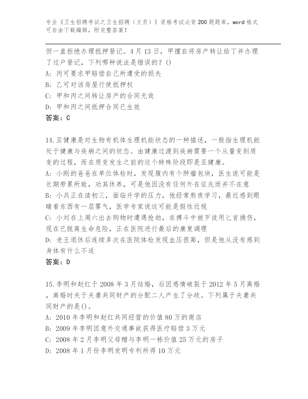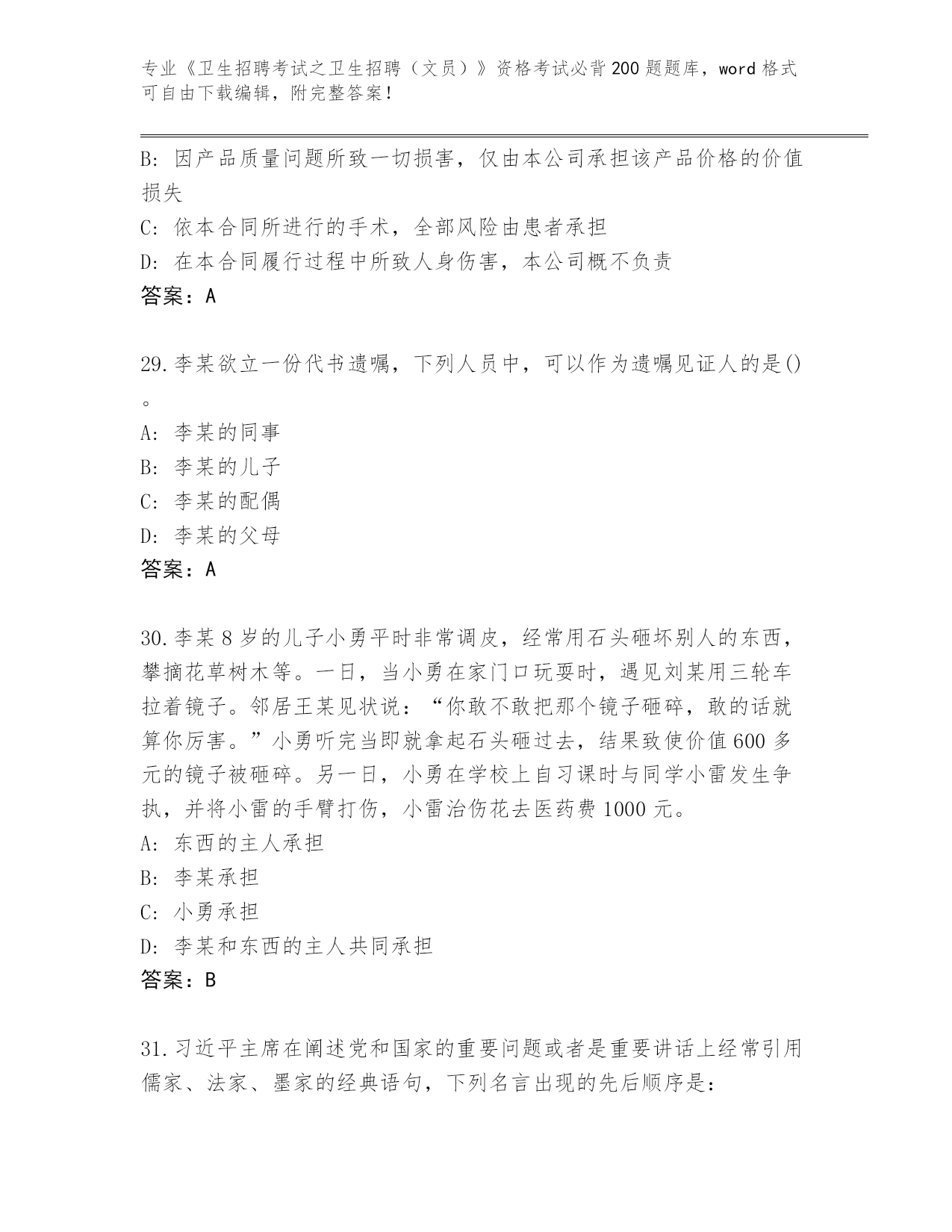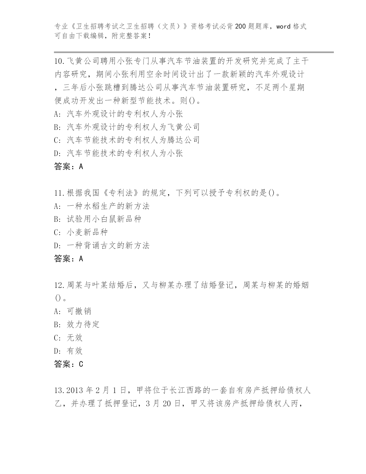 完整版湖北省《卫生招聘考试之卫生招聘(文员)》资格考试必背200题真题及答案(新)