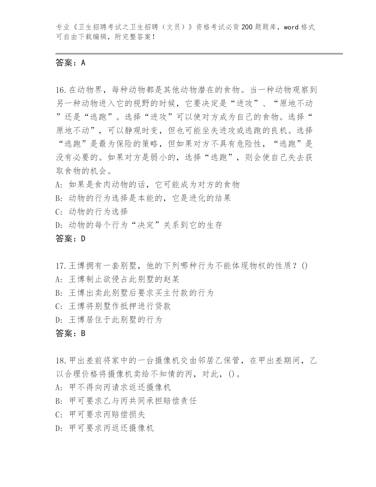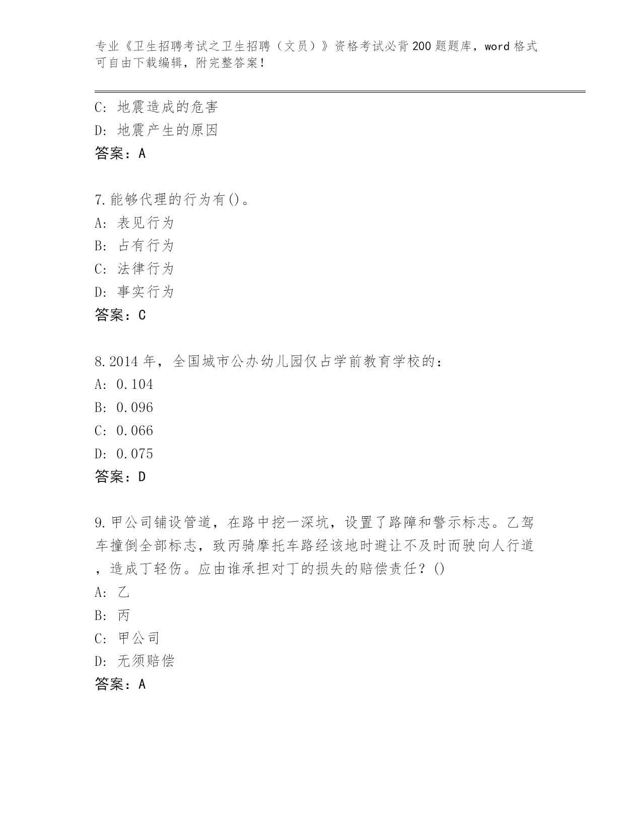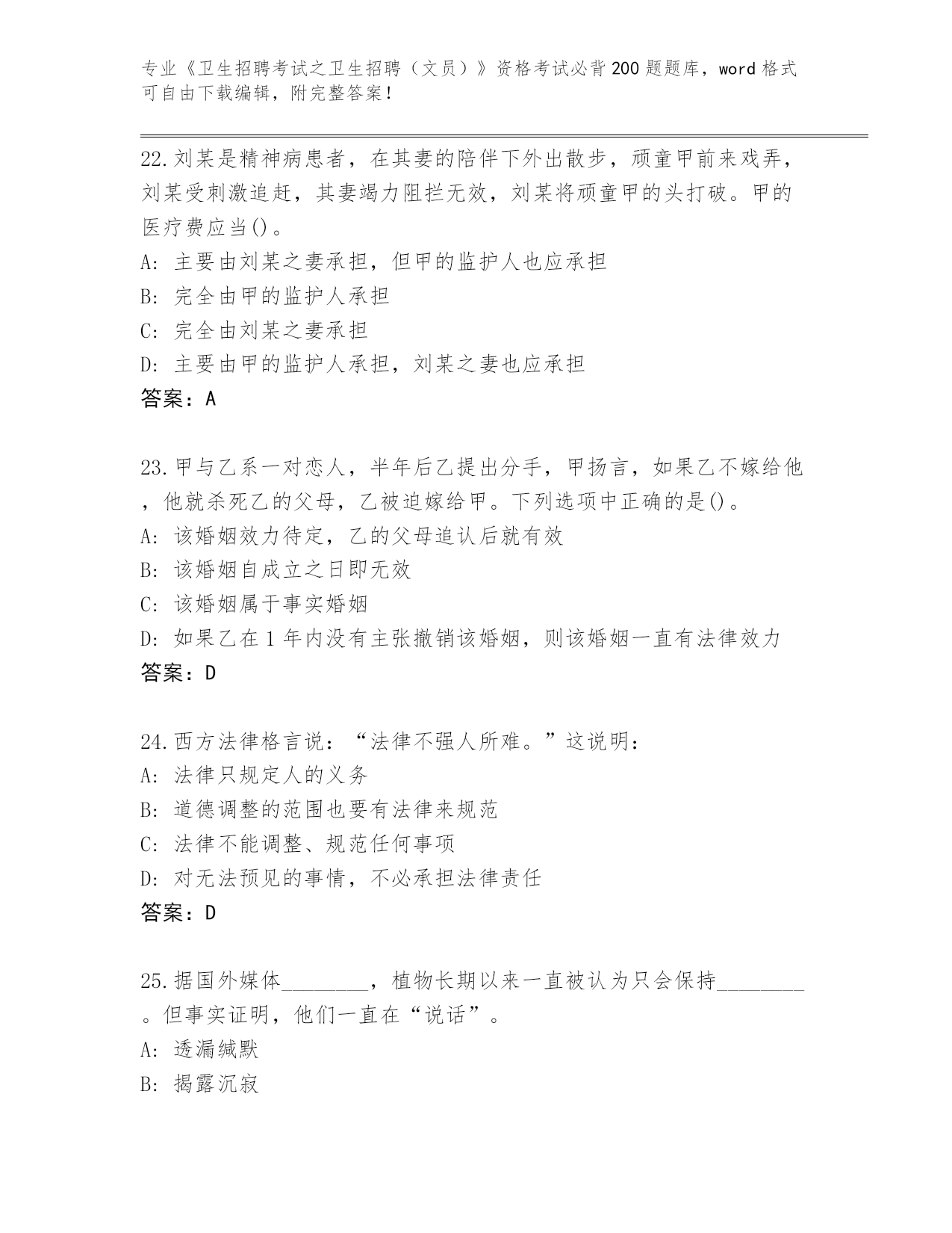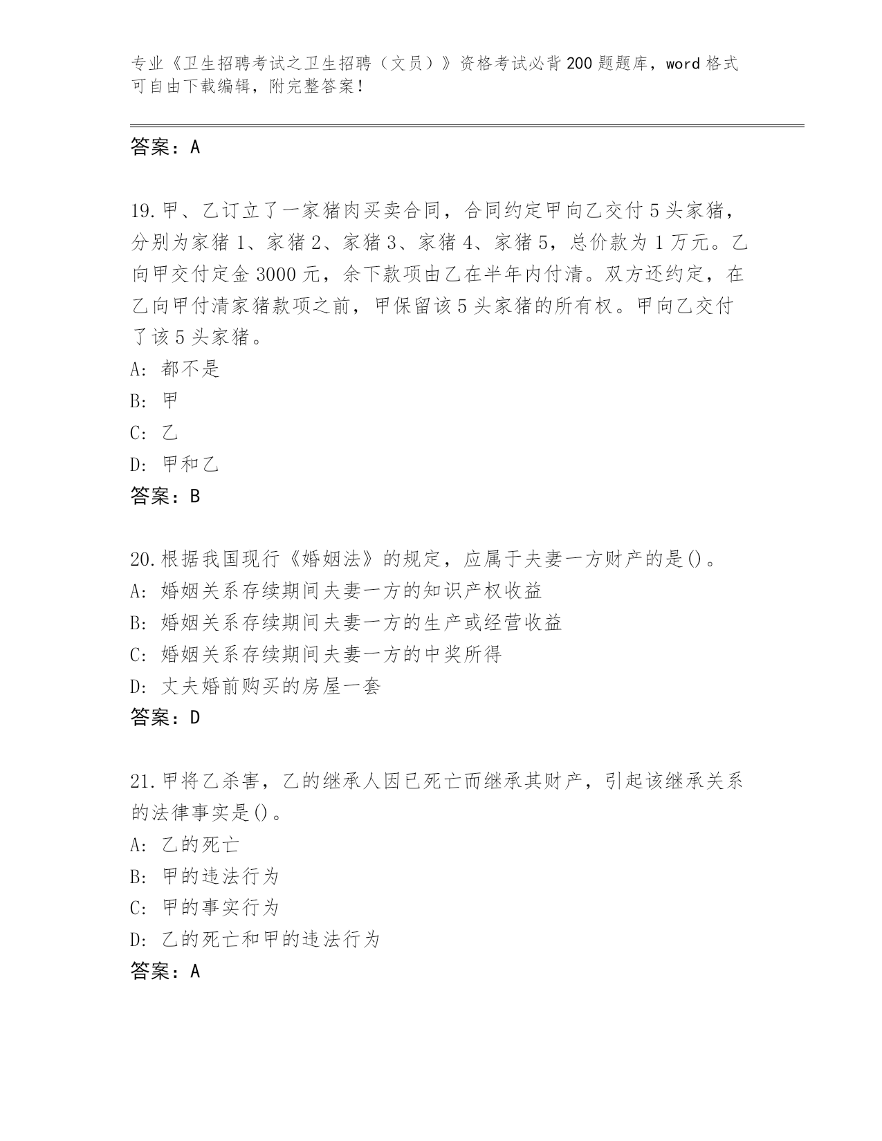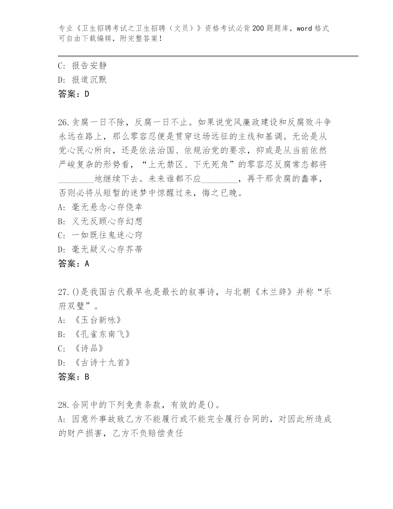 2024年湖北省巴东县《卫生招聘考试之卫生招聘(文员)》资格考试必背200题题库附答案【实用】
