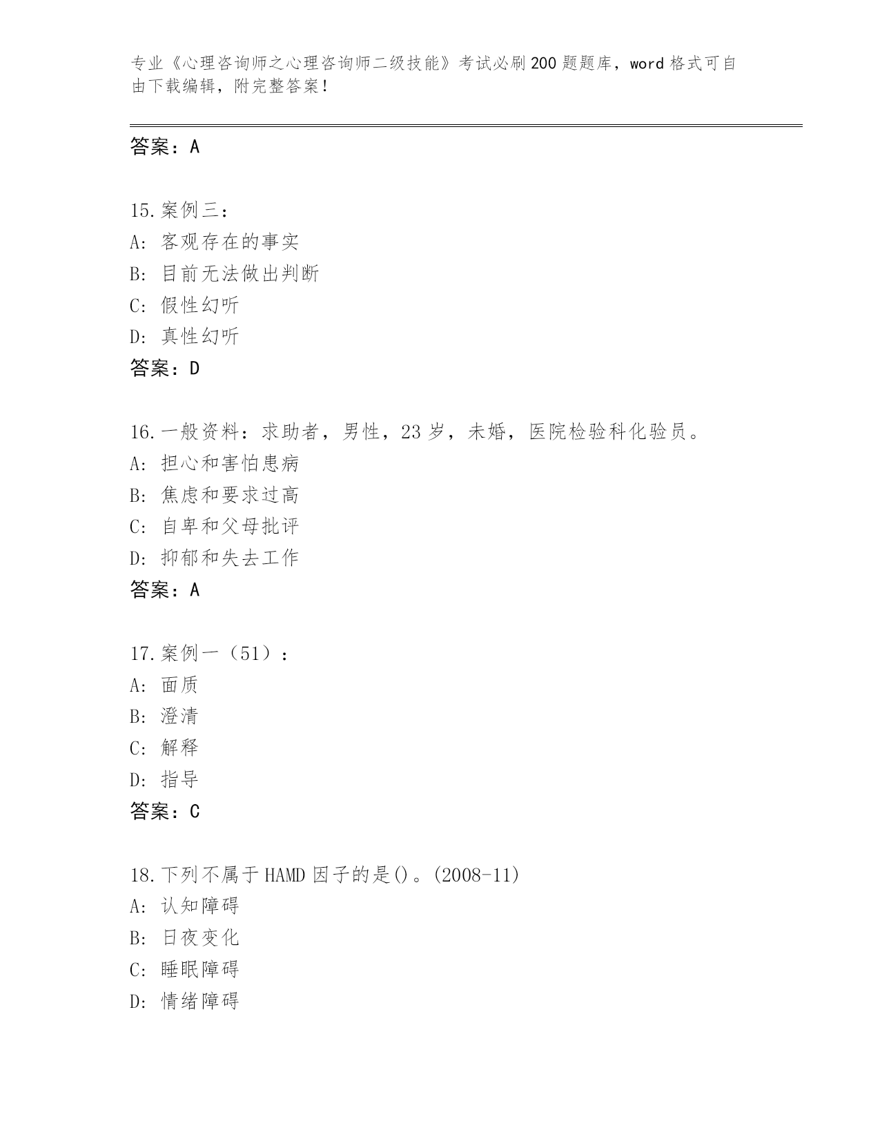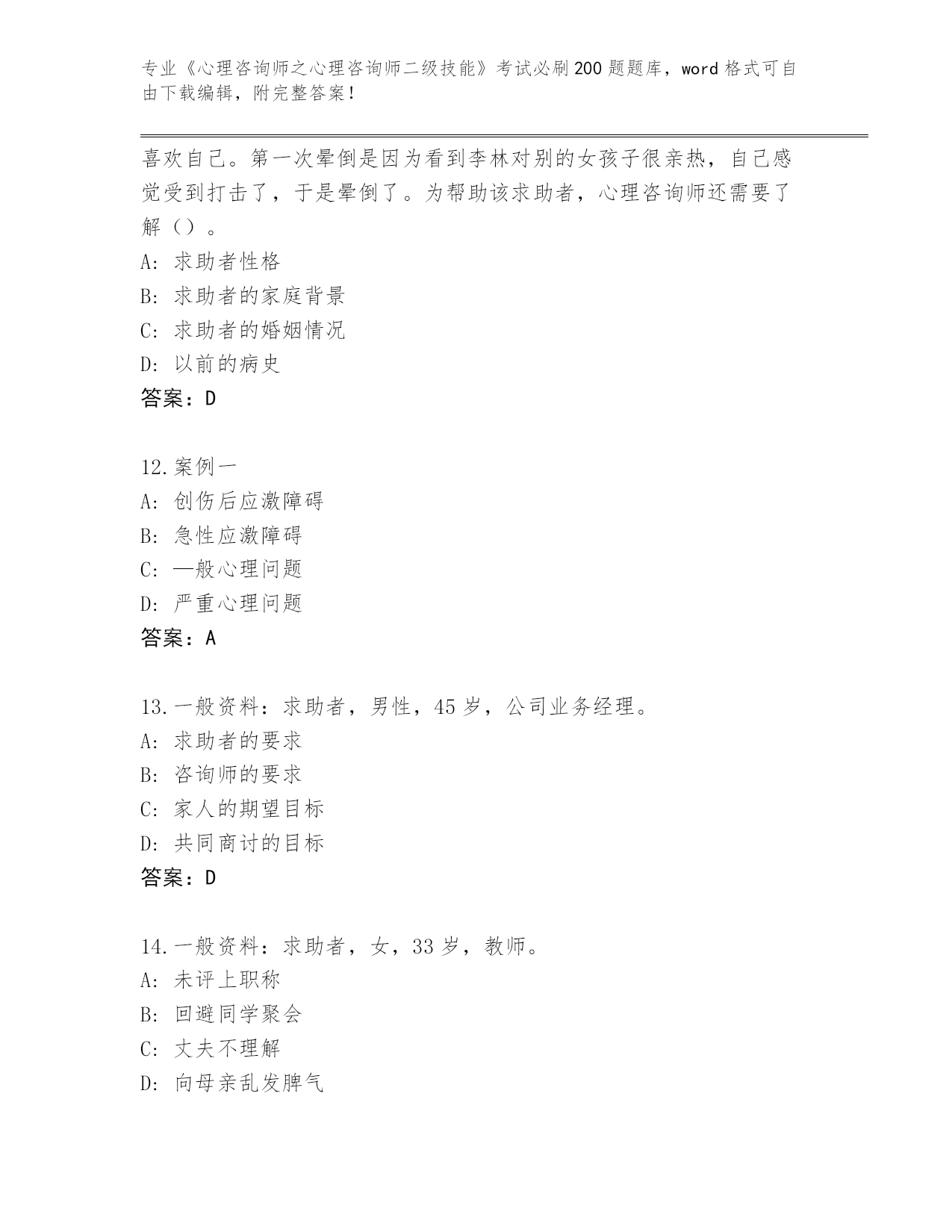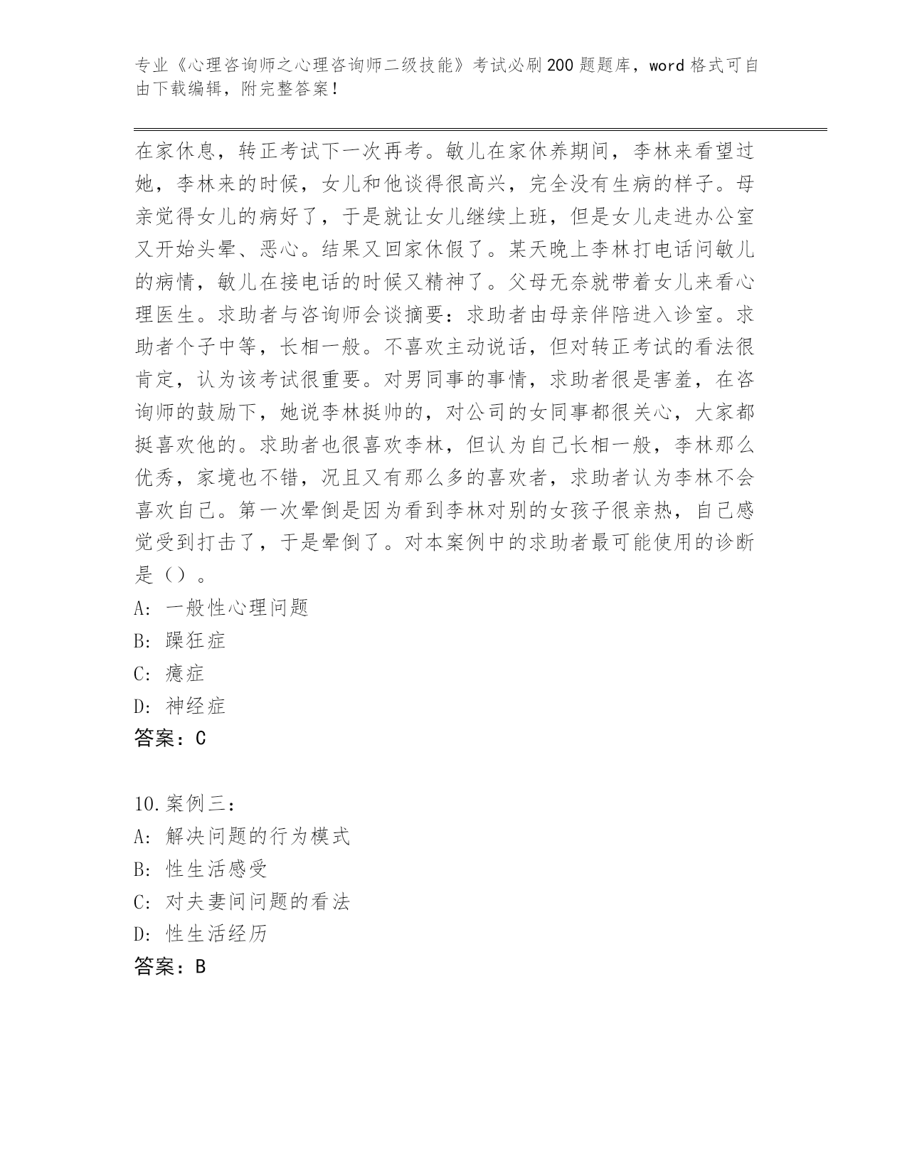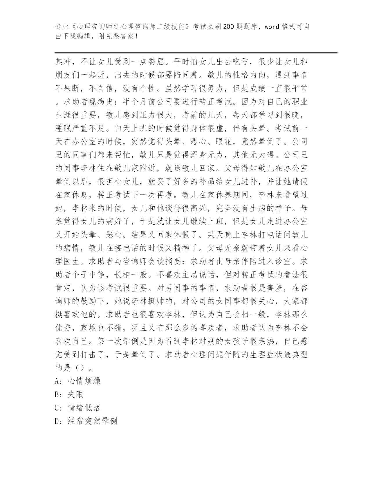 内部使用山西省《心理咨询师之心理咨询师二级技能》考试必刷200题(含答案)