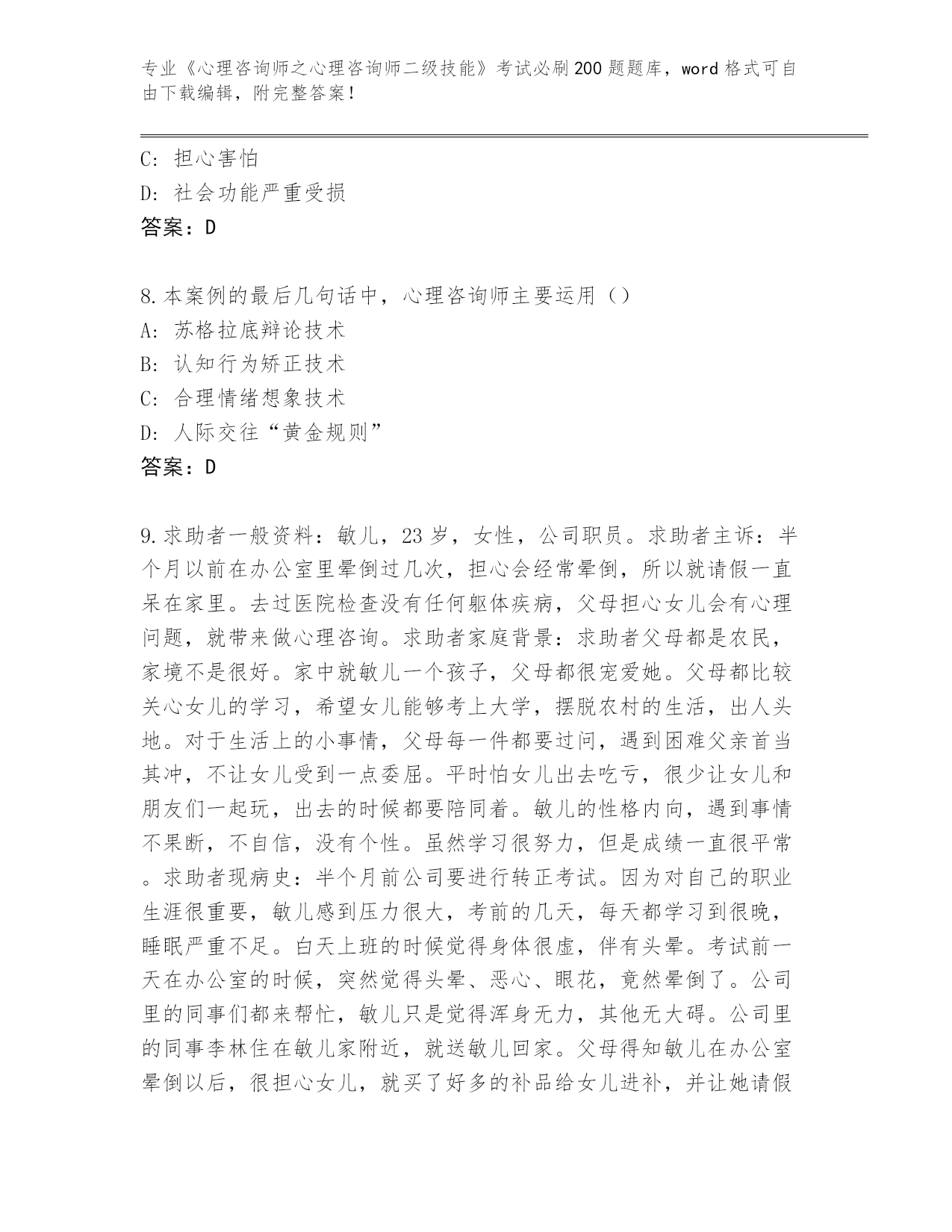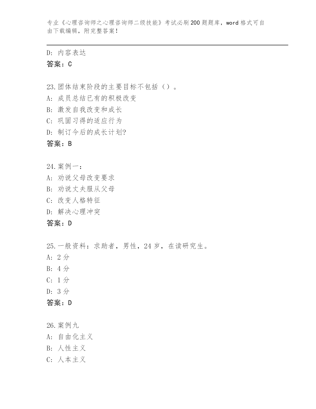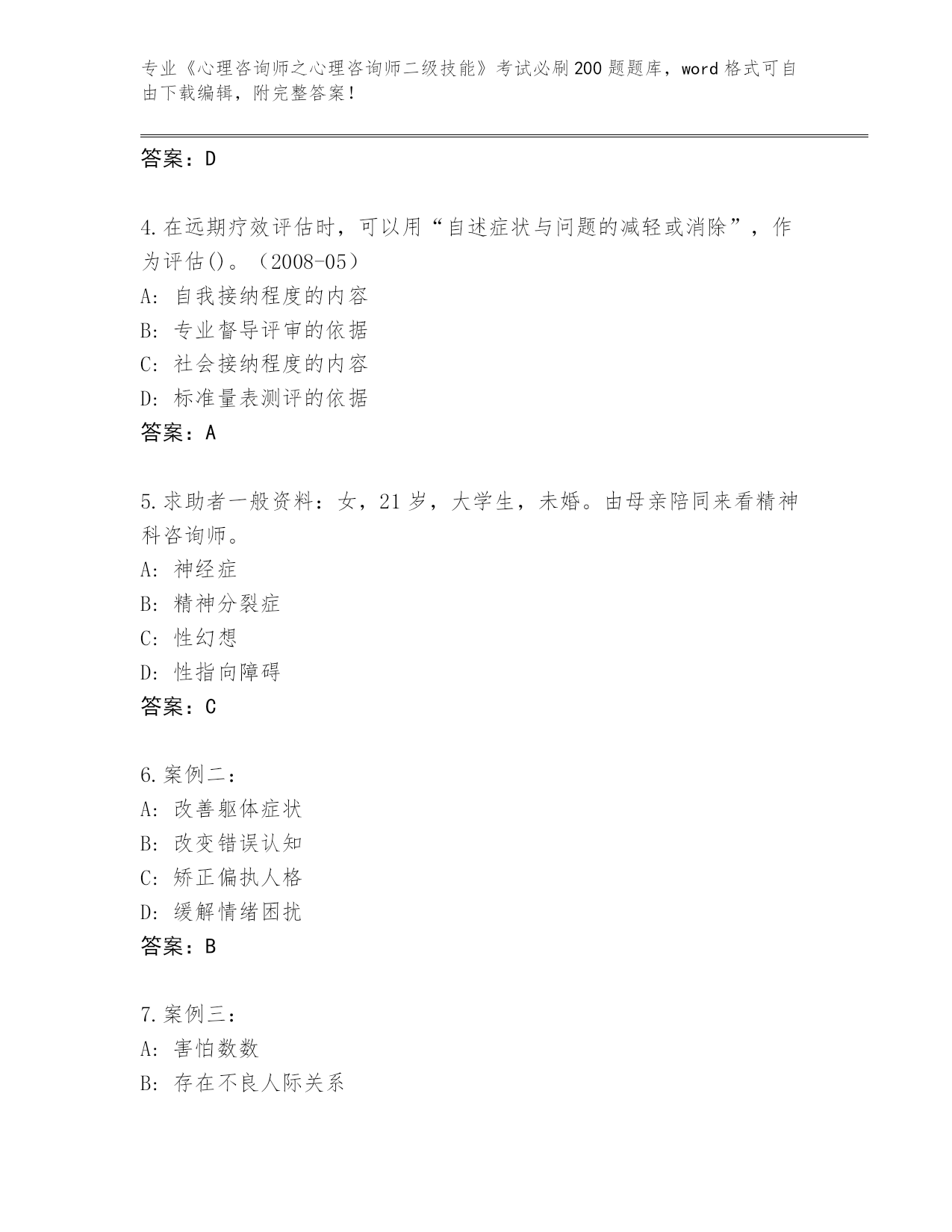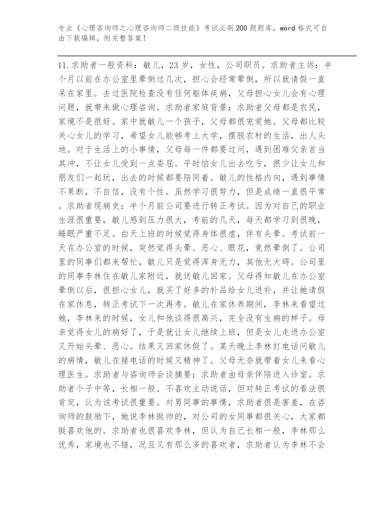 内部使用山西省《心理咨询师之心理咨询师二级技能》考试必刷200题(含答案)