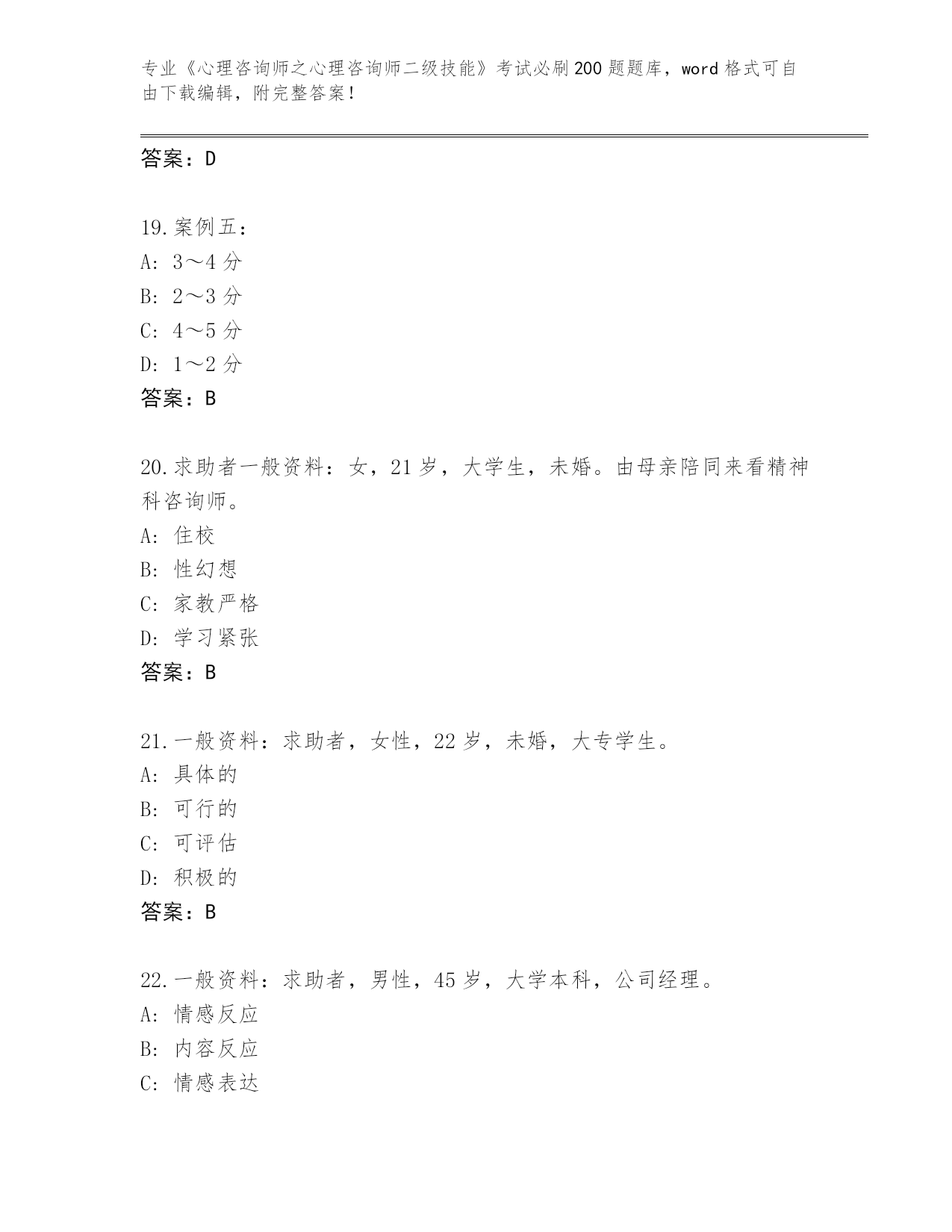 山西省宁武县《心理咨询师之心理咨询师二级技能》考试必刷200题题库大全附答案(轻巧夺冠)