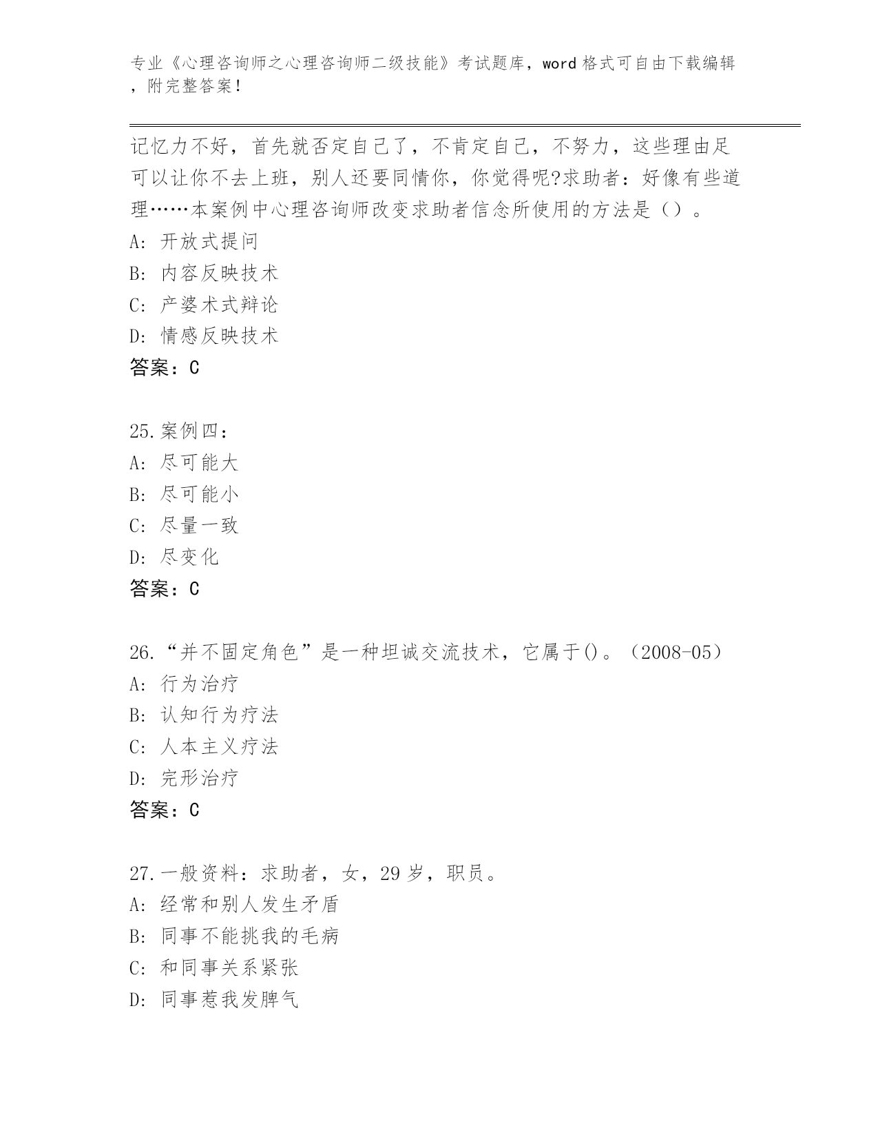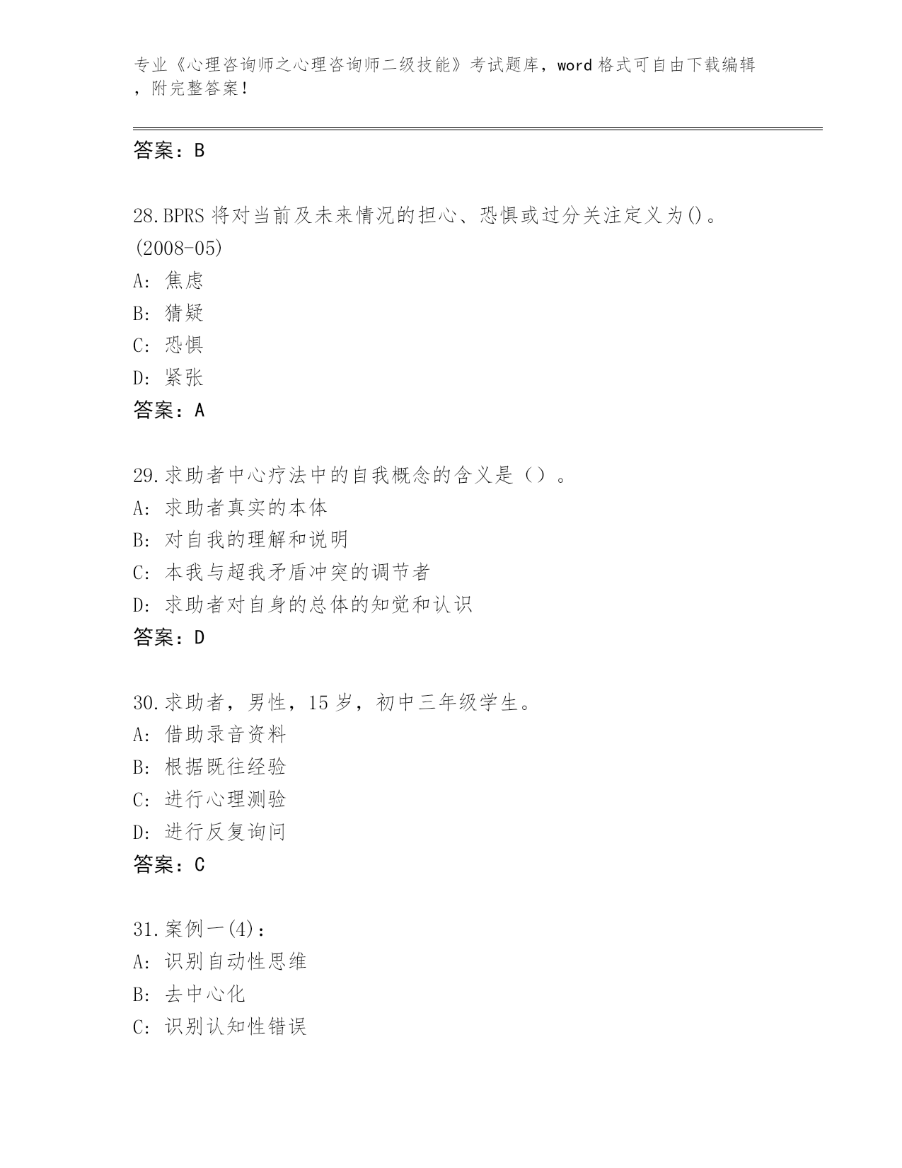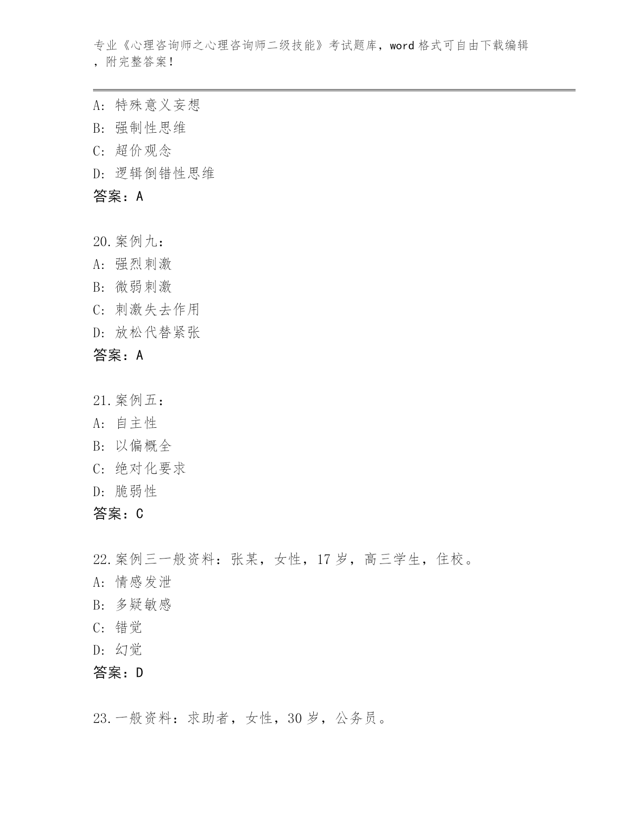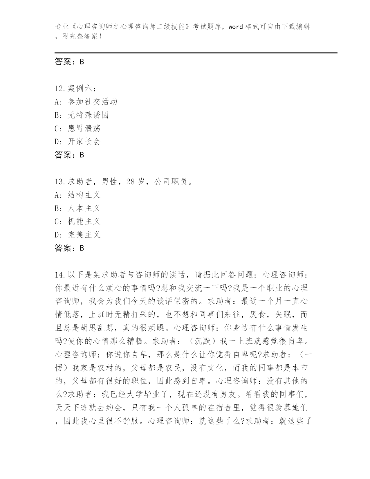 陕西省2024年《心理咨询师之心理咨询师二级技能》考试必考200题王牌题库及答案(名校卷)